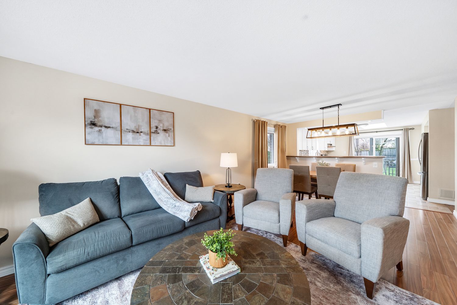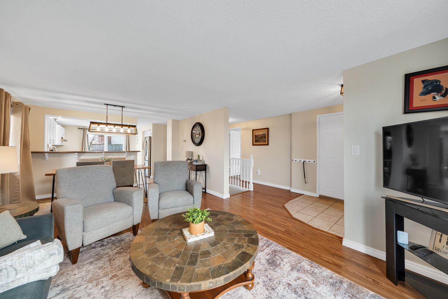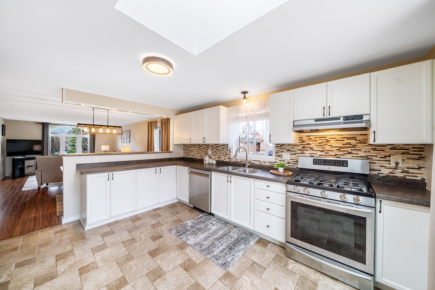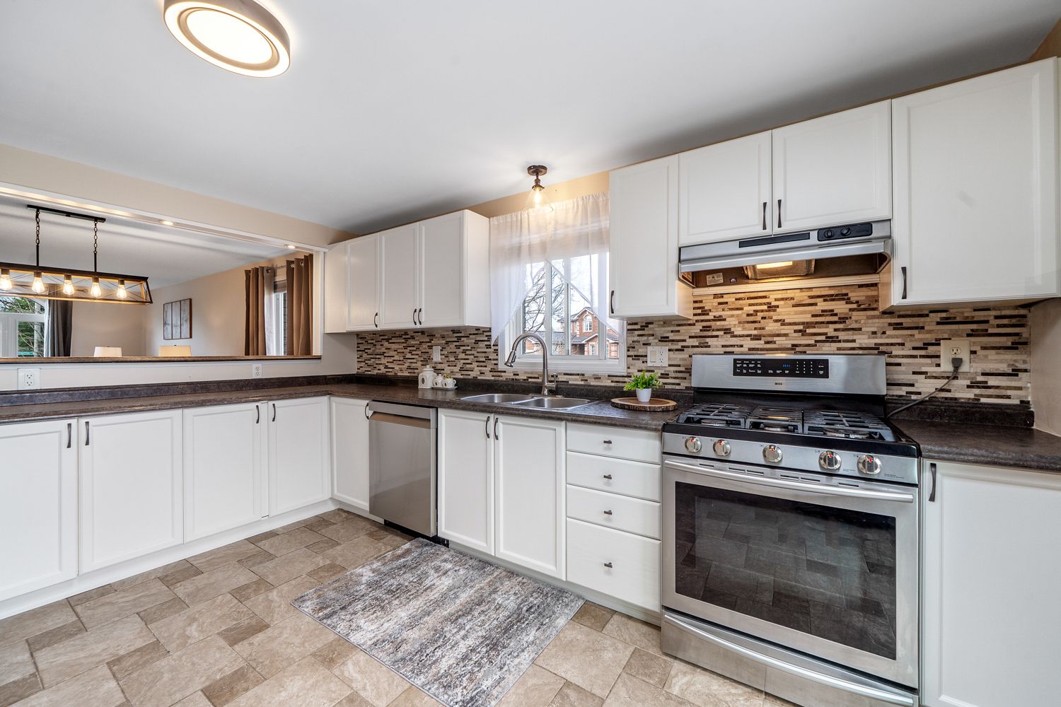 • Bright main floor features an updated kitchen and spacious living areas.