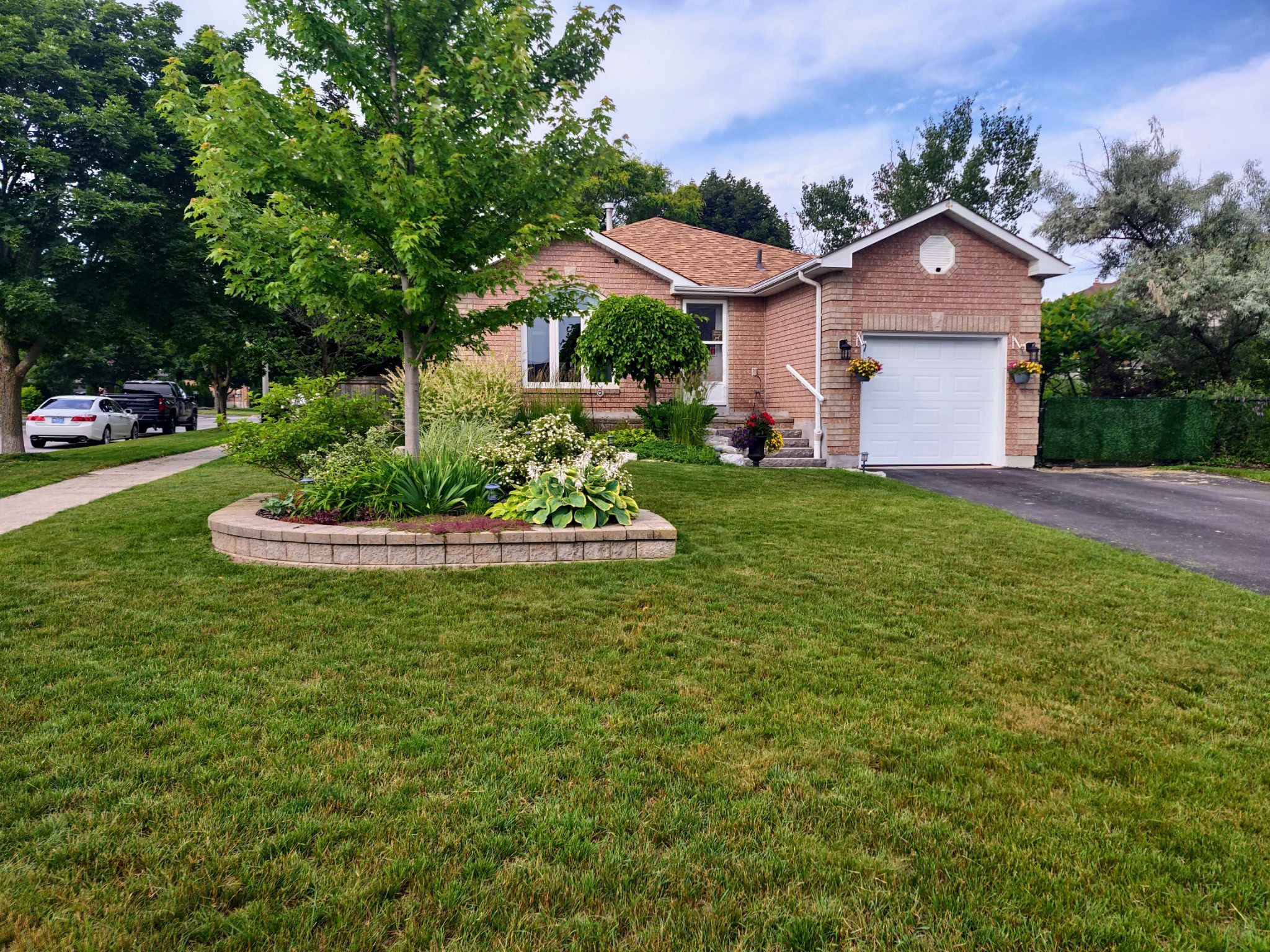 Beautifully maintained all-brick bungalow with standout curb appeal in barrie's desirable holly neighbourhood! Set on a premium corner lot with no sidewalk, this home features a manicured lawn, mature trees, and professionally landscaped gardens with stone accents, creating a welcoming first impression. The extended driveway offers parking for up to 4 vehicles and convenient side access to the backyard. Step inside to a bright and functional main floor layout featuring an updated kitchen with skylight and walkout to a large deck, perfect for entertaining. The open living and dining areas are filled with natural light, along with two well-sized bedrooms and a full semi-ensuite bathroom offering convenient access from the primary bedroom. The fully finished basement offers excellent additional living space with a cozy recreation room complete with gas fireplace, two additional bedrooms, a full bath, and flexibility for a home office or guest accommodations. The private backyard is a true highlight. Featuring a spacious deck, gazebo, gas bbq hookup, and a landscaped setting ideal for relaxing or entertaining. Plenty of green space, a shed, and side yard access add to the functionality. Updated and maintained throughout with newer appliances, a/c, garage door, patio door, bathroom vanity, lighting, and more. Ideally located close to parks, schools, shopping, and everyday amenities.