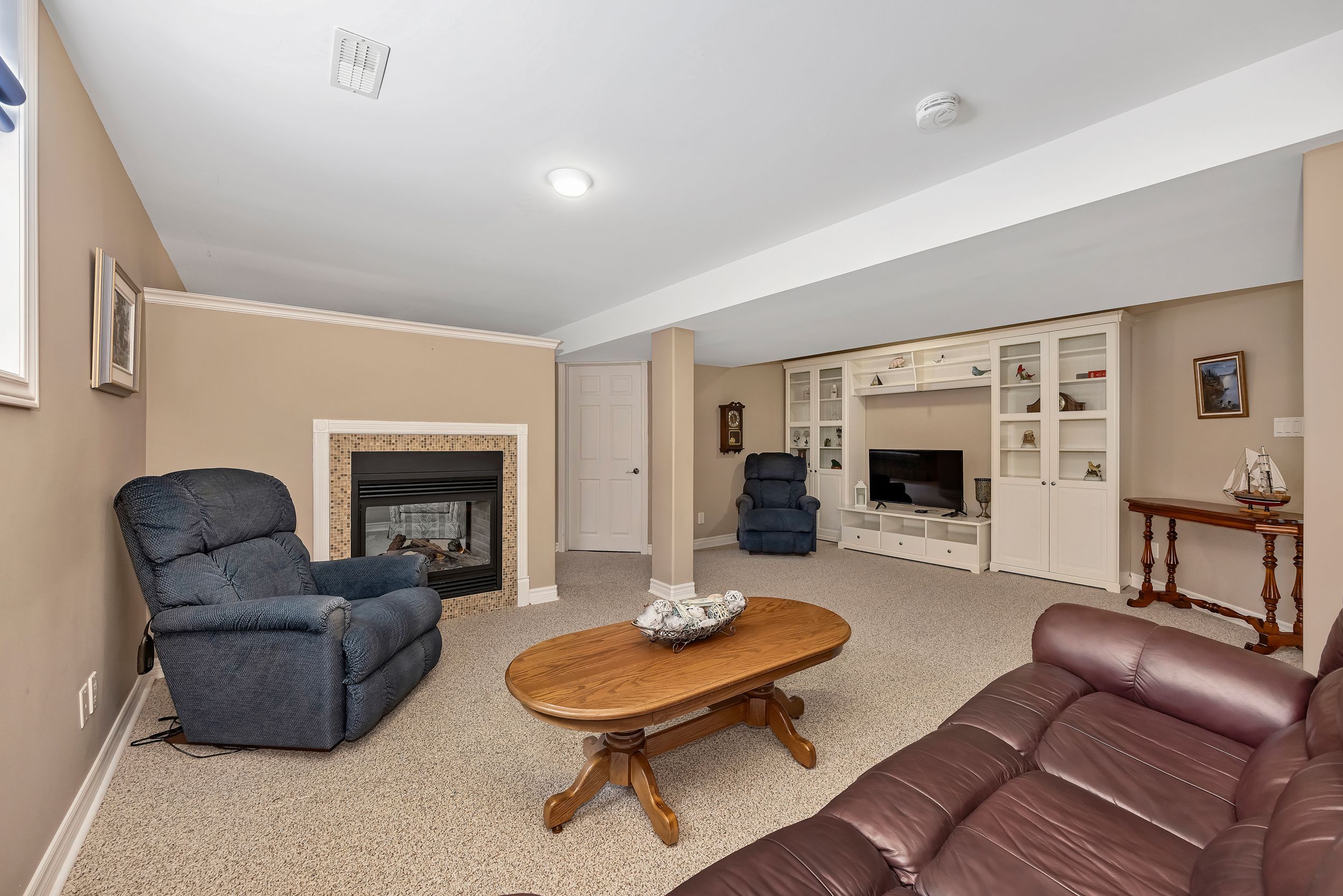 • Professionally finished lower level with family room and cozy gas fireplace.