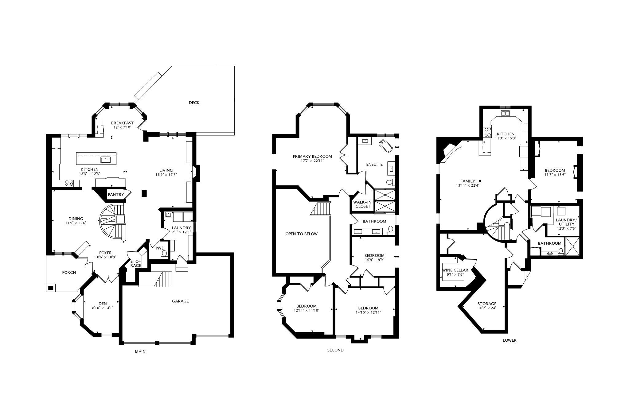 • Bright main floor with open layout, den, and custom chef's kitchen.
