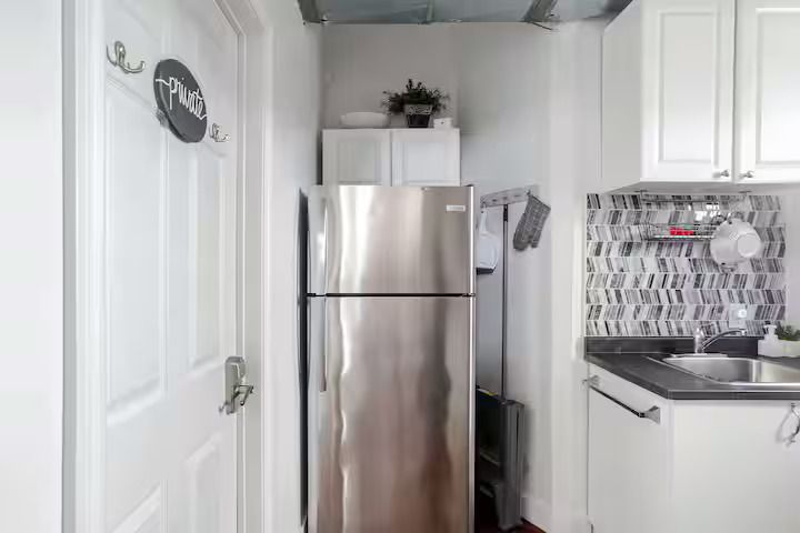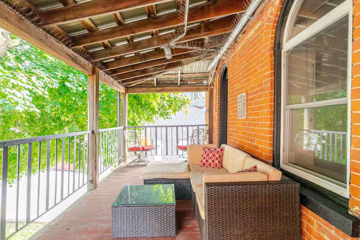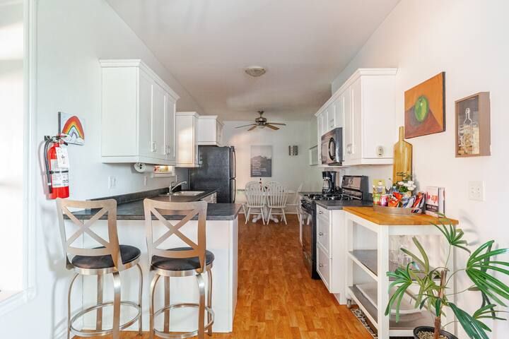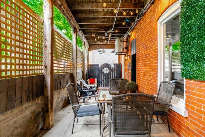 • Large parking lot accommodates 8 vehicles with shared city permit access.