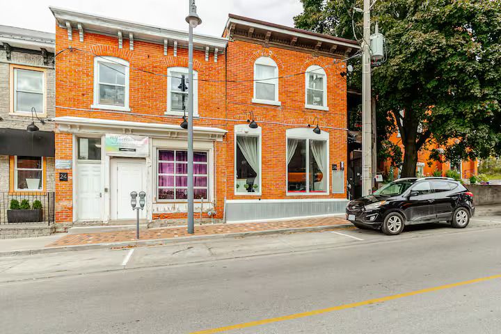 20-24 victoria property has 2 attached buildings on one deed. 20 victoria has a main floor salon with 2nd level boutique motel suite 22(short term rental property-wind rose destinations). 24 has a main floor retail office/storage/bathroom (lease back by seller). 24 2nd level storage, with utility room and laundry for the boutique motel plus staff bathroom. The first large parking lot can accommodate 8 vehicles with a right of way shared with the city's permit parking. The stone building has character and charm and has been well cared for. The seller will lease back the main floor salon in 20 and office in 24 for 5 years. 26-28-30 houses 3 of the nicest short-term/mid-term boutique suites in the city with a great rental history, totally furnished and operating business. 5 parking spaces. This is zoned by the city as a boutique "motel". 20 victoria includes:20-22-24 victoria with parking for 8 vehicles and outdoor shed. 26 victoria includes-26-28-30 with parking for 5 vehicles. 20-24 victoria-pt lt 32 w/s pinnacle st pl gov belleville thurlow; pt hotel lt in front of lt 32 pl gov belleville thurlow as in qr209428; t/w qr209428;belleville; county of hastings 43. 50'x127. 45'28-30 victoria: pt lt 32 w/s pinnacle st pl gov belleville thurlow; pt hotel lt in front of lt 32 pl gov belleville thurlow as in qr616535; t/w qr616535; belleville; county of hastings 26. 00'x127. 50'.