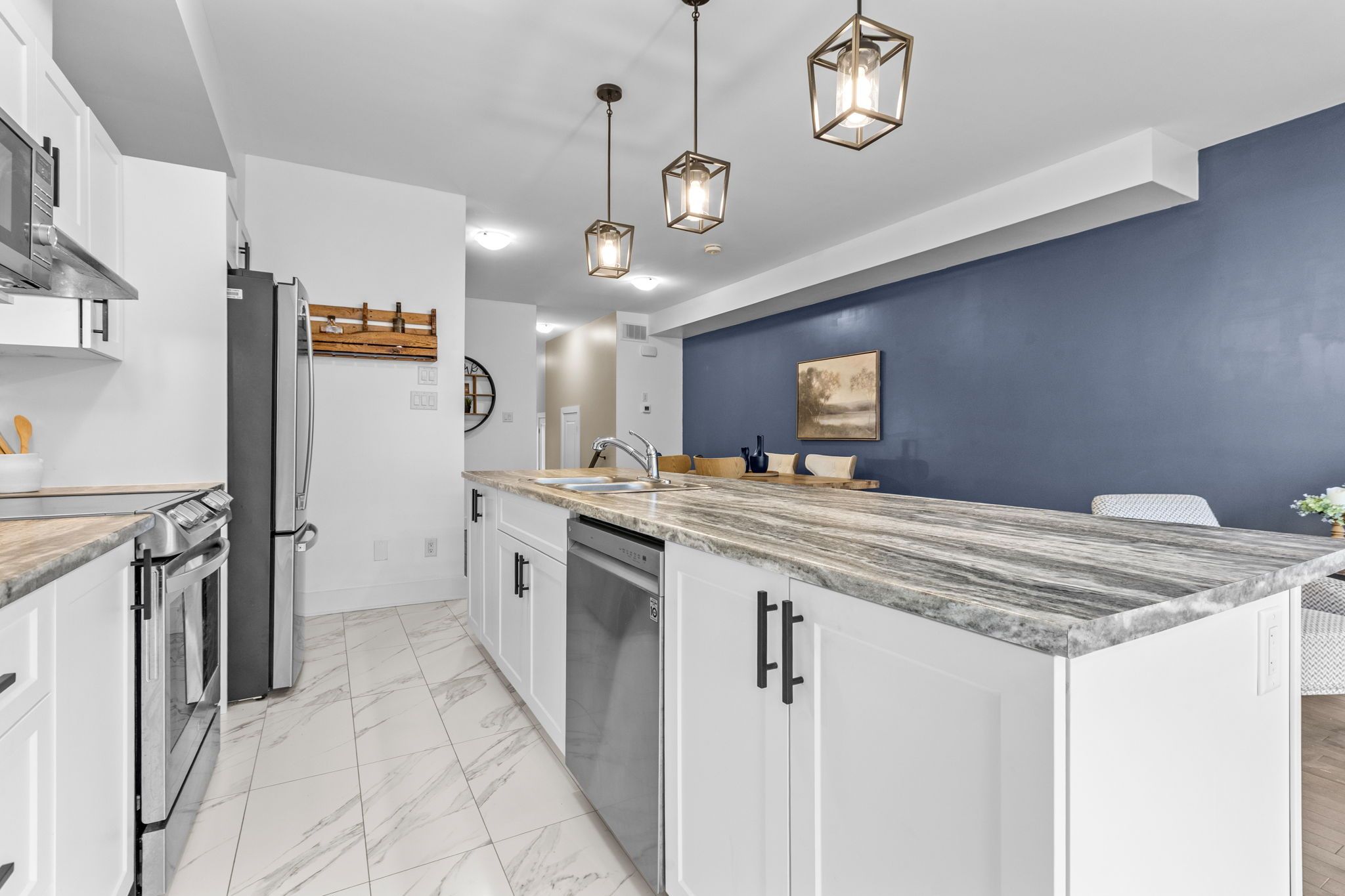 • Oversized kitchen island perfect for gatherings and daily routines.
