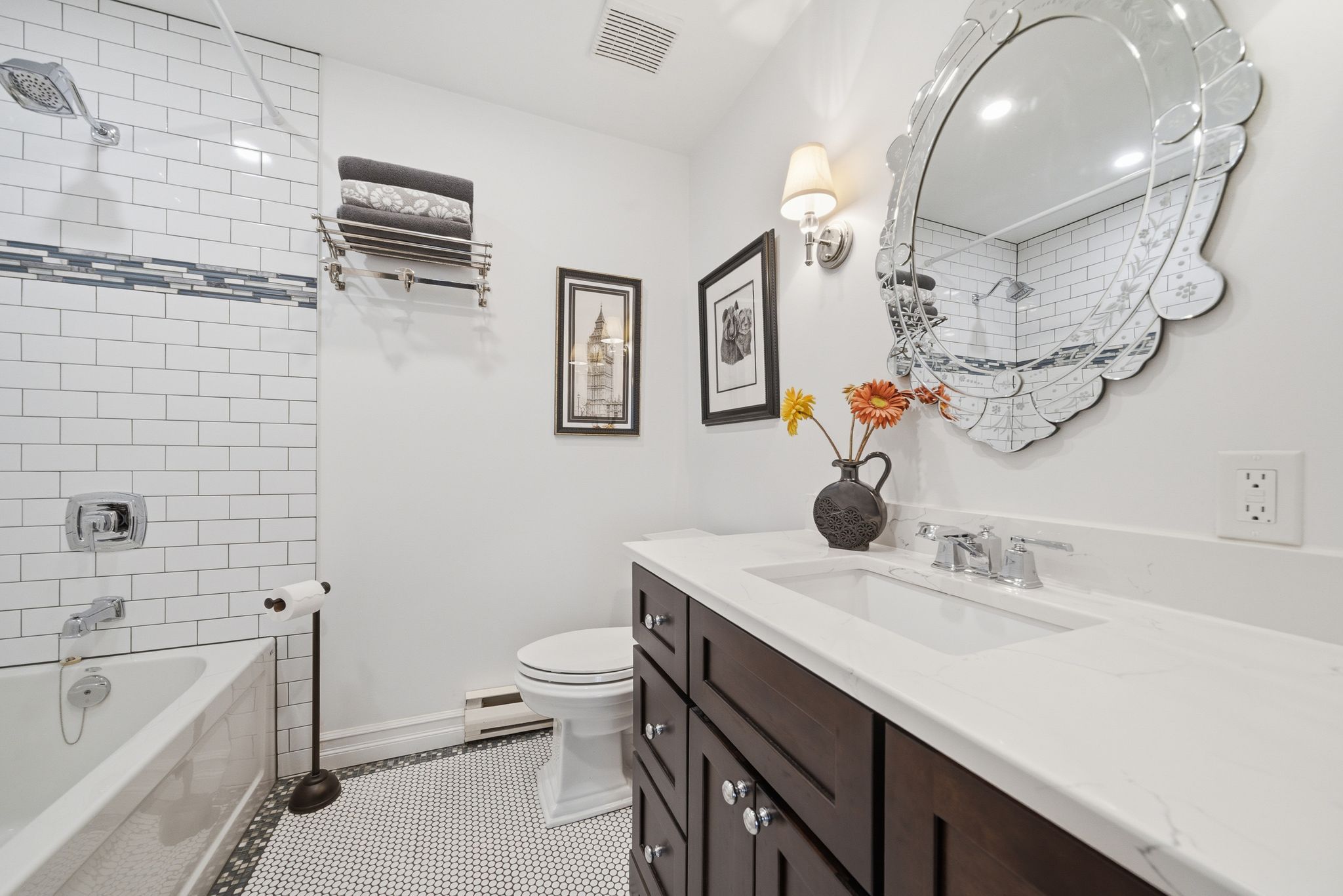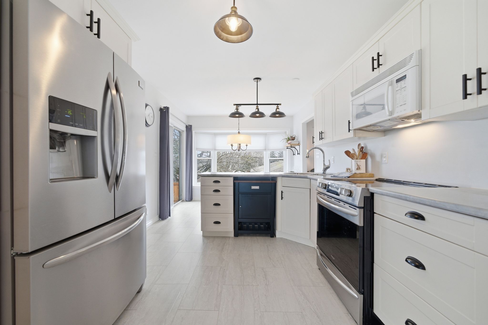 • Bright main floor with a renovated eat-in kitchen and bay window.