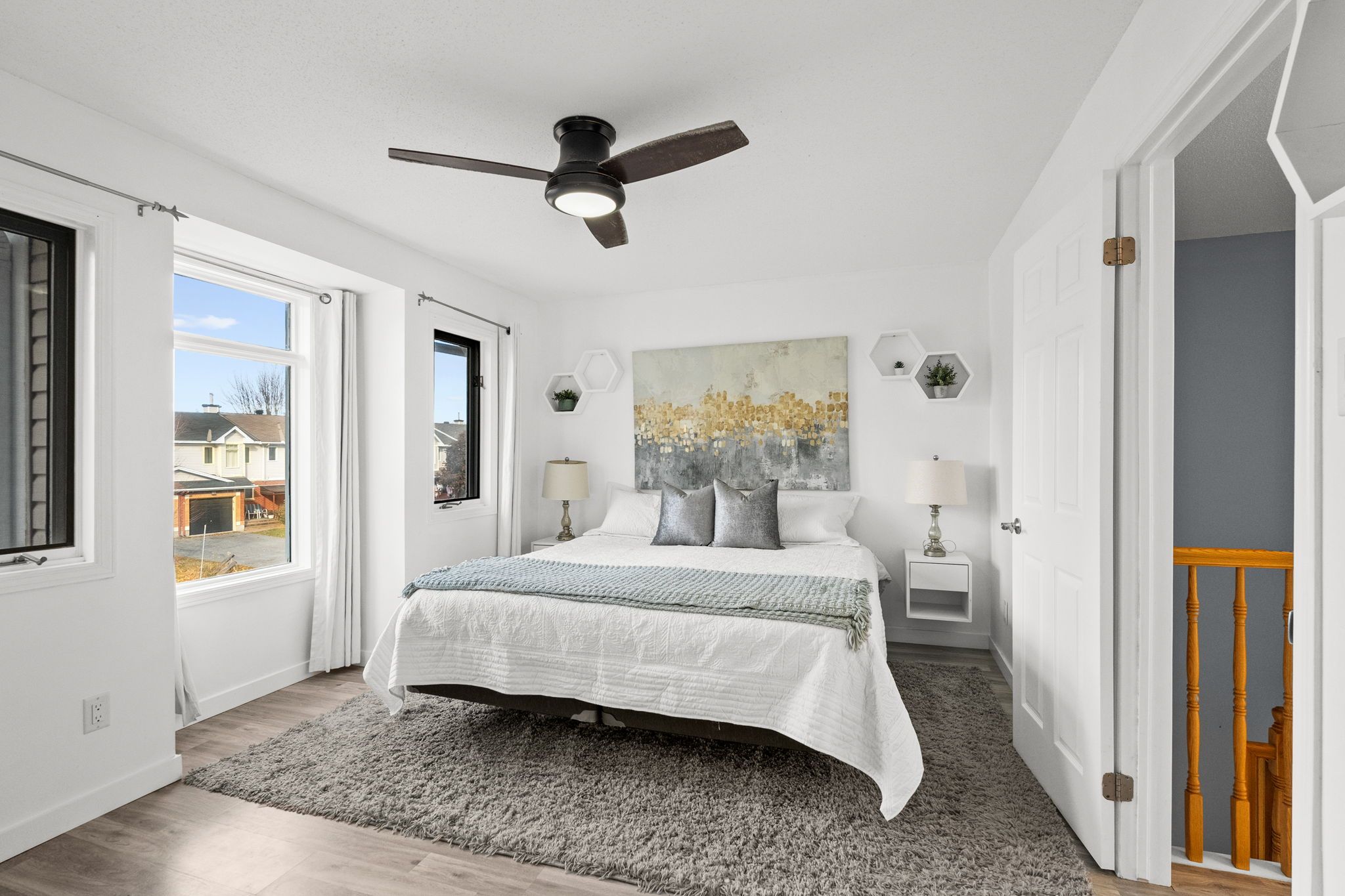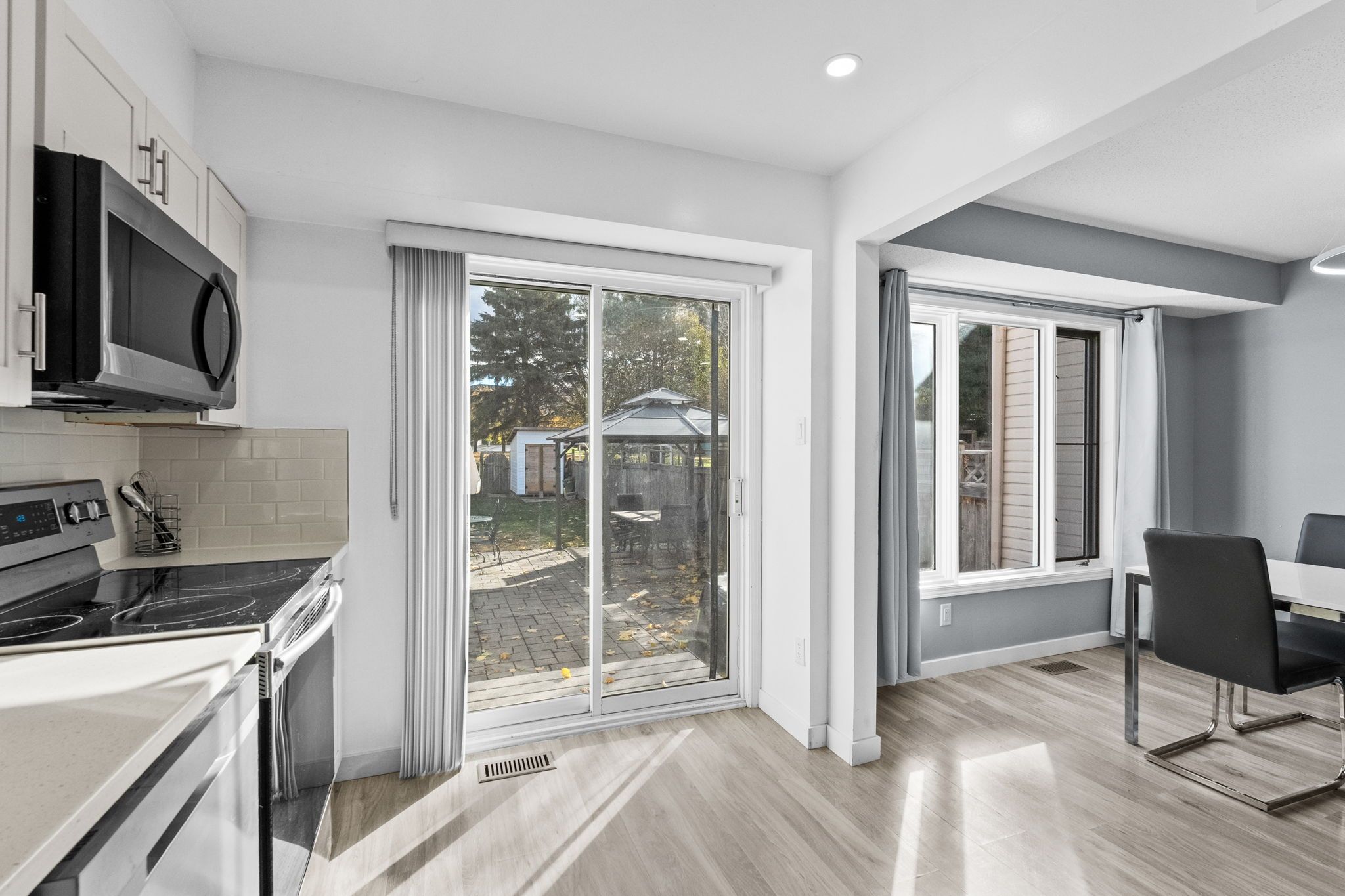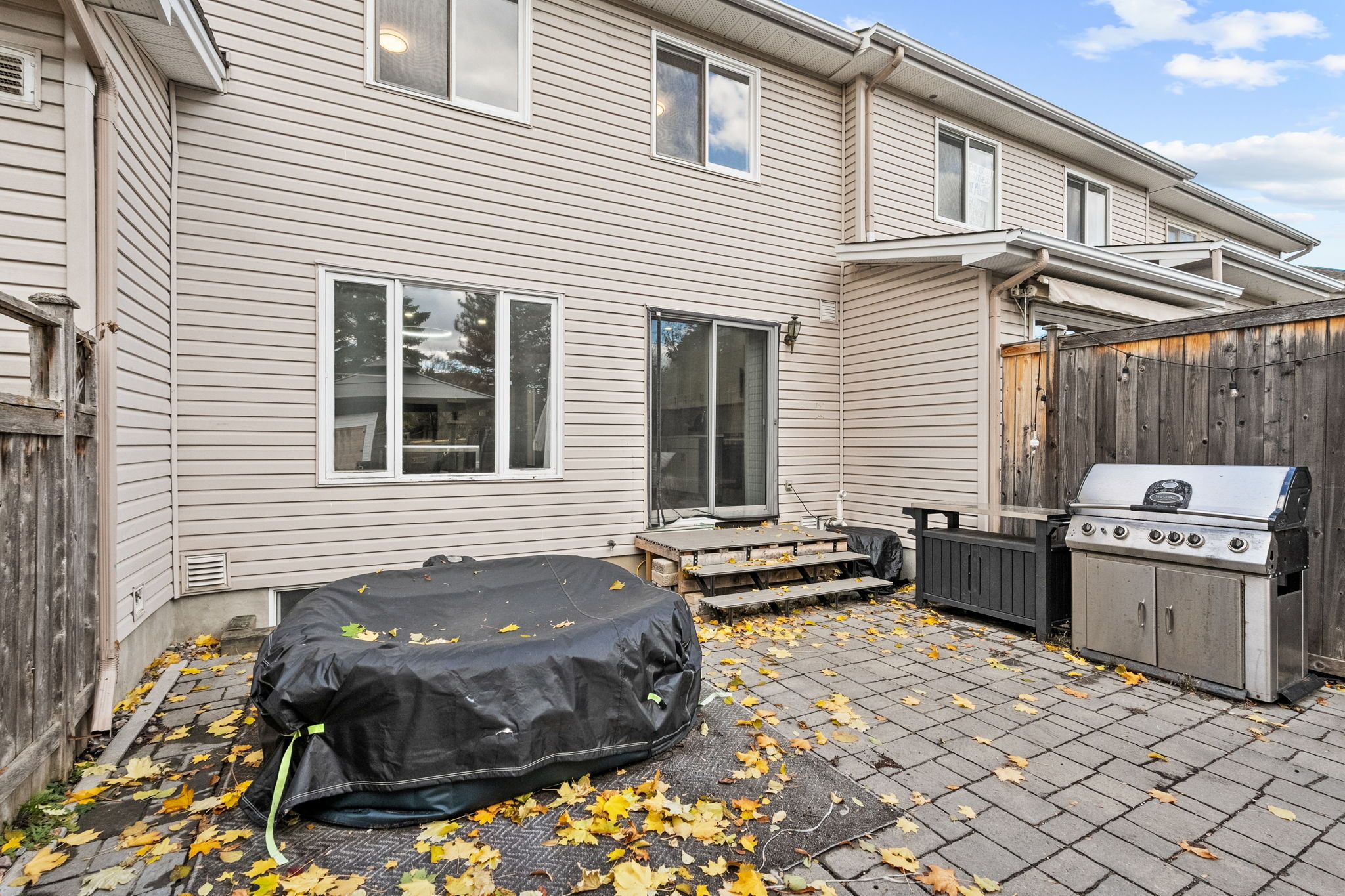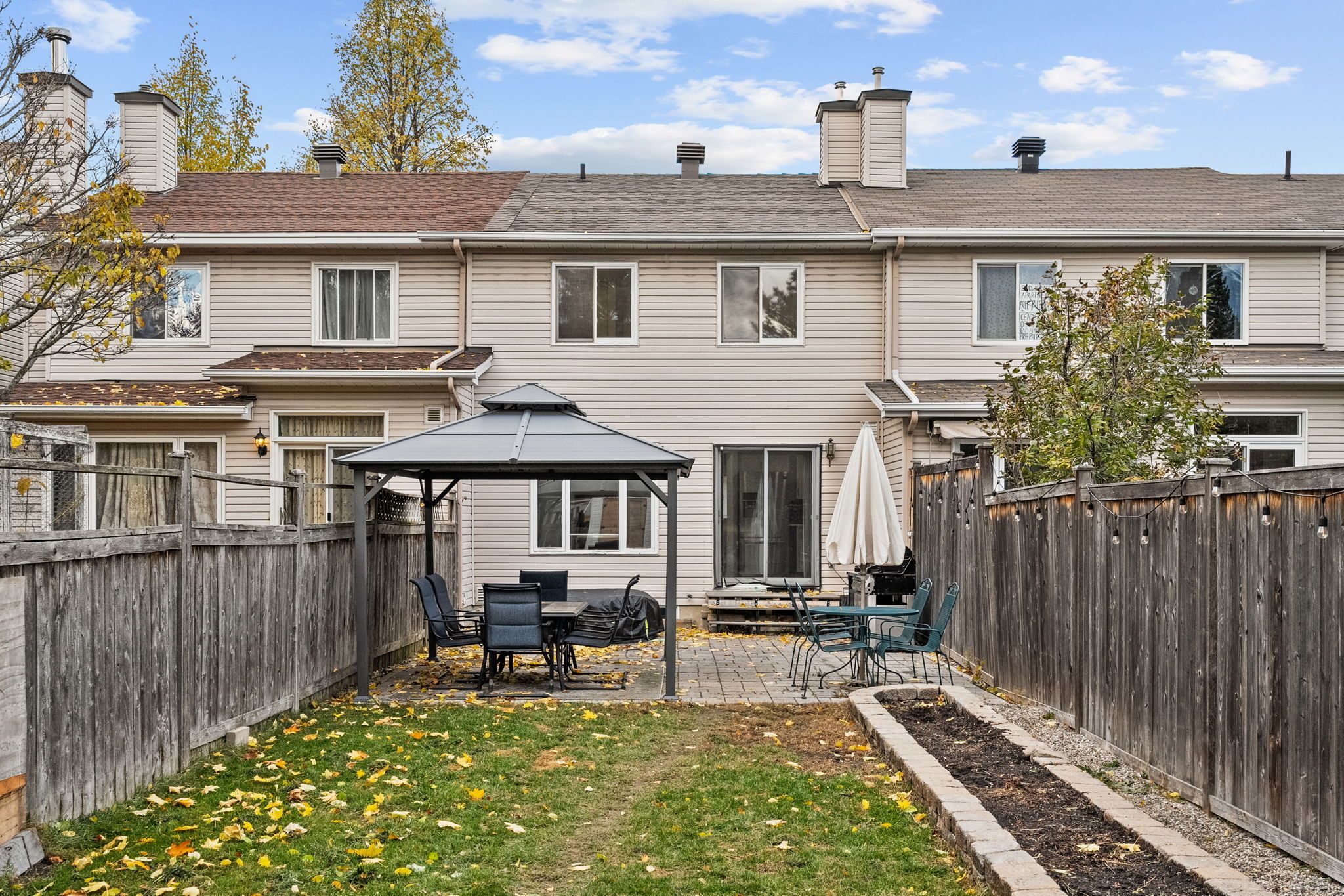 Updated three bedroom townhome backing on mckinley park in kanata north, close to the kanata technology research park, and walking distance to shopping, restaurants! Updated kitchen with stainless steel appliances. Updated powder room and 4-piece bathroom, carpet free. Fully fenced yard. Just move in! Open concept living/dining room with large picture window to gorgeous extra deep, fully fenced rear yard with large patio, gazebo and storage shed. Head upstairs to three bedrooms with an updated four piece bathroom. Primary bedroom with walk-in closet and nook. Finished basement features vinyl flooring and secondary storage room. Central vac is roughed in. Furnace and tankless hot water (2020), rear patio (2023), kitchen reno (2020)