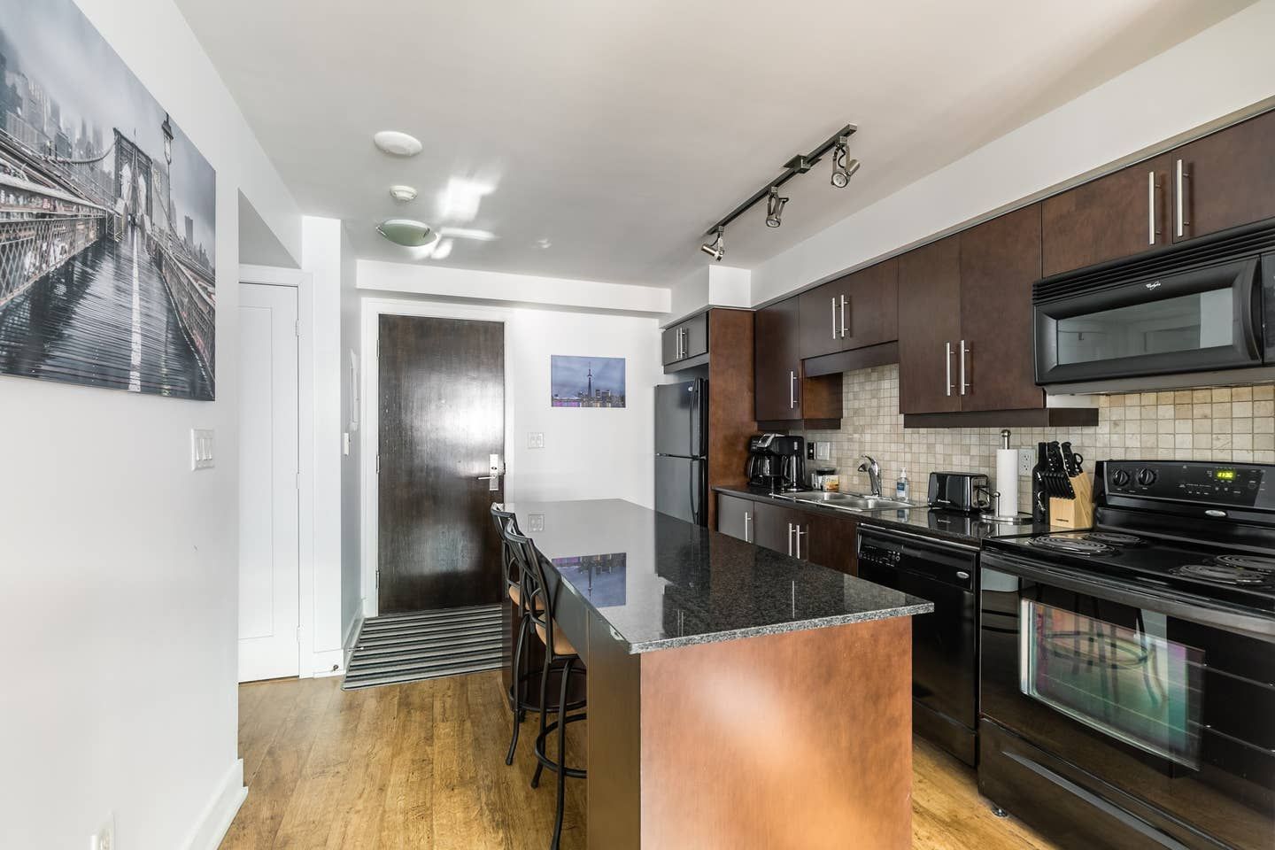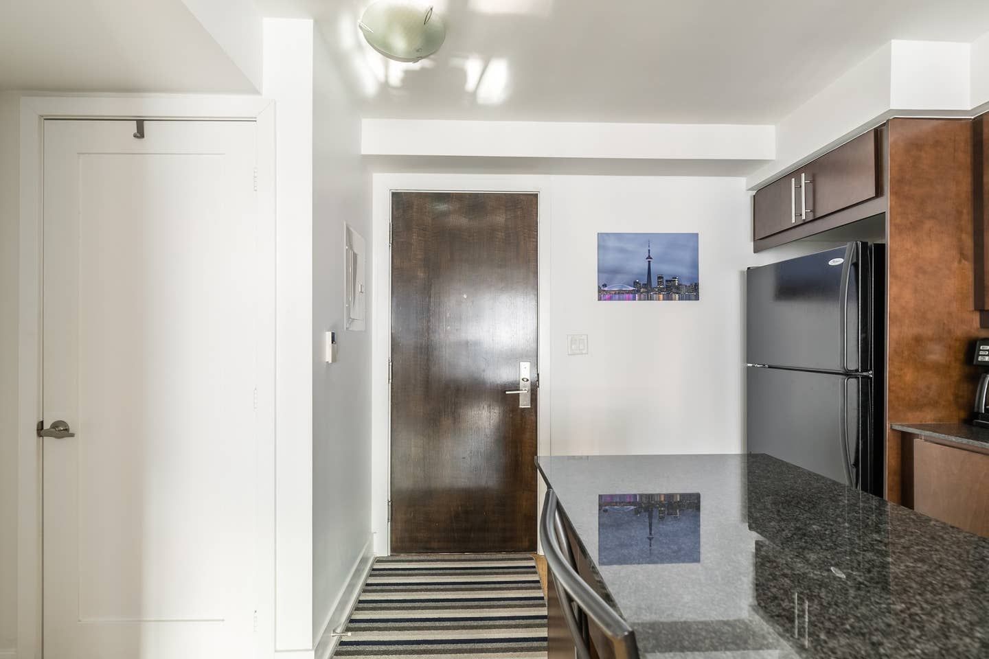 Furnished luxury suite * 620 sq ft living space w/balcony cn tower view > (3 to 12 months short term) executive rental * corporate contract staff professionals, athletes > situated in toronto's entertainment district this beautiful spacious 1 bedroom east exposure - enjoy the sunshine and gorgeous cn tower kaleidoscope of colours > beautiful spacious popular design and no wasted space * open concept chefs delight kitchen, large granite breakfast bar with lots of counter space > fully equipped with everything you require > small & large appliances, kitchenware, dish sets, pots, pans, cutlery, glasses etc. * large living room and dining room allows the added work space with a dining table and 4 chairs set in front of the window to admire the cn tower * comfortable luxury sleeps on a quality queen bed in the primary bedroom * mirror closet doors * incredible location 3-4 minute walk cn tower, rogers centre, sobeys grocery, 24 hour rabba foods is across the street * the building main level features tim hortons pizza pizza * wonderful rooftop overlooks cn tower and rogers centre. The 22nd floor terrace w/gym, hosts a gym\ exercise room, quality equipment, aqua spa indoor pool, sauna, two 22nd floor terraces, bbq's, sun loungers * party room, billiard room and wrap around deck * the element has an exit/entrance to front street next to tim hortons > 3 minute walk to metro hall, metro convention centre and metro hall entrance for the p. A. T. H. Shopping, subway, quick walk to union station, transit lines and go train ** amazing p. A. T. H is underground city to the eaton's centre shopping hall at dundas square. The element condo is in the best toronto location showcasing major attractions within walking distance. * extras * fridge, stove, b/i microwave, b/i dishwasher, stacked washer/dryer ** aqua pool, whirlpool, party room theatre, billiards, barbecues, 24-hr concierge/security * the element building has parcel and food delivery approved and visitor parking