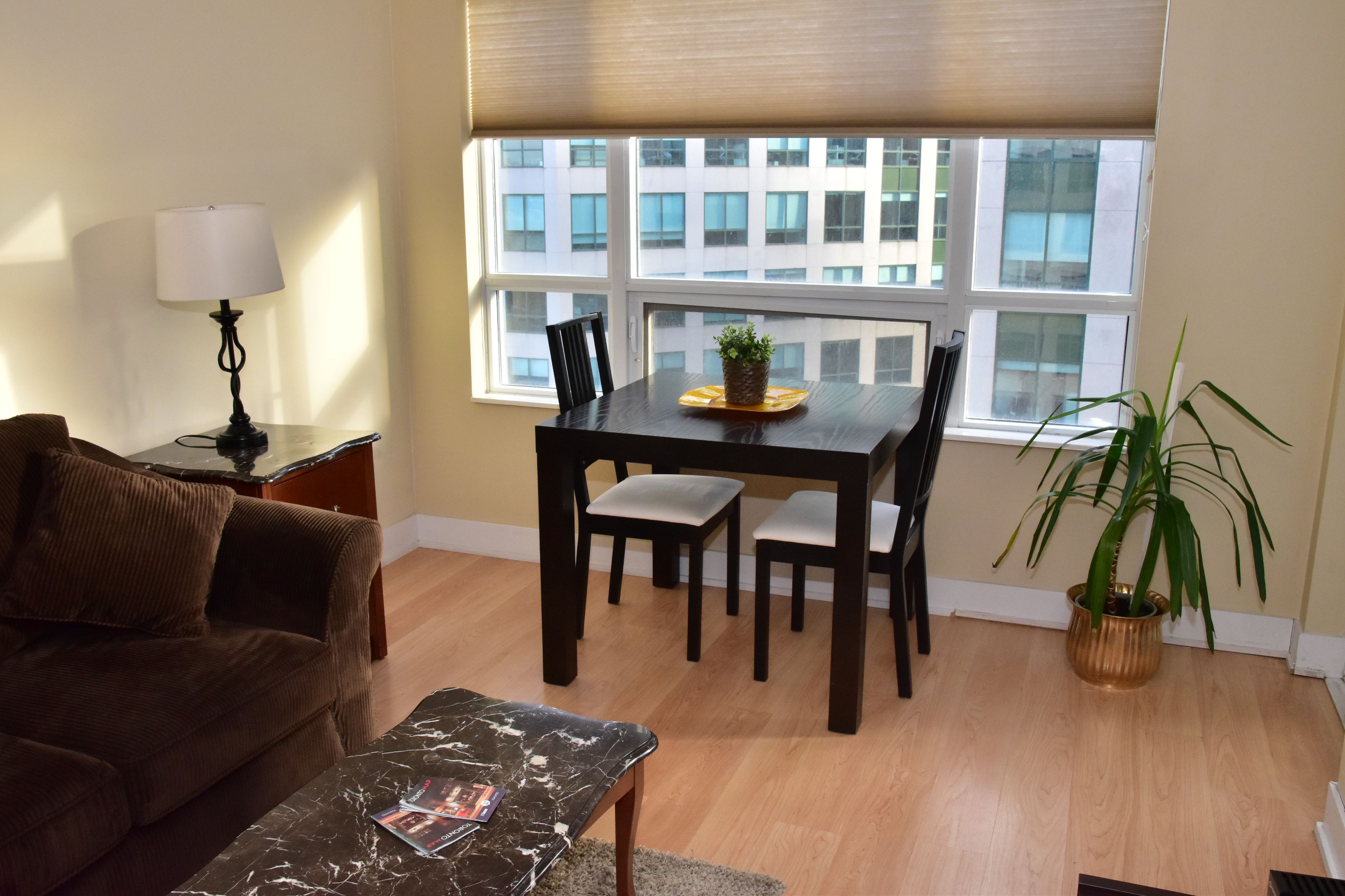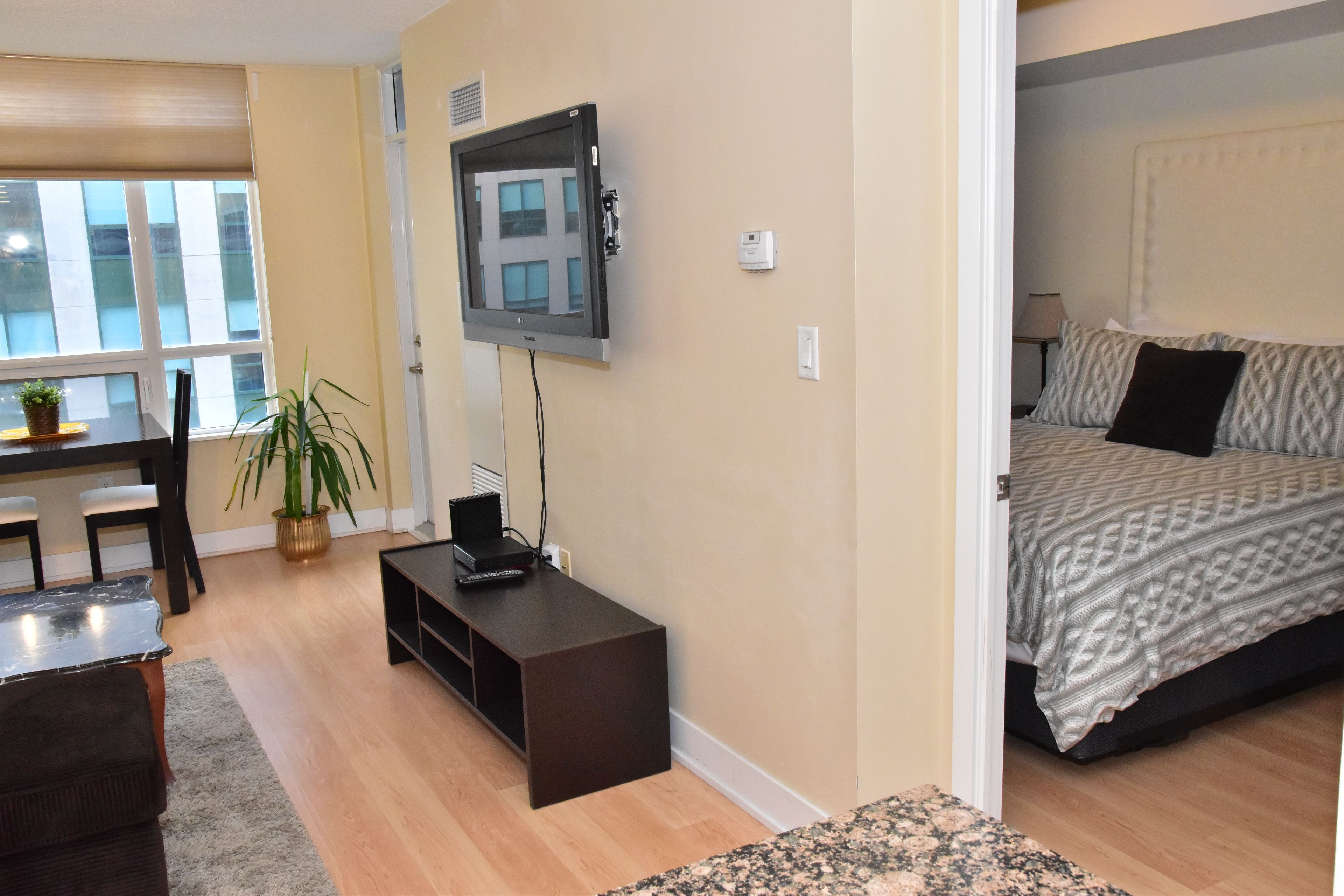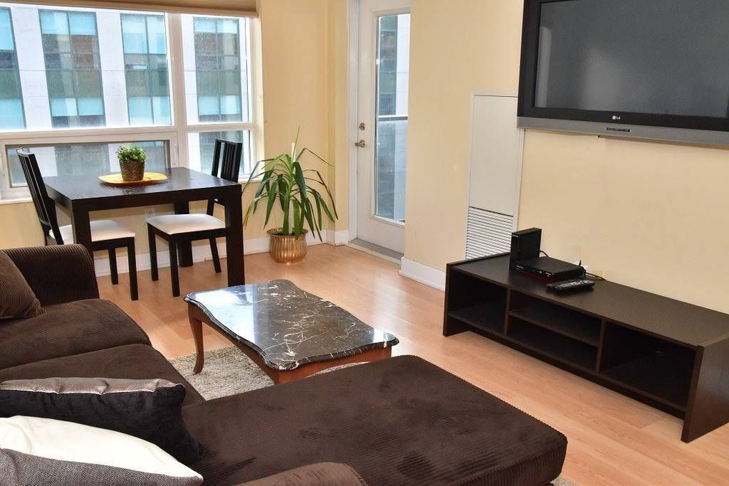 Furnished luxury suite * 620 sq ft living space w/balcony cn tower view > 4 - 12 months executive rental * corporate contract staff professionals, athletes > situated in toronto's entertainment district this beautiful spacious 1 bedroom east exposure - enjoy the sunshine and gorgeous cn tower kaleidoscope of colours > beautiful spacious popular design and no wasted space * open concept chefs delight kitchen, large granite breakfast bar with lots of counter space > fully equipped with everything you require > small & large appliances, kitchenware, dish sets, pots, pans, cutlery, glasses etc. * large living room and dining room allows the added work space with a dining table and 4 chairs set in front of the window to admire the cn tower * comfortable luxury sleeps on a quality queen bed in the primary bedroom * mirror closet doors * incredible location 3-4 minute walk cn tower, rogers centre, sobeys grocery, 24 hour rabba foods is across the street * the building main level features tim hortons pizza pizza * wonderful rooftop overlooks cn tower and rogers centre. The 22nd floor terrace w/gym, hosts a gym\ exercise room, quality equipment, aqua spa indoor pool, sauna, two 22nd floor terraces, bbq's, sun loungers * party room, billiard room and wrap around deck * the element has an exit/entrance to front street next to tim hortons > 3 minute walk to metro hall, metro convention centre and metro hall entrance for the p. A. T. H. Shopping, subway, quick walk to union station, transit lines and go train ** amazing p. A. T. H is underground city to the eaton's centre shopping hall at dundas square. The element condo is in the best toronto location showcasing major attractions within walking distance. * extras * fridge, stove, b/i microwave, b/i dishwasher, stacked washer/dryer ** aqua pool, whirlpool, party room theatre, billiards, barbecues, 24-hr concierge/security * the element building has parcel and food delivery approved and visitor parking