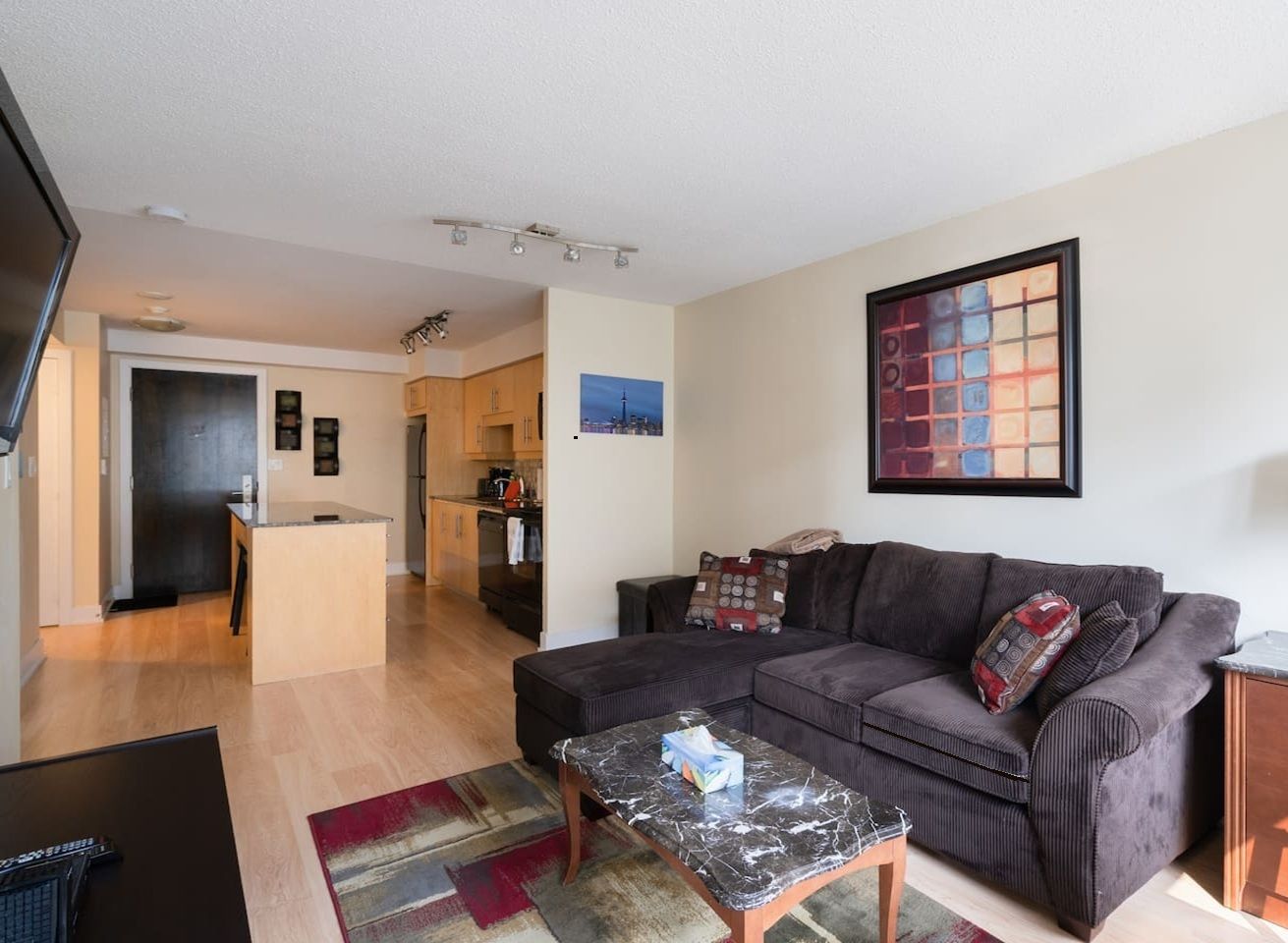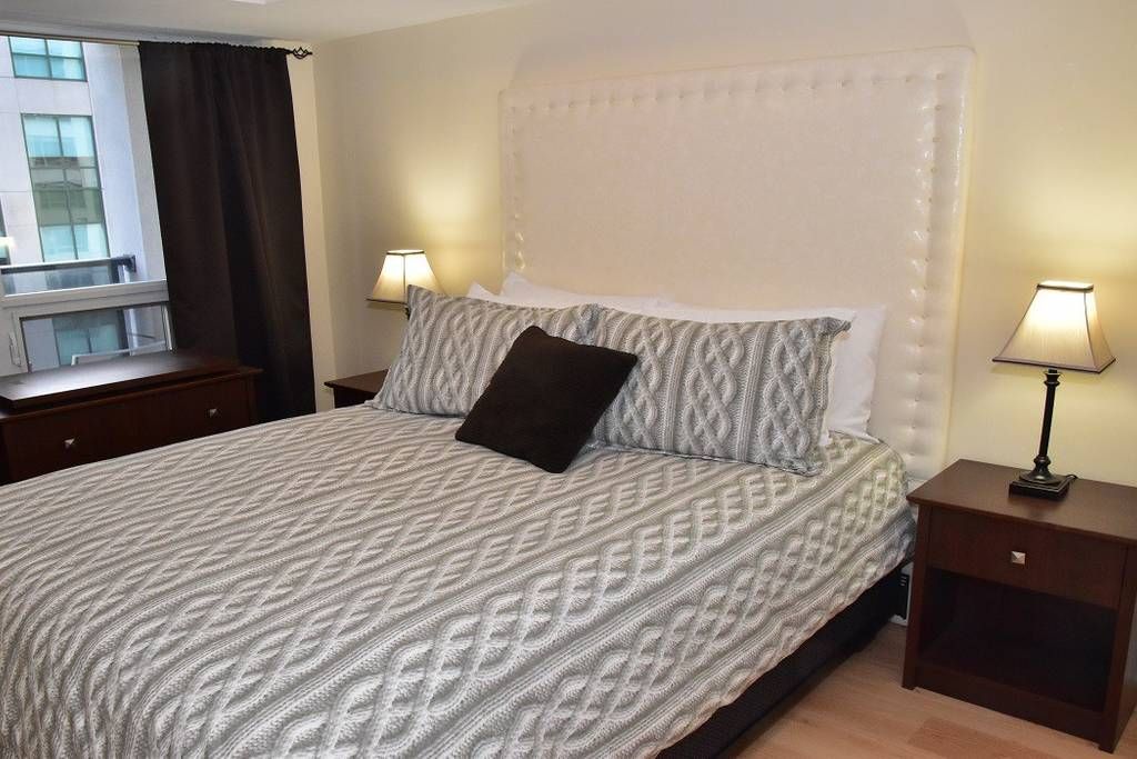 Furnished luxury suite * 620 sq ft living space w/balcony cn tower view > (3 to 12 months short term) executive rental * corporate contract staff professionals, athletes > situated in toronto's entertainment district this beautiful spacious 1 bedroom east exposure - enjoy the sunshine and gorgeous cn tower kaleidoscope of colours > beautiful spacious popular design and no wasted space * open concept chefs delight kitchen, large granite breakfast bar with lots of counter space > fully equipped with everything you require > small & large appliances, kitchenware, dish sets, pots, pans, cutlery, glasses etc. * large living room and dining room allows the added work space with a dining table and 4 chairs set in front of the window to admire the cn tower * comfortable luxury sleeps on a quality queen bed in the primary bedroom * mirror closet doors * incredible location 3-4 minute walk cn tower, rogers centre, sobeys grocery, 24 hour rabba foods is across the street * the building main level features tim hortons pizza pizza * wonderful rooftop overlooks cn tower and rogers centre. The 22nd floor terrace w/gym, hosts a gym\ exercise room, quality equipment, aqua spa indoor pool, sauna, two 22nd floor terraces, bbq's, sun loungers * party room, billiard room and wrap around deck * the element has an exit/entrance to front street next to tim hortons > 3 minute walk to metro hall, metro convention centre and metro hall entrance for the p. A. T. H. Shopping, subway, quick walk to union station, transit lines and go train ** amazing p. A. T. H is underground city to the eaton's centre shopping hall at dundas square. The element condo is in the best toronto location showcasing major attractions within walking distance. * extras * fridge, stove, b/i microwave, b/i dishwasher, stacked washer/dryer ** aqua pool, whirlpool, party room theatre, billiards, barbecues, 24-hr concierge/security * the element building has parcel and food delivery approved