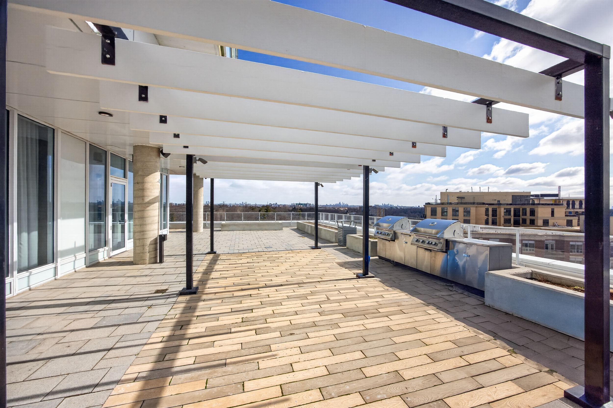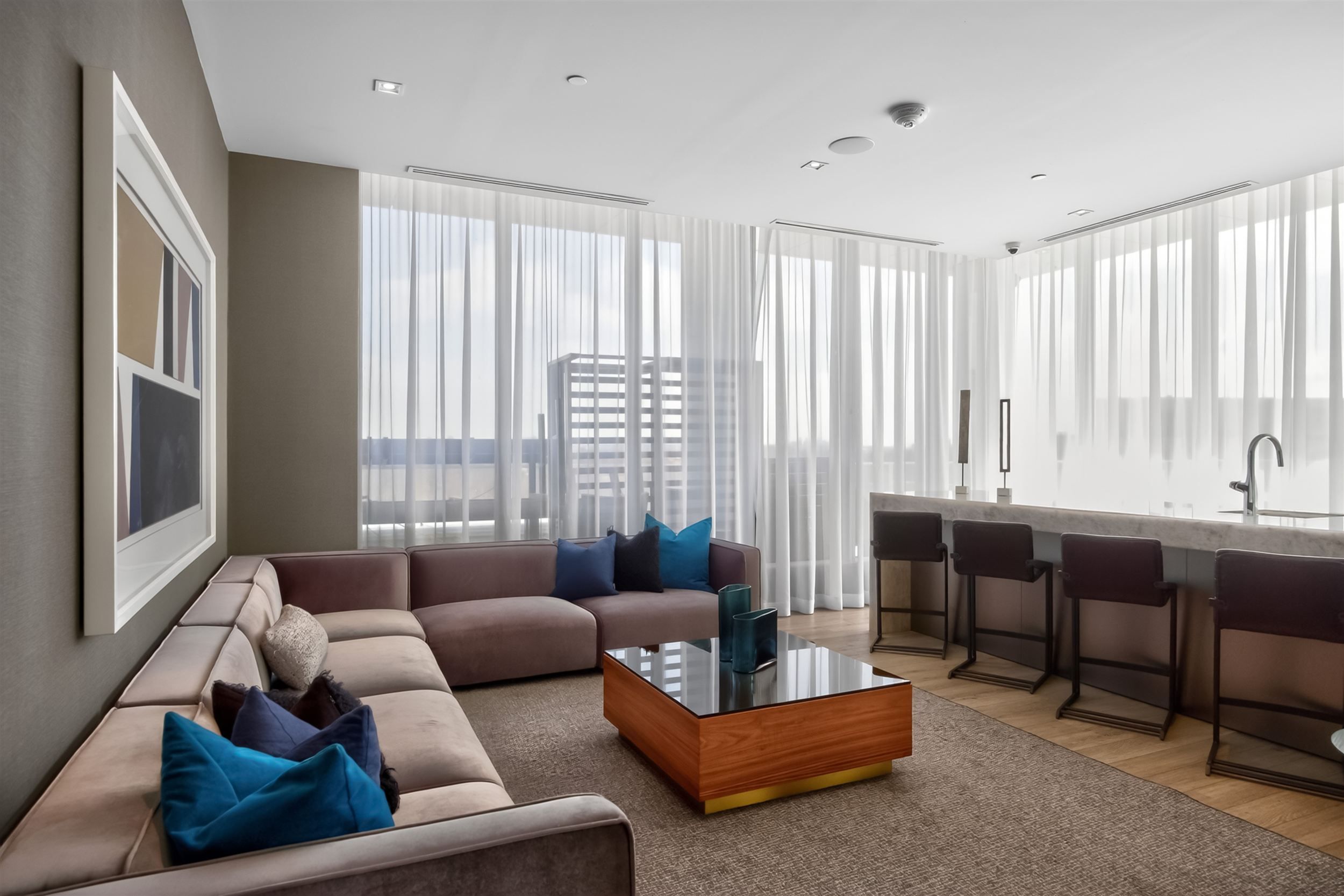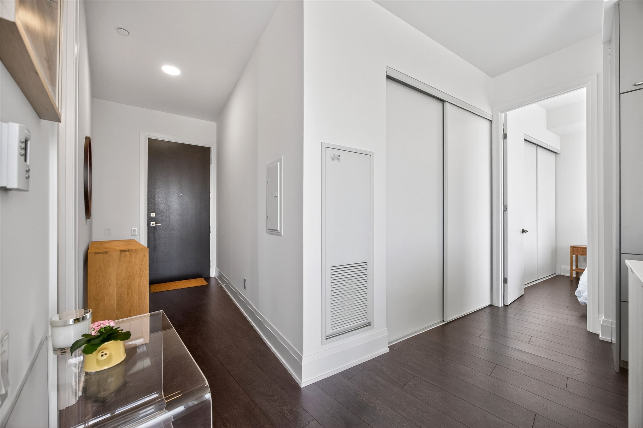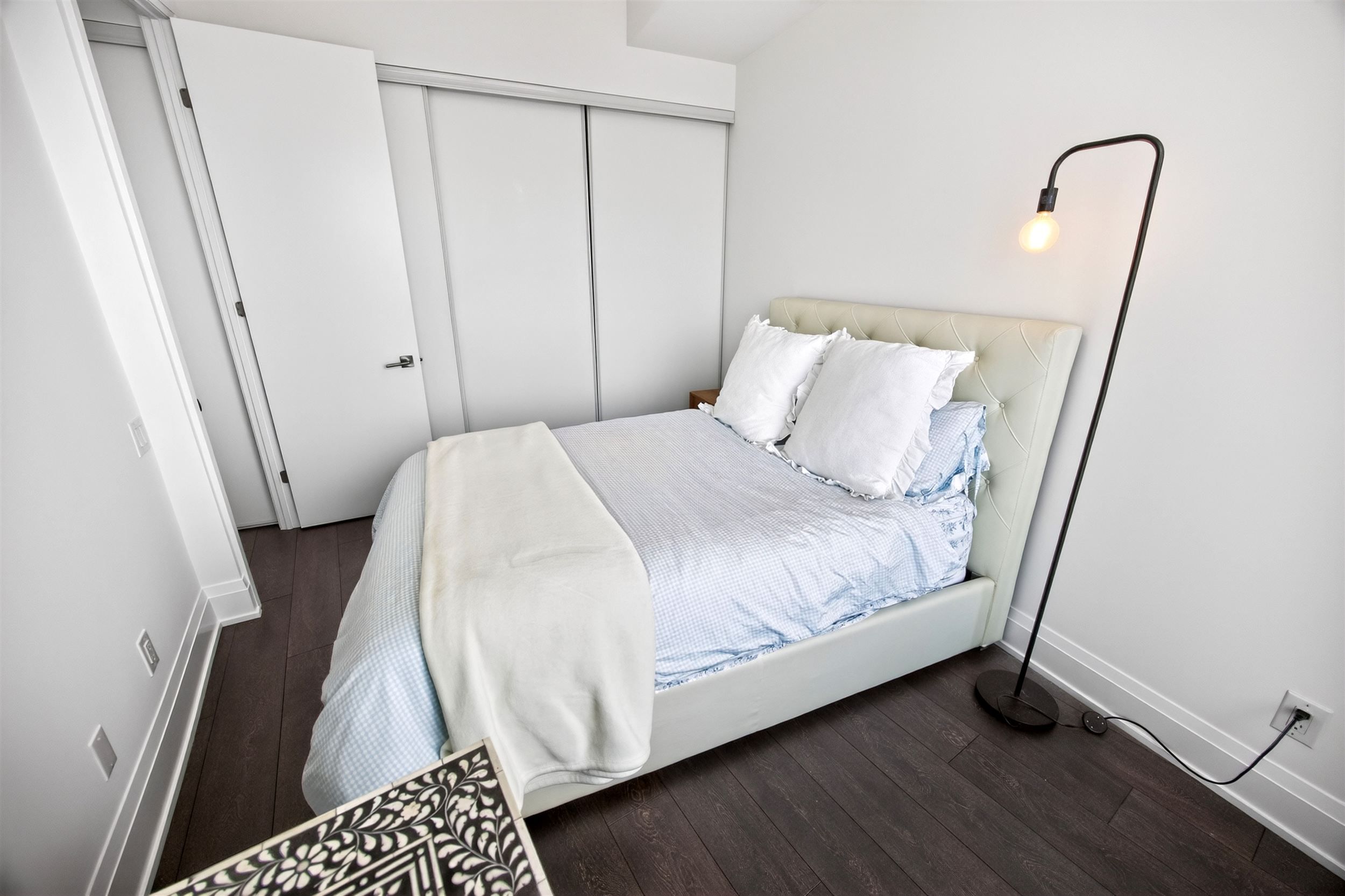 Spectacular sub-penthouse condo flooded with natural light, featuring soaring 10-foot ceilings and expansive southwest views. Enjoy seamless indoor outdoor living with an impressive 30-foot-wide private balcony spanning the entire width of the suite. Complete with a gas line- perfect for evening bbqs while taking in the stunning sunsets. The thoughtfully designed l-shaped kitchen offers an ideal workspace for home cooks and entertainers alike, featuring extended cabinetry for ample storage, a functional island for prep and gathering, and integrated miele appliances including a sleek induction cooktop. This spacious bedroom includes a large closet and a blackout window covering for added comfort. An open concept den flows effortlessly off the living area, creating a versatile space ideal for a home office or fitness nook not to mention high speed internet is included! Additional features include upgraded lighting, a generous entryway, a bathroom medicine cabinet for added storage, and modern light toned finishes that create a clean, organic aesthetic throughout. Complete with one parking space and one locker. This is a rare opportunity to lease a bright, well appointed sub-penthouse in a highly desirable setting.