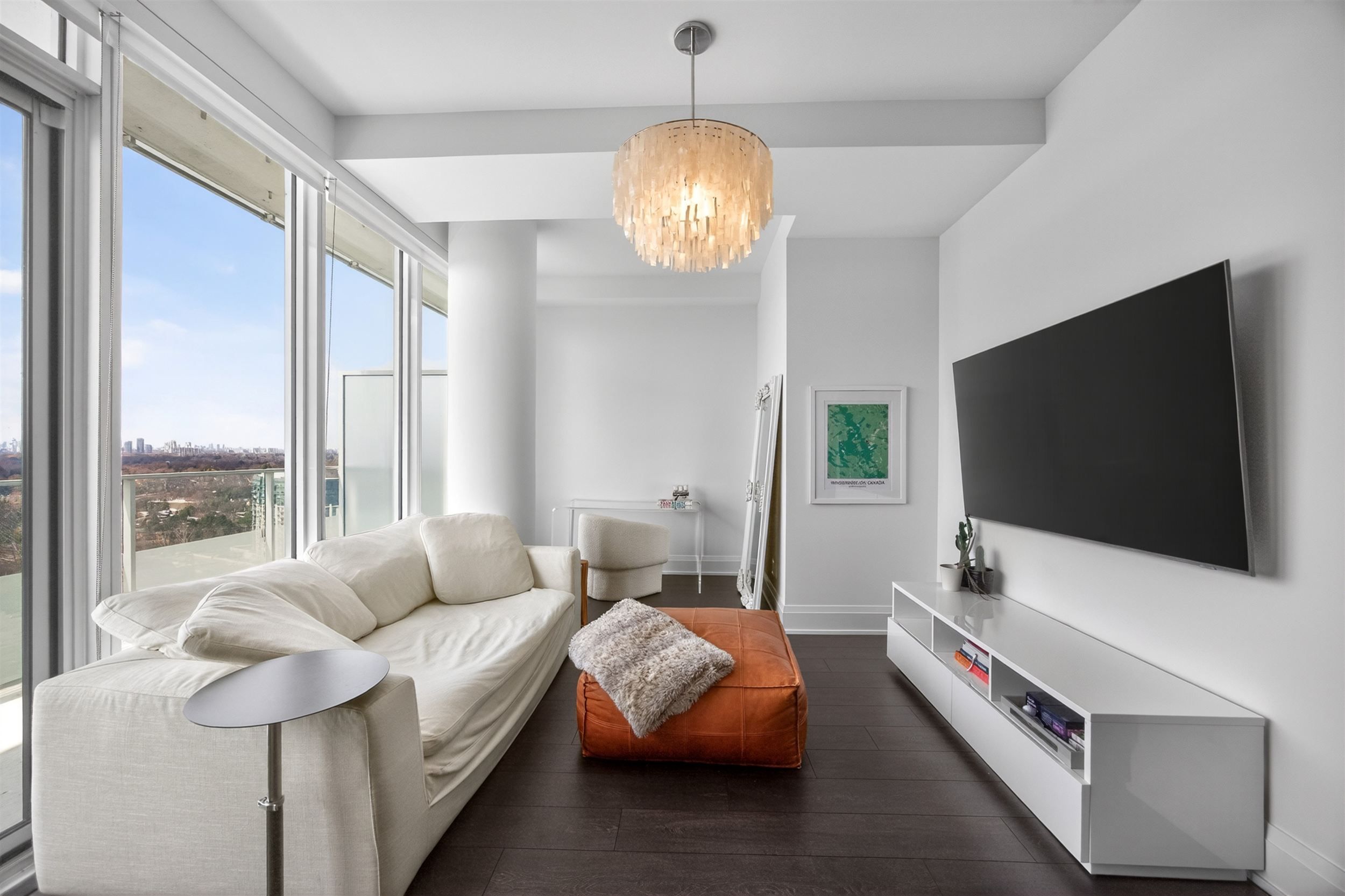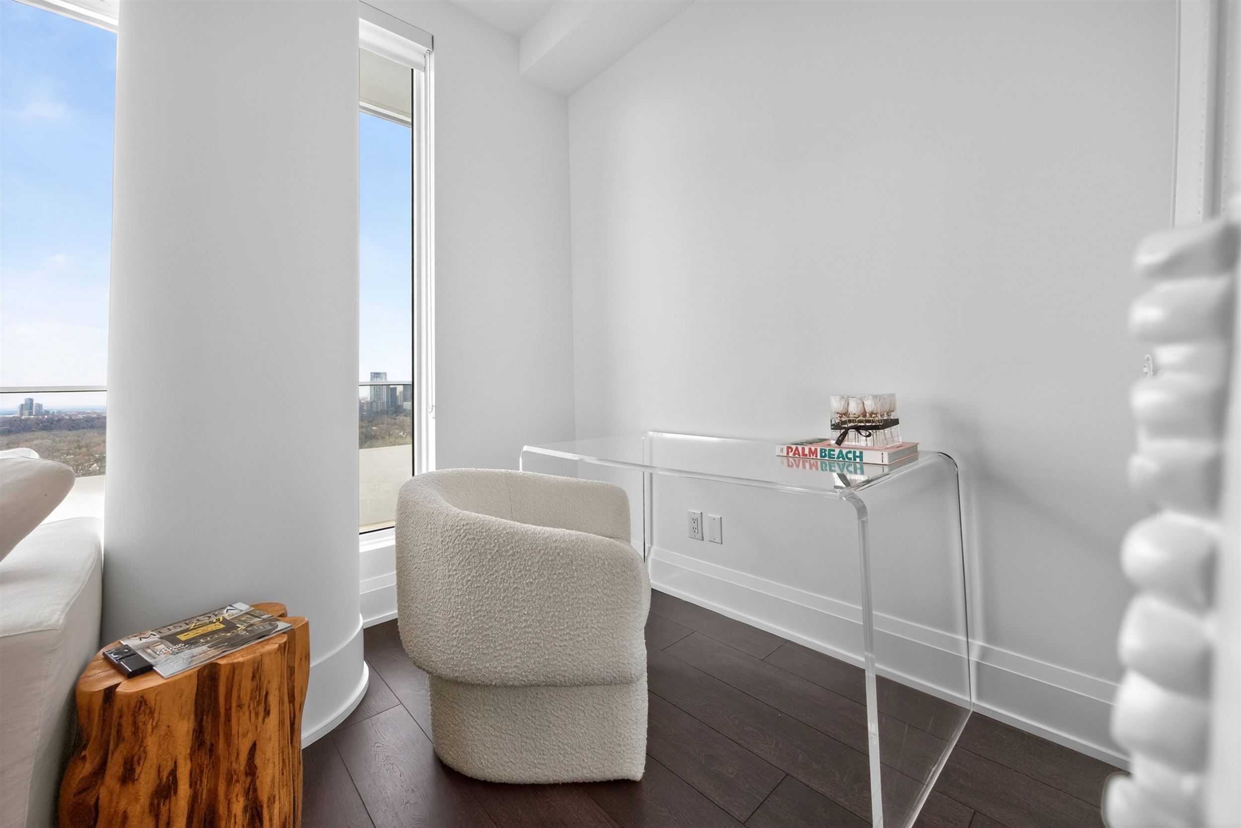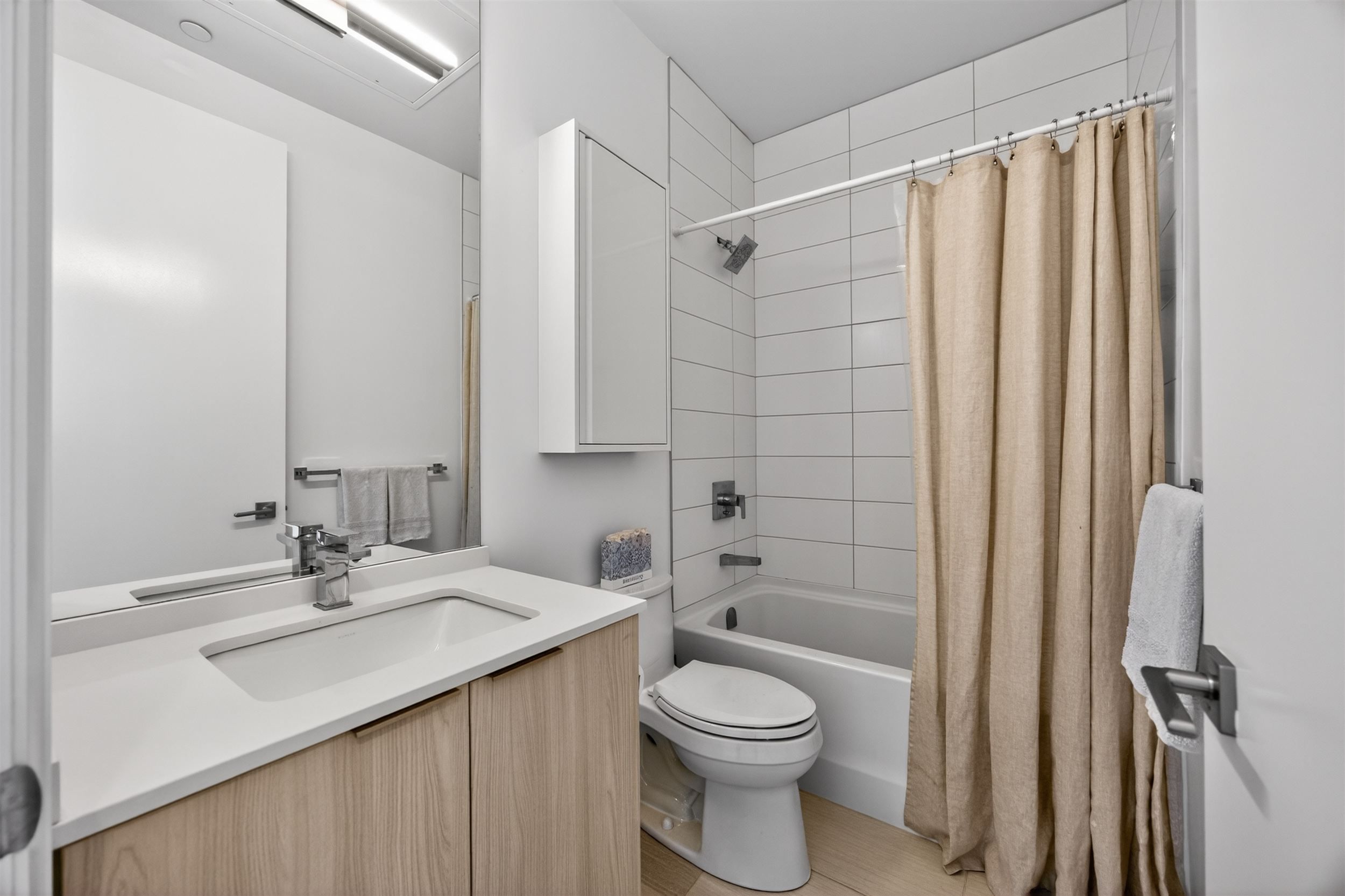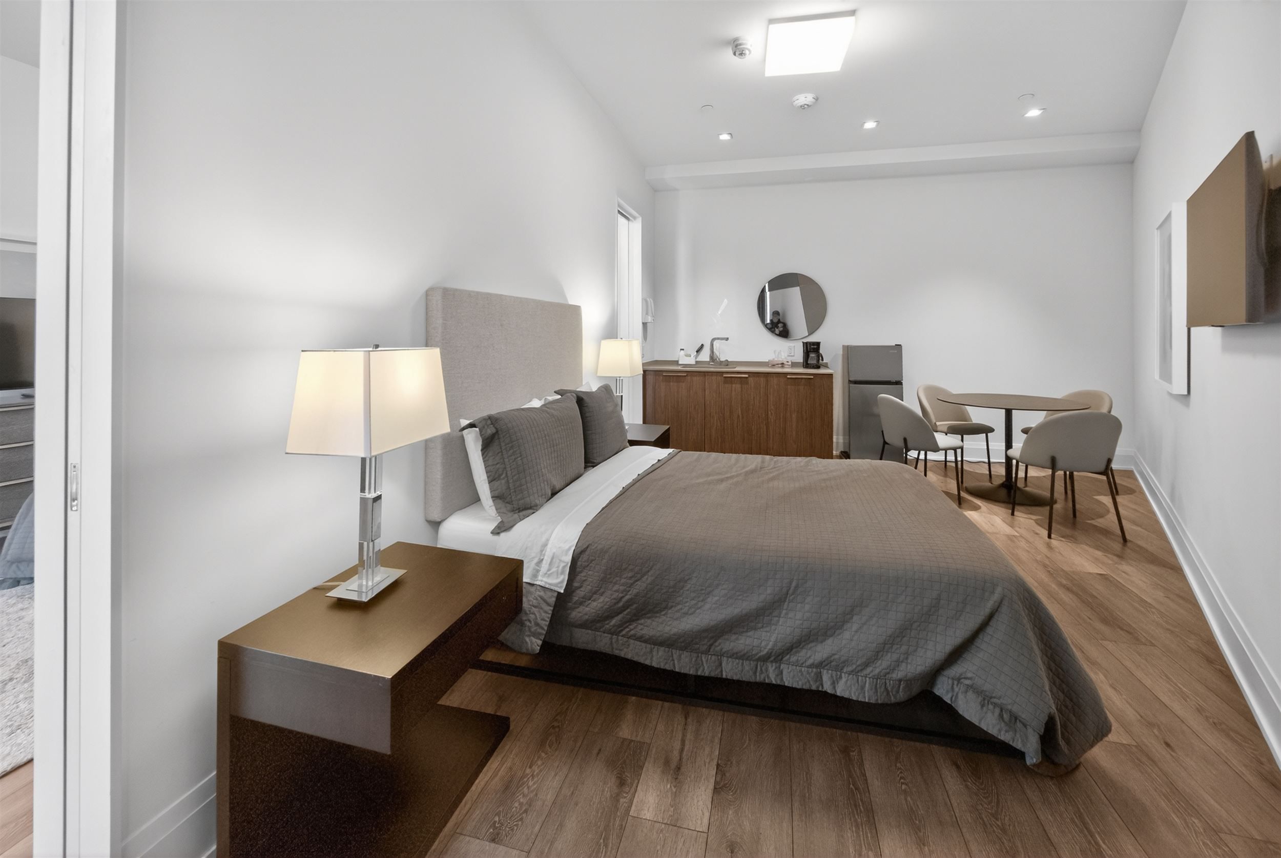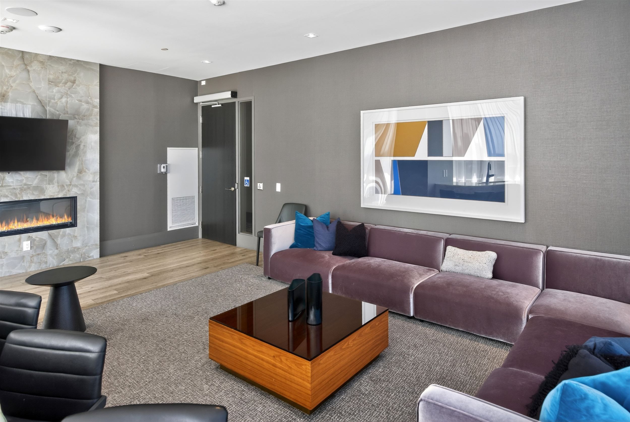 Spectacular sub-penthouse condo flooded with natural light, featuring soaring 10-foot ceilings and expansive southwest views. Enjoy seamless indoor outdoor living with an impressive 30-foot-wide private balcony spanning the entire width of the suite. Complete with a gas line- perfect for evening bbqs while taking in the stunning sunsets. The thoughtfully designed l-shaped kitchen offers an ideal workspace for home cooks and entertainers alike, featuring extended cabinetry for ample storage, a functional island for prep and gathering, and integrated miele appliances including a sleek induction cooktop. This spacious bedroom includes a large closet and a blackout window covering for added comfort. An open concept den flows effortlessly off the living area, creating a versatile space ideal for a home office or fitness nook not to mention high speed internet is included! Additional features include upgraded lighting, a generous entryway, a bathroom medicine cabinet for added storage, and modern light toned finishes that create a clean, organic aesthetic throughout. Complete with one parking space and one locker. This is a rare opportunity to lease a bright, well appointed sub-penthouse in a highly desirable setting.