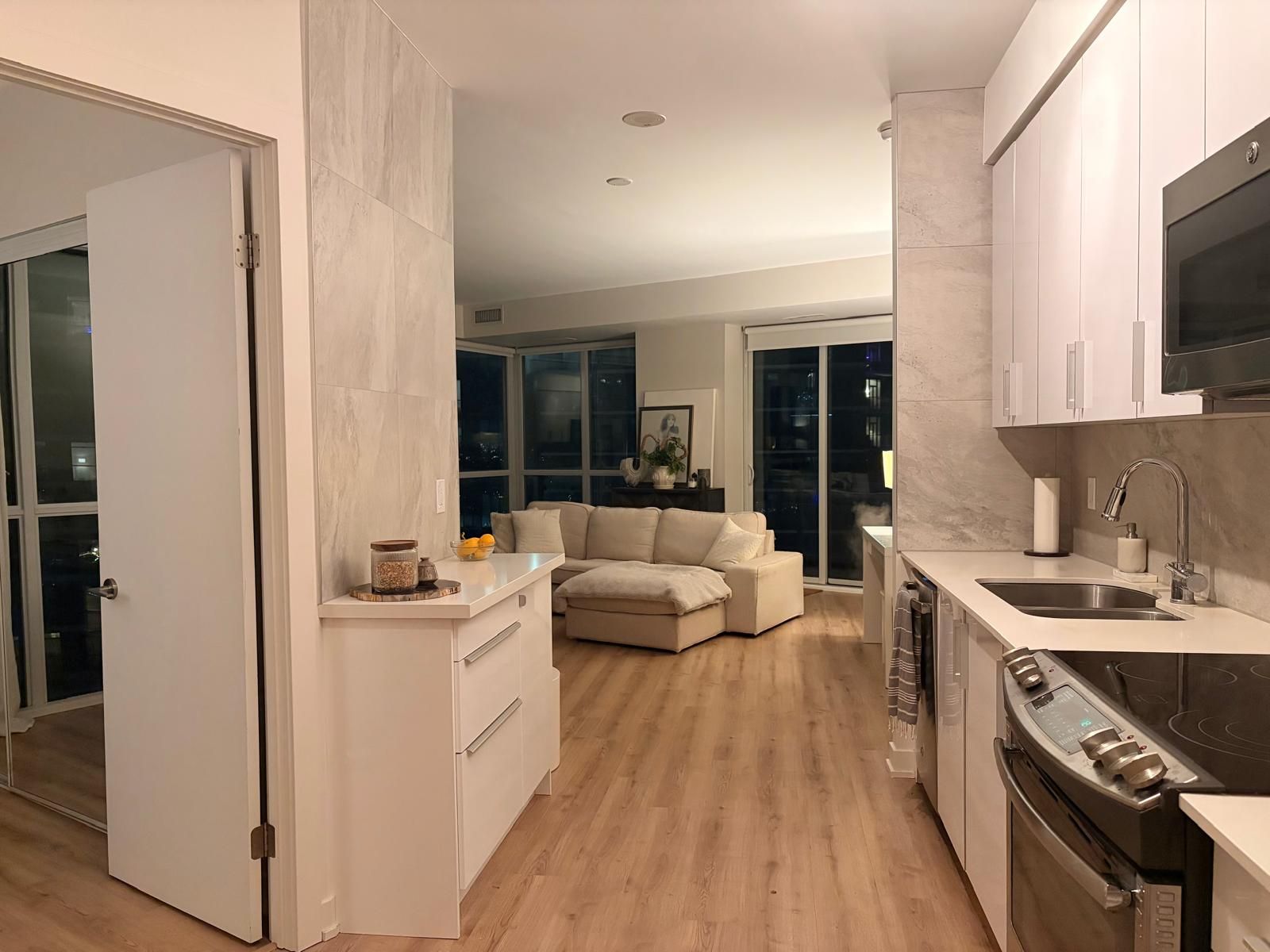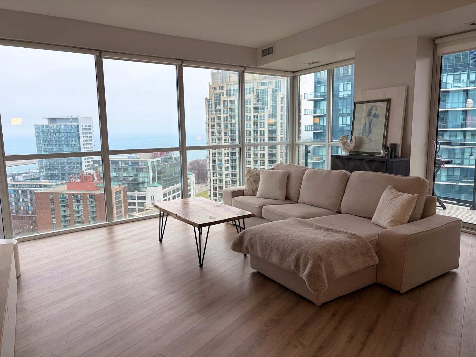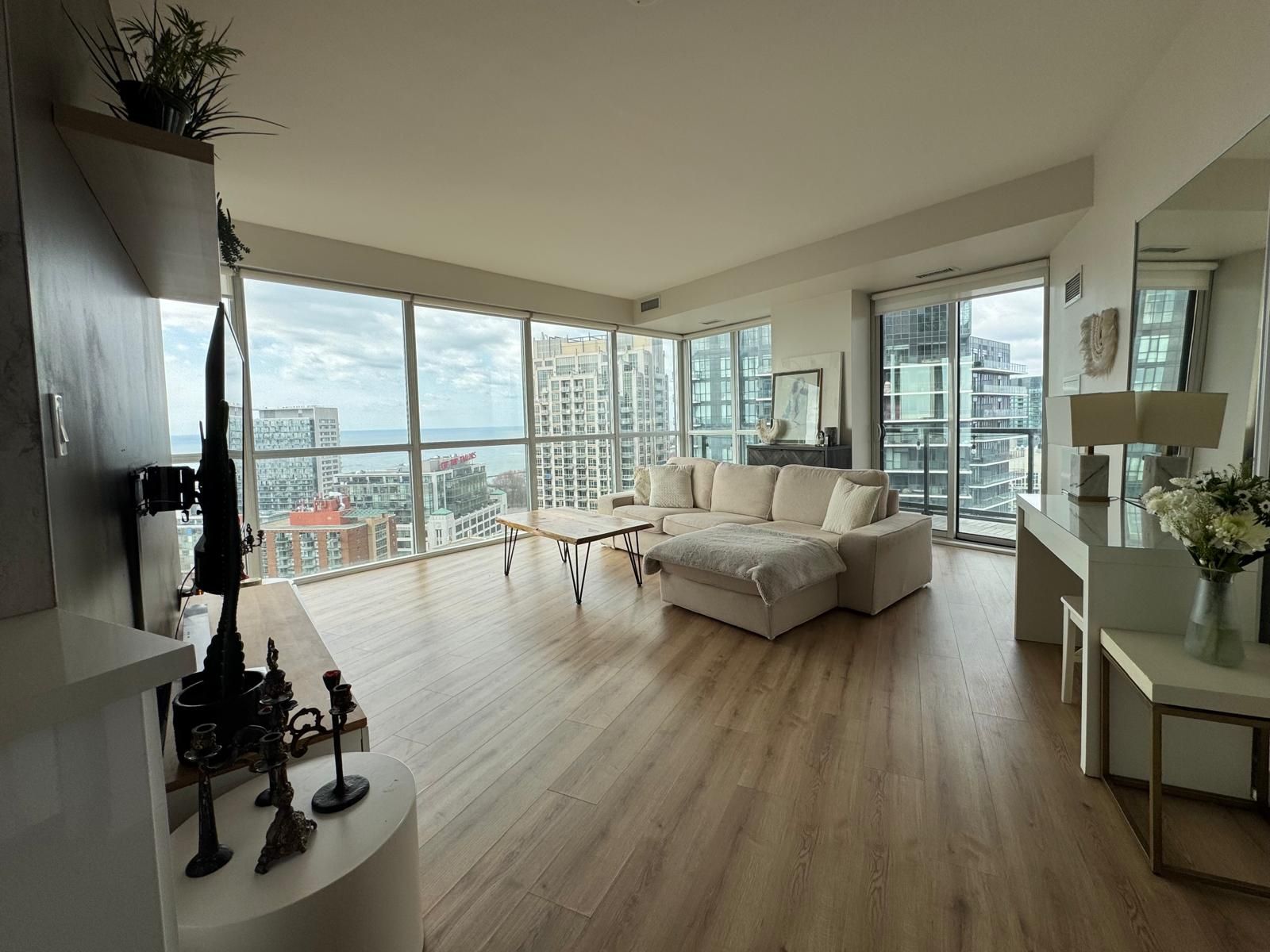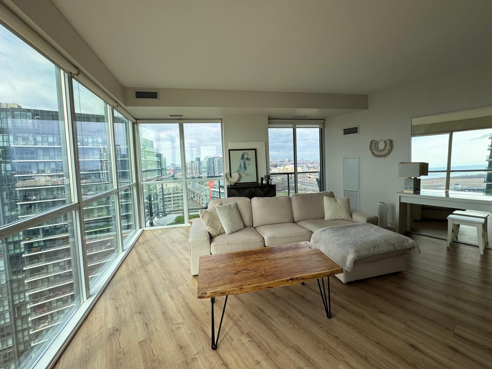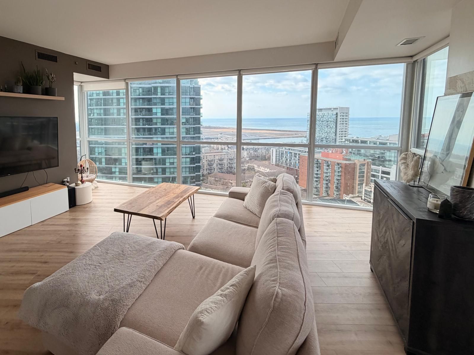 Sunrise and sunset views with stunning 180 southwest exposure through floor-to-ceiling windows fill this bright and beautifully updated suite. Featuring renovated flooring throughout, an upgraded kitchen, and a stylish coffee bar, this unit offers both comfort and modern appeal. Ideally located next to fort york, billy bishop airport, parks, loblaws, lcbo, with easy access to highways and public transit for ultimate convenience. Second parking space available for rent.