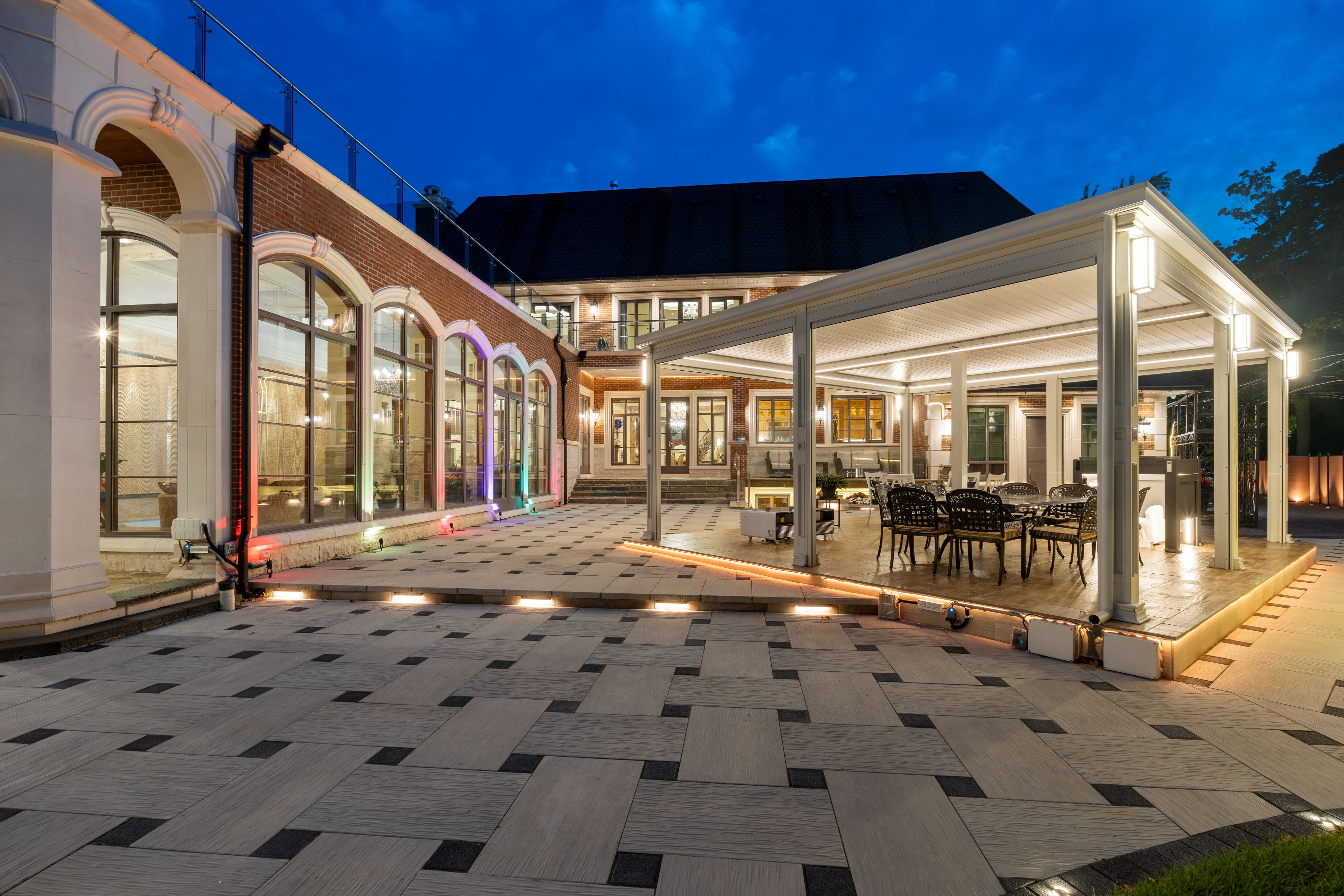 Exceptional luxury awaits! Welcome to 20 bryson drive, situated on the most prestigious street in south richvale, richmond hill. This is a rare offering featuring an impressive 11,000 square feet of master craftsmanship. Enter through a gated entrance onto a interlocked circular driveway, leading to a home equipped with cutting-edge smart home technology. The main level, pool area, lower level, and bathrooms boast heated flooring. An elevator provides convenience, while a 20-seat, three-tiered movie theatre with a projection system and speakers offers cinematic experiences. Enjoy year-round relaxation in the full-size indoor swimming pool and hot tub, both enhanced by 20-foot-high ceilings, skylights, and illuminated lighting. The backyard is an entertainer's paradise, featuring extensive stone tile interlocking, a large covered veranda patio accessible from the kitchen, family room, and indoor pool area, and a spacious pergola with automated retractable coverings. The custom-built loggia, complete with folding patio doors, hosts a fully equipped outdoor kitchen, oversized wet bar, and entertainment center. Relax by the gas fire pit or enjoy movies in the backyard courtyard with its own projection system. The expansive second-floor terrace offers multiple walk-outs, providing even more space for outdoor enjoyment. **extras** gourmet chef's kitchen w/ prep kitchen + w/i freezer. Heated flooring on main level/ pool area/ lower level + washrooms** elevator*~inspiring hand crafted center hall stained glass skylight!~ golf simulation system, wet bar + wine cellar