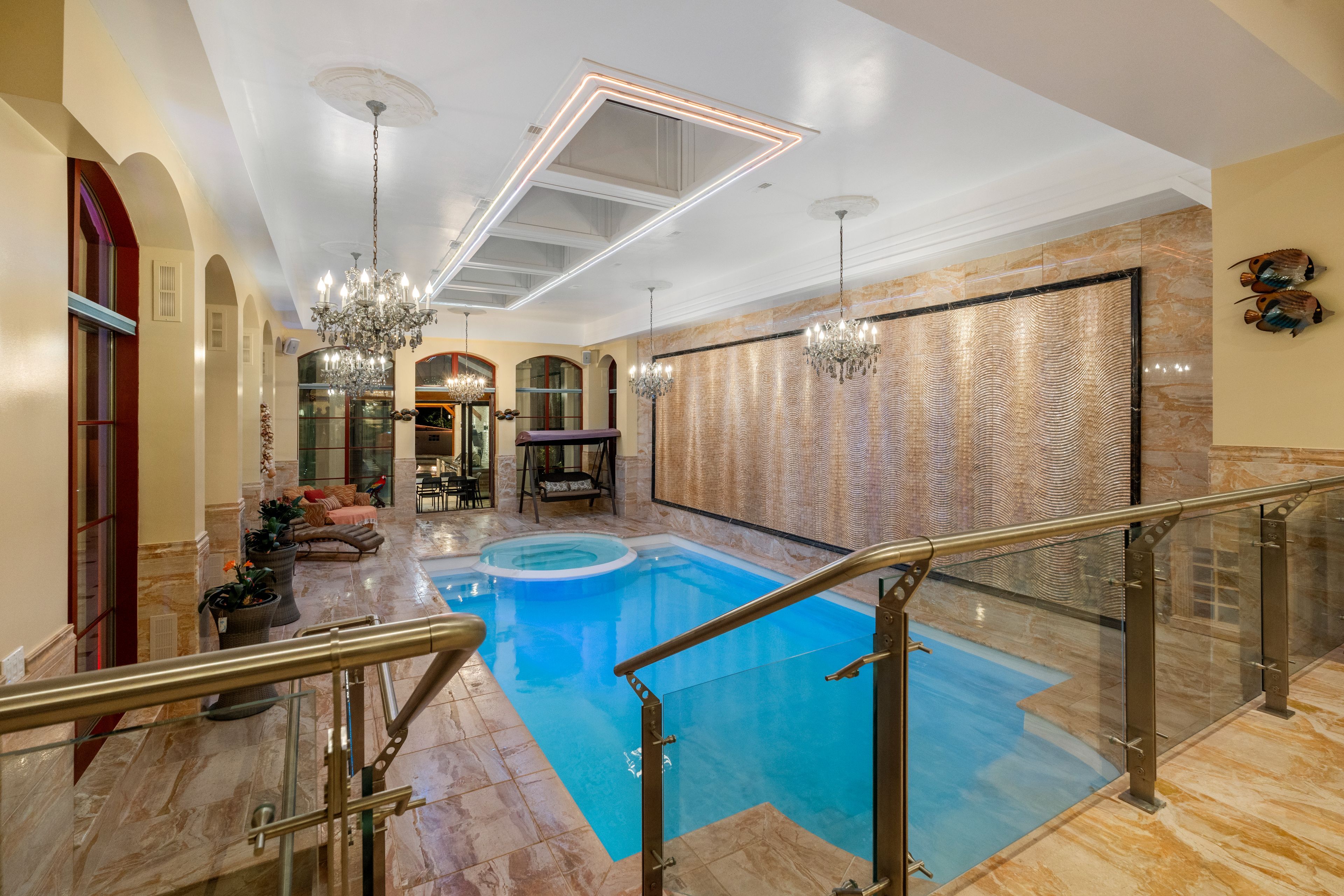 • Heated flooring in main areas, pool, and bathrooms for extra comfort.