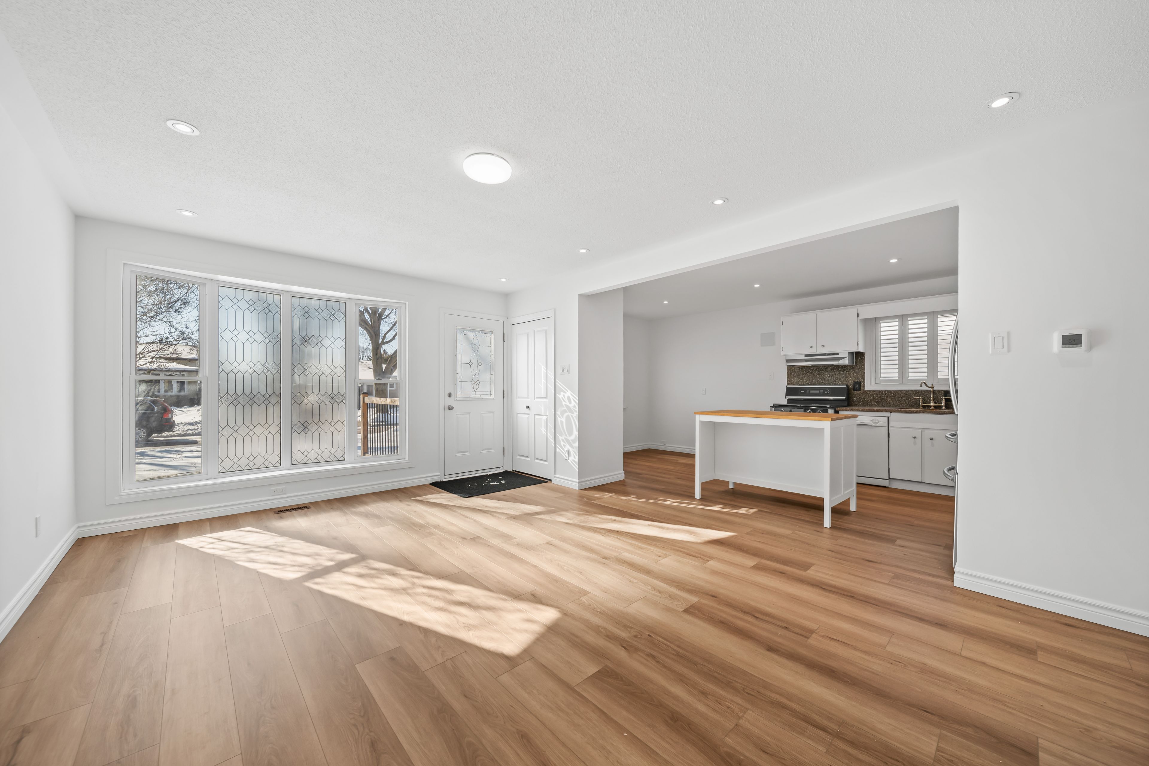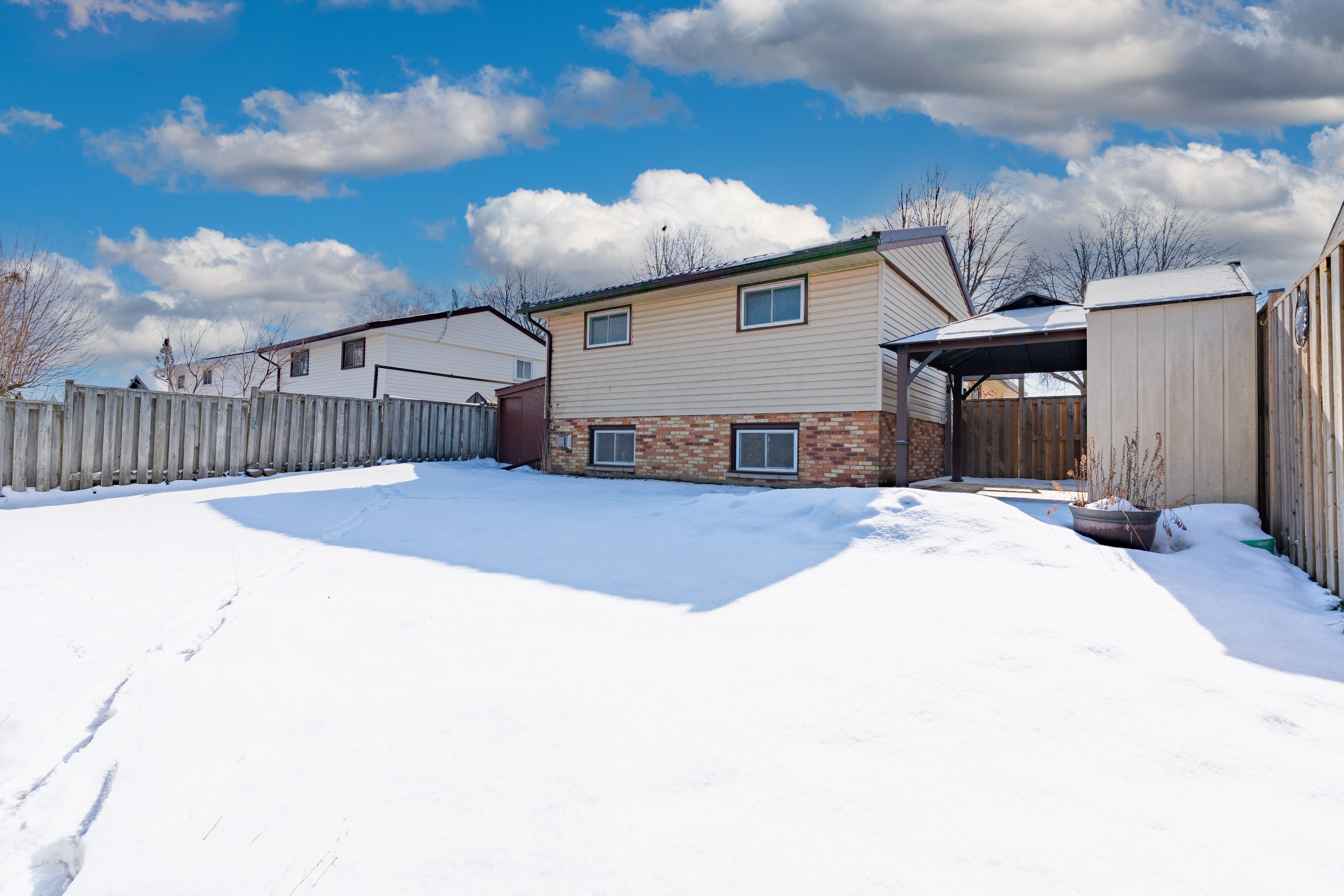 A must-see! Lined with mature maple trees, buchan rd is a quiet, family-friendly street known for its strong sense of community. A welcoming front porch leads into this bright, well-maintained back-split filled with natural light. Recent updates include new laminate flooring and fresh paint (2026) and a durable steel roof (2020). The main floor features a spacious living room with a south-facing bay window, flowing into a charming dining nook and a well-appointed kitchen with california shutters and a functional island offering additional storage and prep space. Upstairs are three good-sized bedrooms, including a primary with double closets, as well as a large four-piece bathroom. A convenient side entrance leads to the cozy lower-level family room with a gas fireplace and new carpeting (2026). The basement includes a two-piece bathroom and a versatile bonus room ideal for a home gym. Some photos may include digital enhancements to illustrate the property's potential.