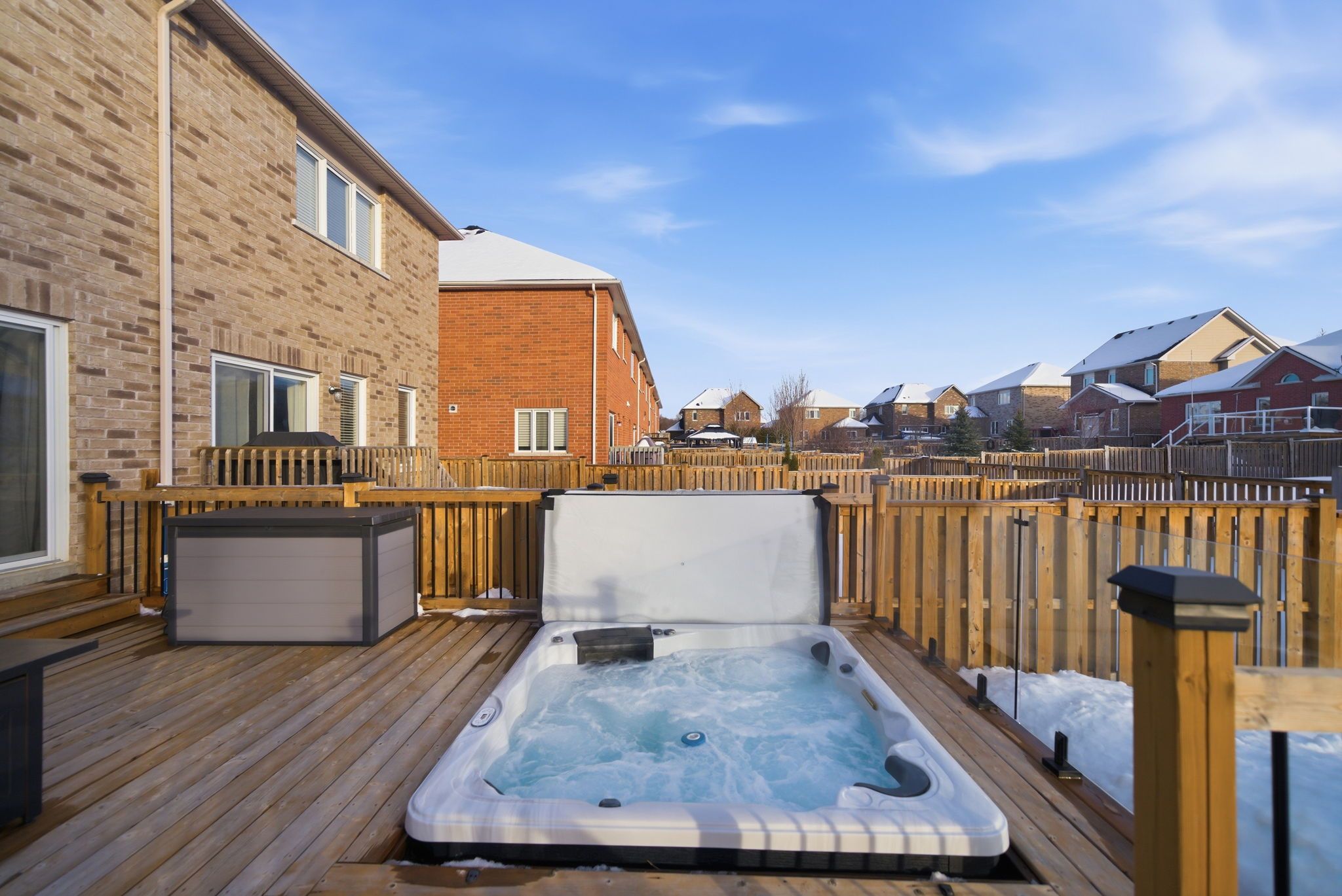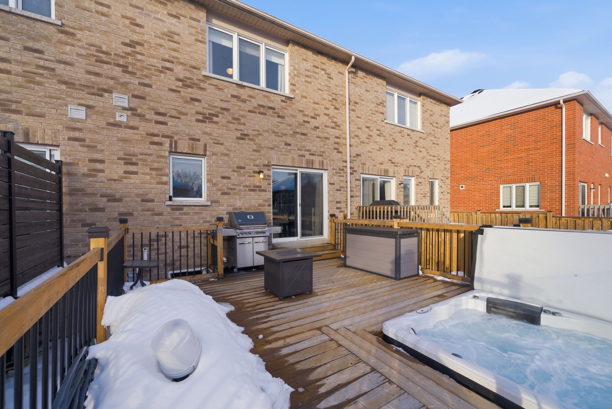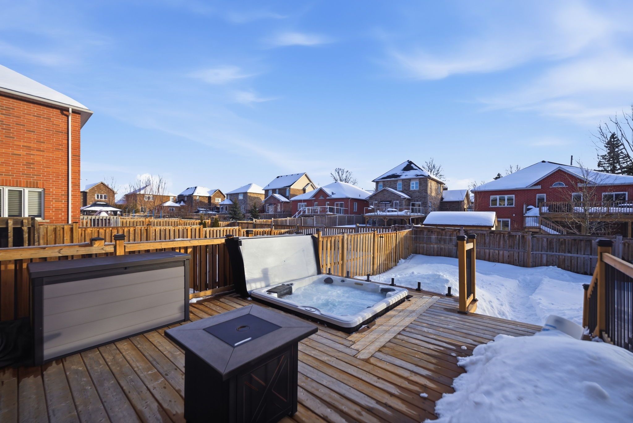 Family-friendly 3-bedroom freehold townhouse on quiet court in uxbridge. Beautifully maintained, only10-yrs perfect for families seeking comfort, community, and convenience. Located within walking distance to schools, parks, and local amenities, this home offers the ideal blend of small-town charm and modern living. The open-concept main floor features laminate flooring throughout, a modern kitchen with backsplash, natural gas stove, and a bright, functional layout ideal for family life and entertaining. Enjoy the convenience of interior access from the garage and an extra-long driveway providing parking for up to three vehicles. Step outside to a deck and partially fenced backyard, complete with a gas bbq hookup and hot tub (2020) - a great space for relaxing or hosting family gatherings. Upstairs, the generous primary suite includes a walk-in closet and a 3-piece ensuite with separate shower and large linen closet. Two additional bedrooms, a 4-piece main bathroom with oversized linen closet, and a convenient second-floor laundry room complete the upper level. A wood staircase adds warmth and character throughout. Additional features include an upgraded a/c system, reverse osmosis water system (on demand, 6 months old), rough-in for central vacuum, additional 30 amp plug in garage. A move-in-ready home in a safe, family-oriented uxbridge neighbourhood.