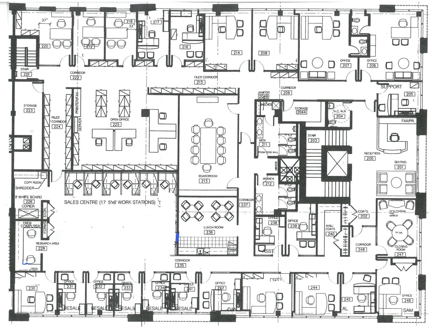 Professional office space for lease. This 2nd floor office space offers a total of 11,038 square feet of versatile space, perfect for companies seeking a professional and collaborative work environment. Key features include a mix of private, enclosed offices for focused work, a spacious, well-lit boardroom ideal for meetings and presentations. Expansive open spaces, with 10' ceilings, for flexible workstations, team collaboration, and a dynamic office culture. Bright windows provide ample natural light throughout the space, creating a bright and inviting atmosphere. This office space is designed for companies looking to enhance productivity while maintaining a polished and professional image. Private elevator and stair access to the 2nd floor unit. 22 closed offices (including 2 executive size offices, 2 jr executive offices), 2 open work spaces, 1 meeting room & 1 boardroom, private full size kitchen with seating area. 3 private washrooms, 2 shared (2 stall & 2 stall + urinal) washrooms. 3 storage rooms. Tmi $7. 75