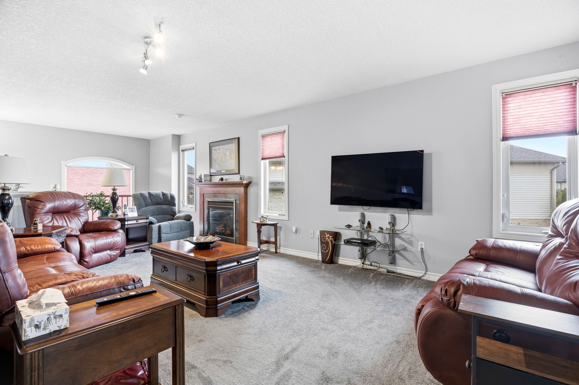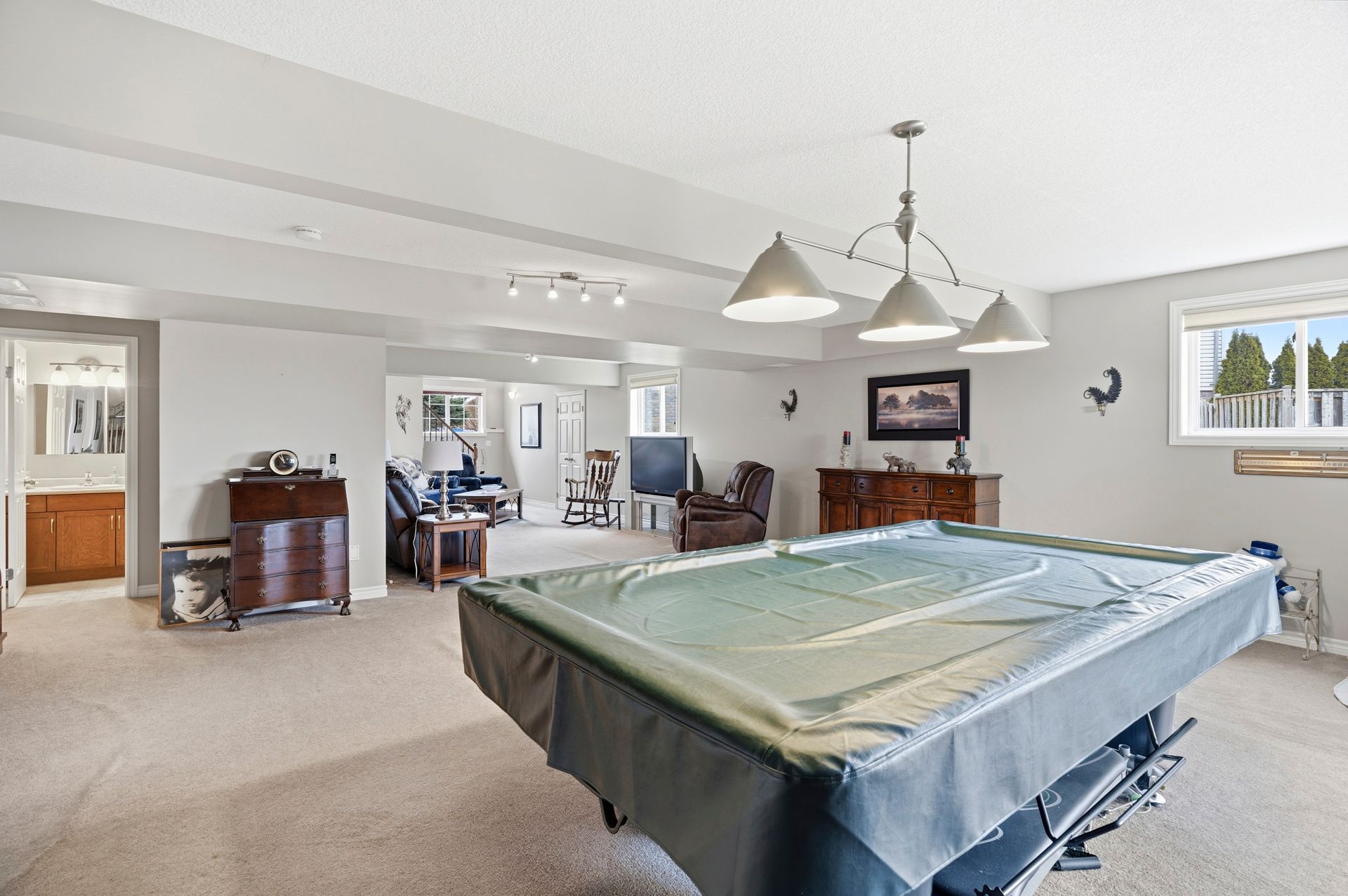 Welcome home! This inviting 4-bedroom, 3-bathroom raised ranch features a finished walkout basement and is nestled on a quiet cul-de-sac, making it ideal for the whole family. The main floor offers an open-concept kitchen and dining area that seamlessly flows into a spacious living room with a gas fireplace. You'll also find the primary bedroom with an ensuite and walk-in closet, two guest bedrooms, and a four-piece guest bath on this level. Downstairs, the expansive family room and billiards area immediately impress, providing access to the fourth bedroom, laundry room, office, and the large rear yard through the patio door.