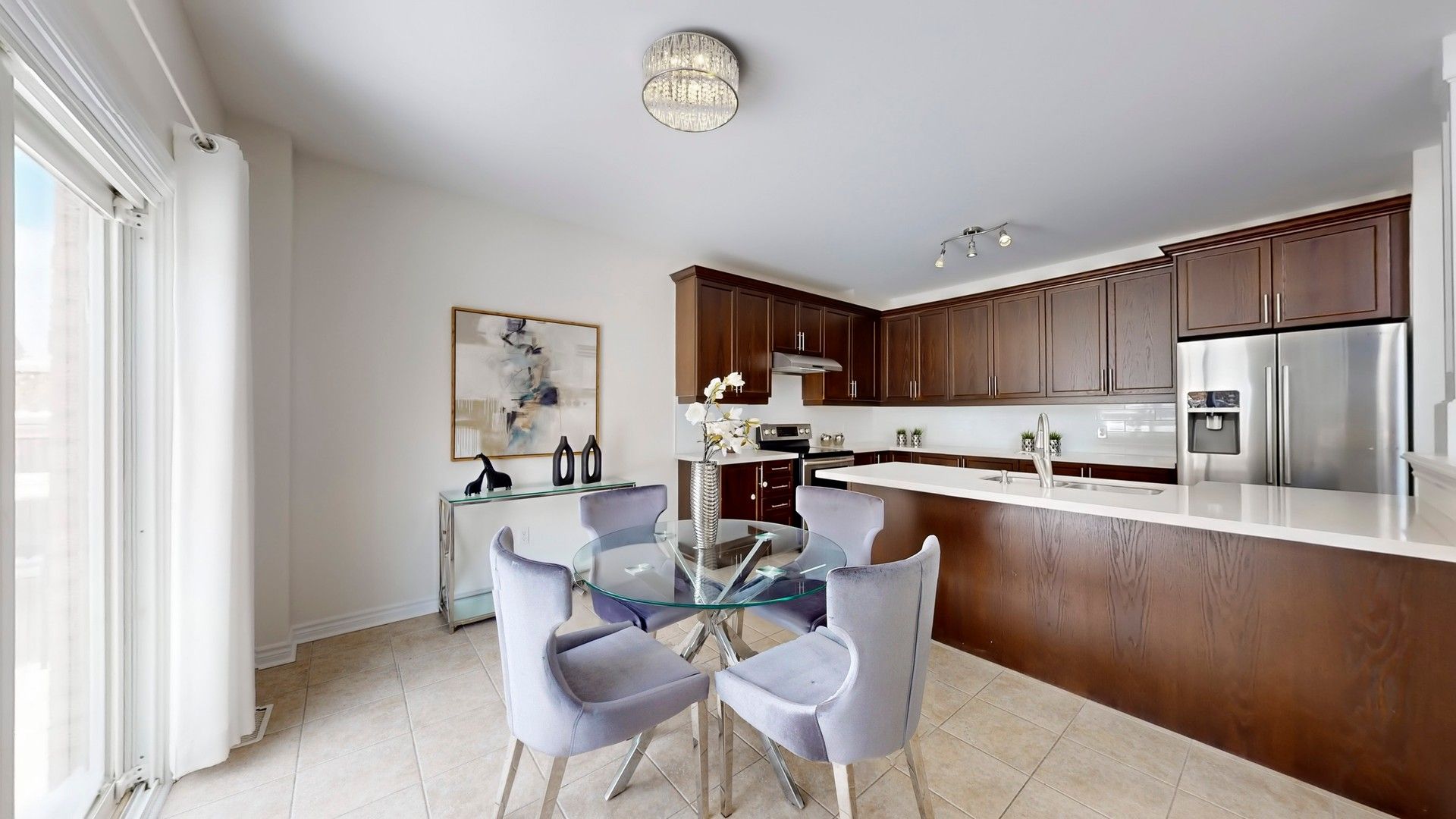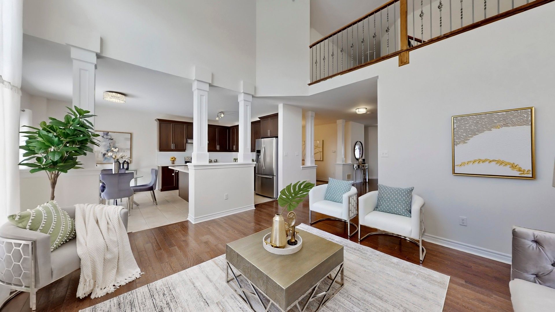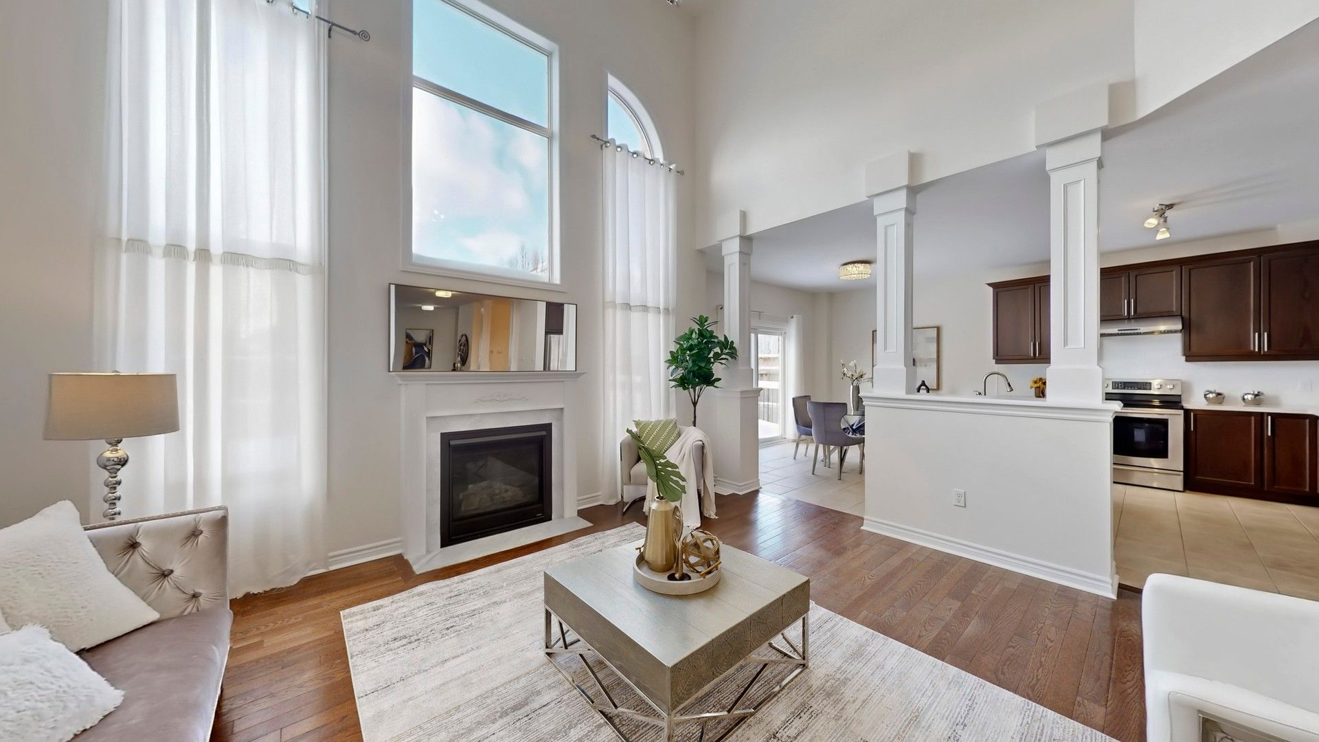 Welcome to this beautifully maintained home offering a bright and functional layout for family living. Freshly painted throughout, this move-in-ready home features hardwood flooring/smooth ceiling on the first floor and abundant natural light. Impressive family room with soaring 18-ft ceilings and a gas fireplace, creating a warm and inviting space for entertaining and everyday enjoyment. Functional kitchen offers quartz countertops, new backsplash, ample cabinetry, centre island, stainless steel appliances, new range-hood. Four generously sized bedrooms, with two bedrooms featuring private en-suite bathrooms. Interlocking (2021) at the backyard with a large wooden deck. Located in a family-friendly neighbourhood with excellent schools, close to trails, waterfront, and go station.