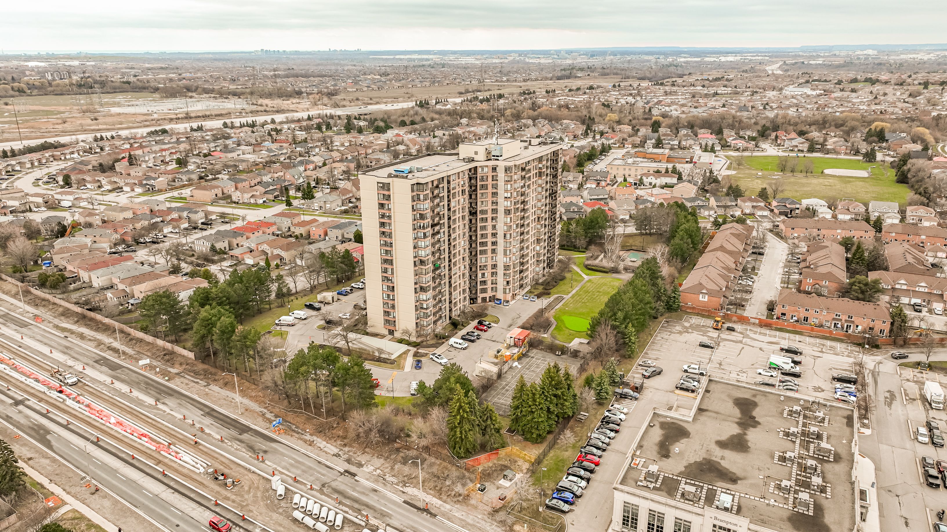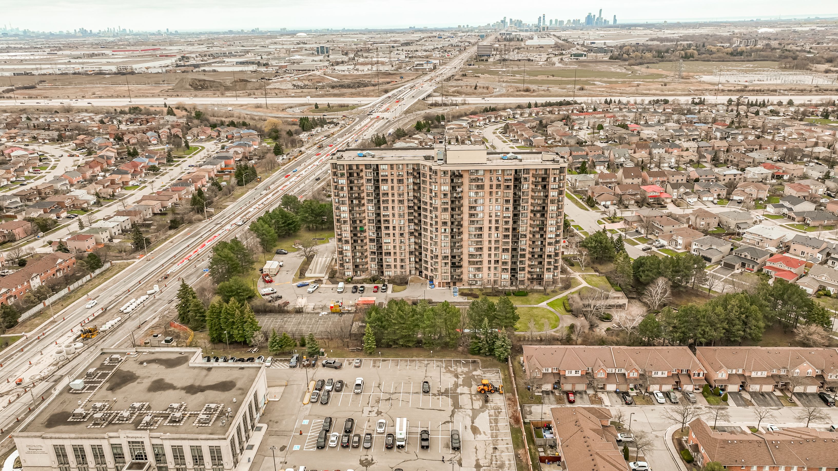 Welcome & experience the joys of luxurious living, when you own this freshly painted, bright & spacious, sun-drenched, impeccable & extremely well maintained condo apartment with a great lay out and located in the highly sought after, desirable family friendly, fletcher's creek south area of brampton, minutes from mississauga (major intersection hurontario and ray lawson). This 8th floor south east facing gorgeous 3br + solarium + 2 full bath rooms, boasts of a million $$$ spectacular panoramic view of the city of mississauga & the lake. Enjoy a carpet-free interior with elegant hardwood flooring throughout. The expansive open-concept living and dining area seamlessly connects to a bright solarium, flooded with natural light from large windows-perfect for relaxing or entertaining. The separate kitchen comes fully equipped with appliances, ample cabinetry, and a walkout to a private balcony-ideal for enjoying your morning coffee or hosting guests. The unit includes three generously sized bedrooms, including a spacious primary bedroom with a large walk-in closet and a 4-piece ensuite. Additional features include ensuite laundry for added convenience. Residents enjoy access to premium building amenities, including 24-hour gated security and concierge, outdoor pool, sauna, gym, library, squash and tennis courts, party/meeting room, scenic walking trails, beautifully landscaped grounds, and a bbq area for outdoor gatherings. All utilities, along with internet and cable tv, 2 underground parking spots, 1 locker are included-offering exceptional value and convenience. Centrally located with easy access to highways 401 & 407, future lrt, and just minutes from shopping, grocery stores, banks, schools, parks, fletchers creek trail, shoppers world, go/zum transit, restaurants, and places of worship. This freshly painted move-in-ready home is a rare opportunity and truly a valuable buyer's asset.
