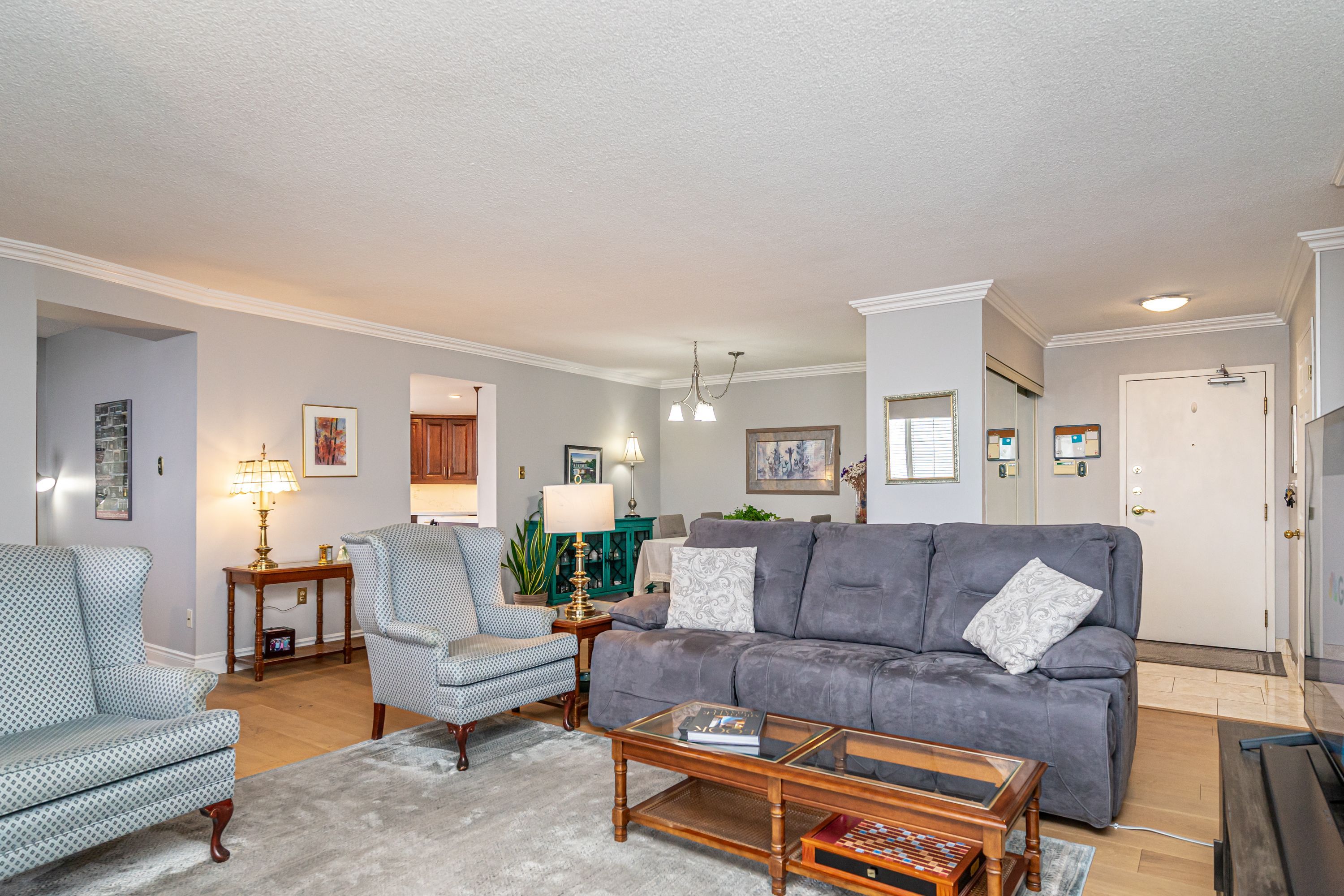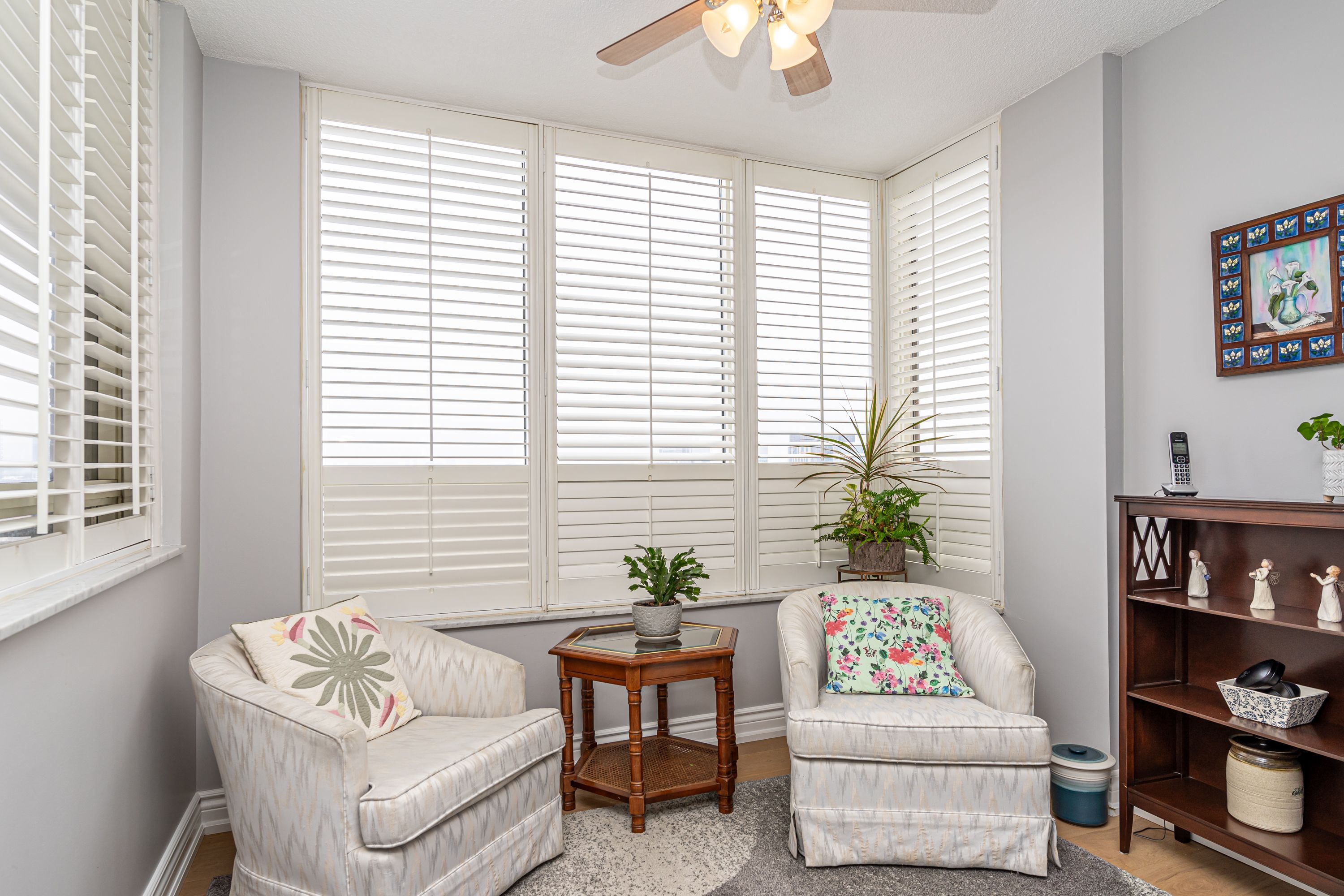 Condo living at it's finest! Exclusive, secure and well maintained residential building with many amenities & upgrades. Beautiful & bright open concept main living area. Large 1537 sq ft, 3 bed, 2 bath, solarium and walk out to private open balcony with garden & sunset views. Welcoming polished tile floor entry w/ dbl. Coat closet & lg window views. Open living & dining rm area w/ floor to ceiling balcony door & windows, california shutters, modern engineered hardwood floors & crown molding throughout. Lovely eat in kitchen w/ amazing city views, quartz counter & plenty of cupboard space. Primary bedroom with walk in closet & 3pc ensuite bath w/ lg walk in tile & glass shower. Separate main 4pc bath with tiled bathtub/shower. Sun drenched solarium overlooking the manicured & landscaped grounds with pool, racket courts, putting green, gazebo bbq picnic area, benches & walking paths. Clean & inviting indoor common areas, gym, squash court, sauna, hot tub, party room w/ kitchen, pool table & reading room. Close proximity to elevator & parking space. Walk or quick drive to shopping, dining, entertainment, schools, parks & public transit. Mostly owned units in building, only a few rentals. Many condo upgrades - 2 new heating units 2024, new quartz counter, backsplash, refrigerator, dishwasher, faucet and undercounter lighting. New hardwood floor. New counters & toilets in both baths. New washer & dryer. New upright freezer and painted throughout.