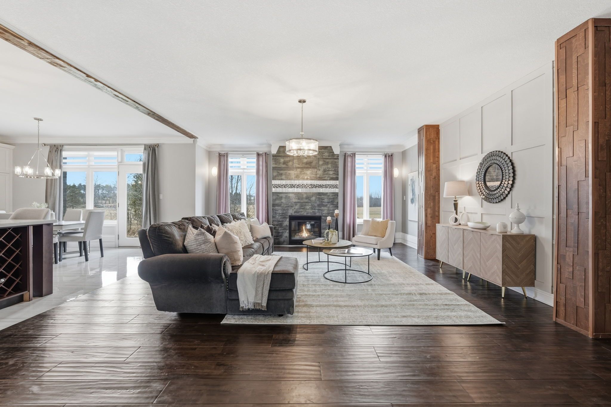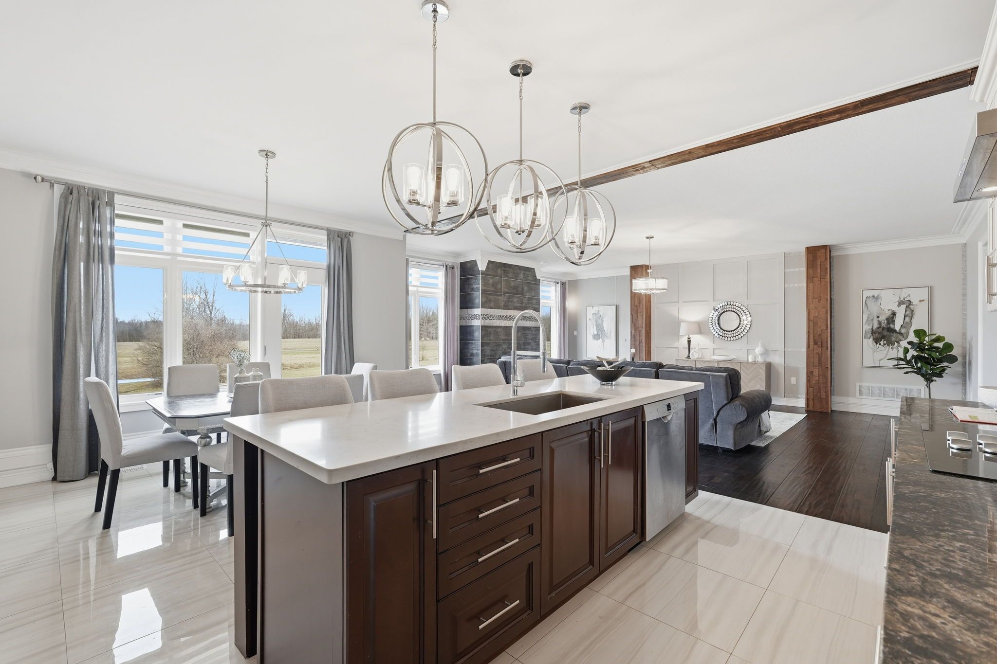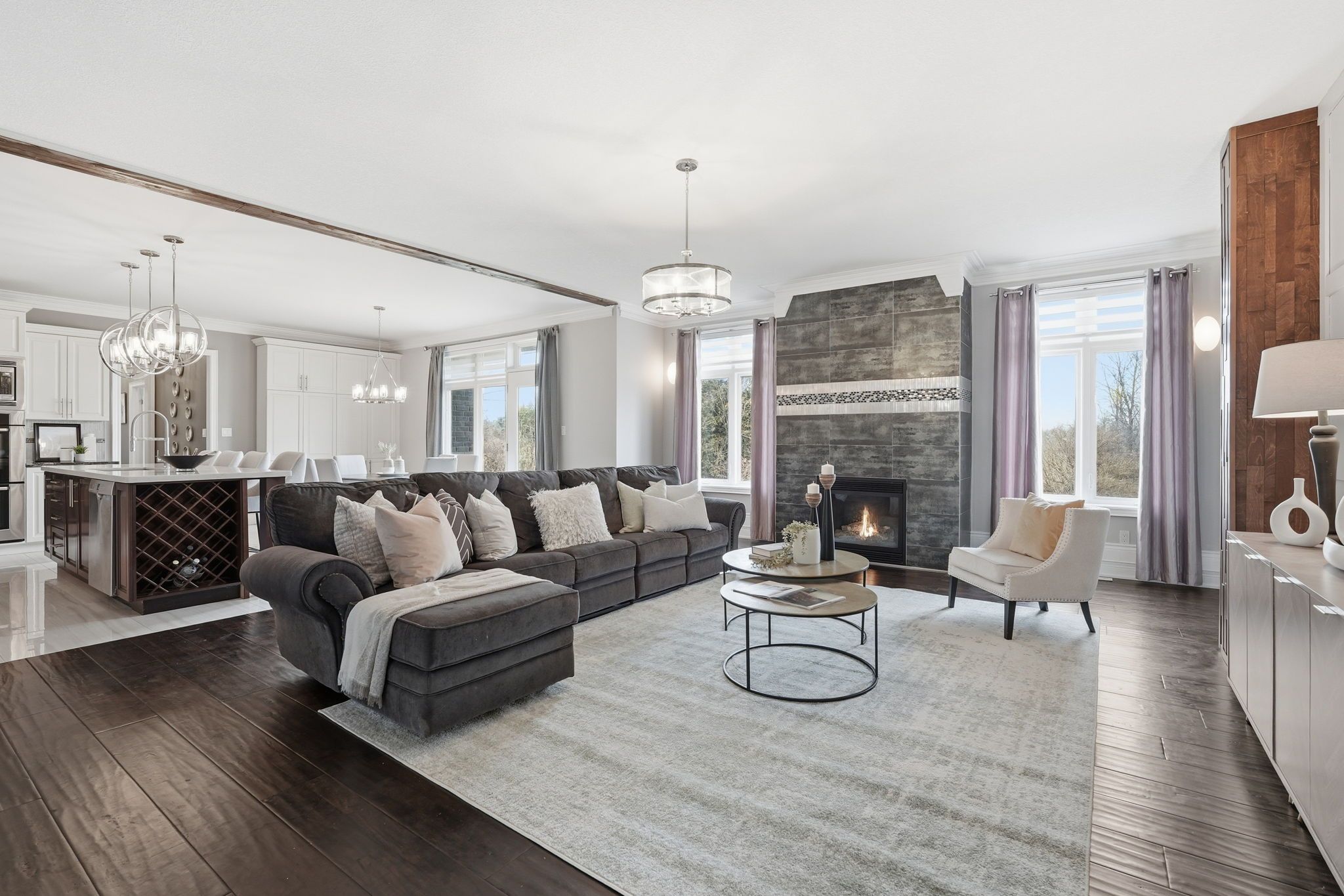 • Open-concept living with ample natural light and a propane fireplace.