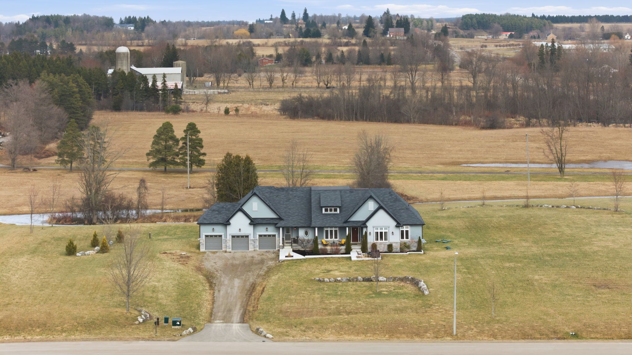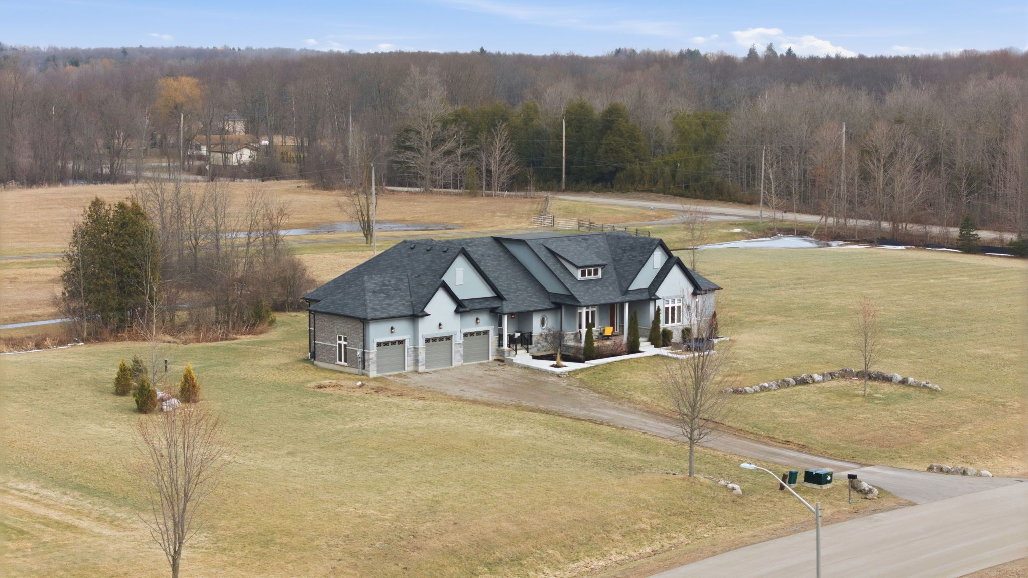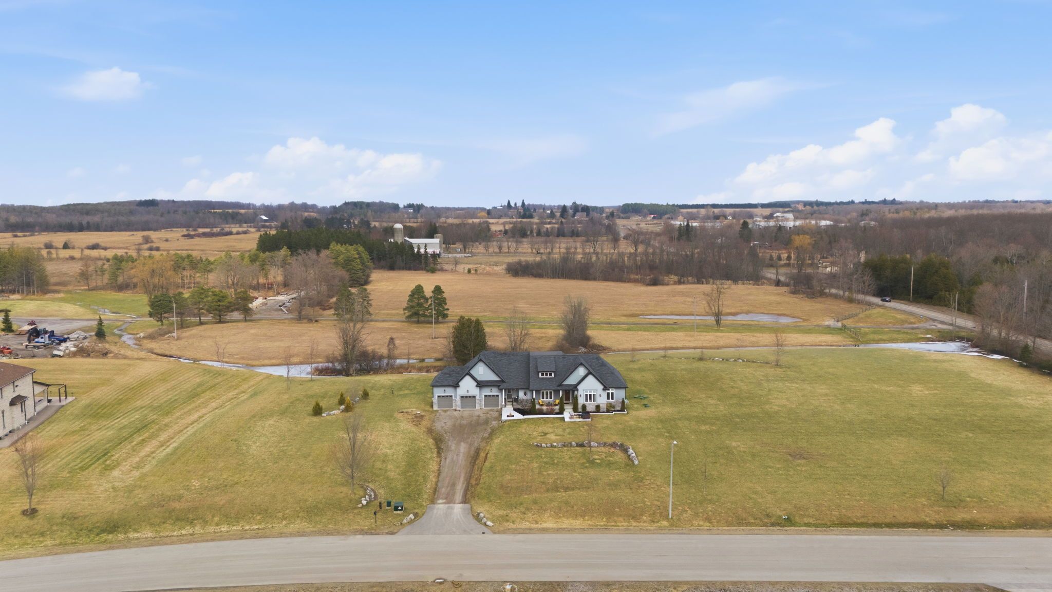 Welcome to 20 chesswood trail! A 3,000sqft masterpiece. This 4 bed/3 bath executive home has been beautifully designed top to bottom. Built on a cul-de-sac, this premium 3. 5+ acre property boasts an array of luxury finishes, prominent 3-car garage & tons of curated features including hardwood floors, wainscoting, crown moulding, granite/quartz countertops, built-in appliances & an abundance of windows for unobstructed natural lighting. The open-concept living room is adorned with a cozy propane fireplace, modern light fixtures & transitions seamlessly into the kitchen. The eat-in kitchen is complimented by granite counters, ample cupboard space, quartz-topped island with a built-in wine rack & steps out to a meticulous open landscape. Additional convenience includes a separate pantry (currently used as a office), separate laundry room w/ sink, countertop + direct garage access. Also includes an additional mudroom with a secondary entrance. You'll experience year-round comfort with the home's advanced geothermal ground-source heating/cooling system. The primary bedroom retreat features a luxury 5pc ensuite & w/in closet. Brightened by a series of oversized windows, the unfinished basement offers limitless potential to create a customized space tailored to your family's lifestyle.