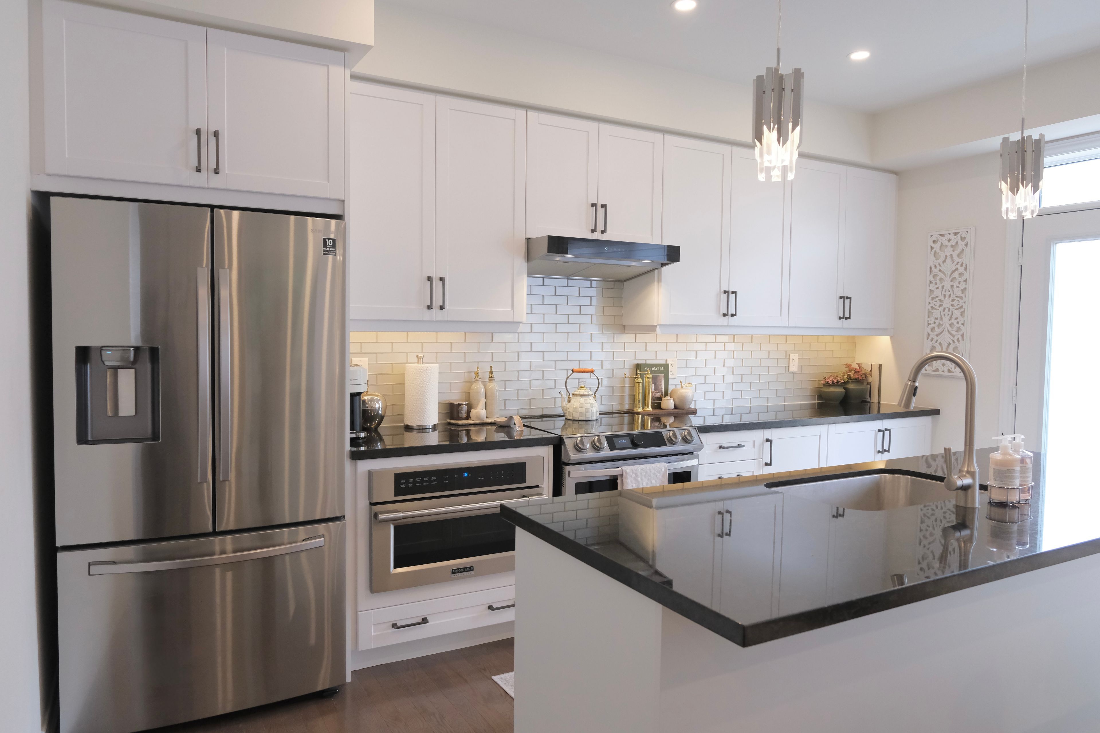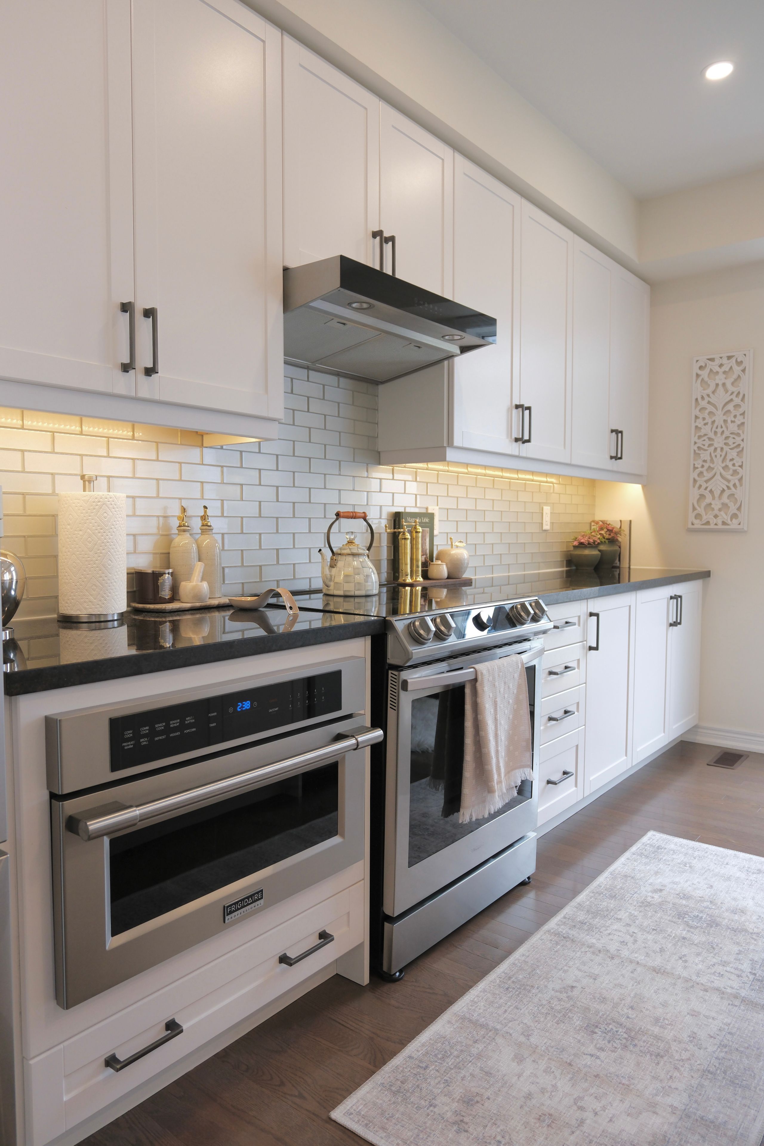• Modern kitchen with quartz countertops and stainless steel appliances.