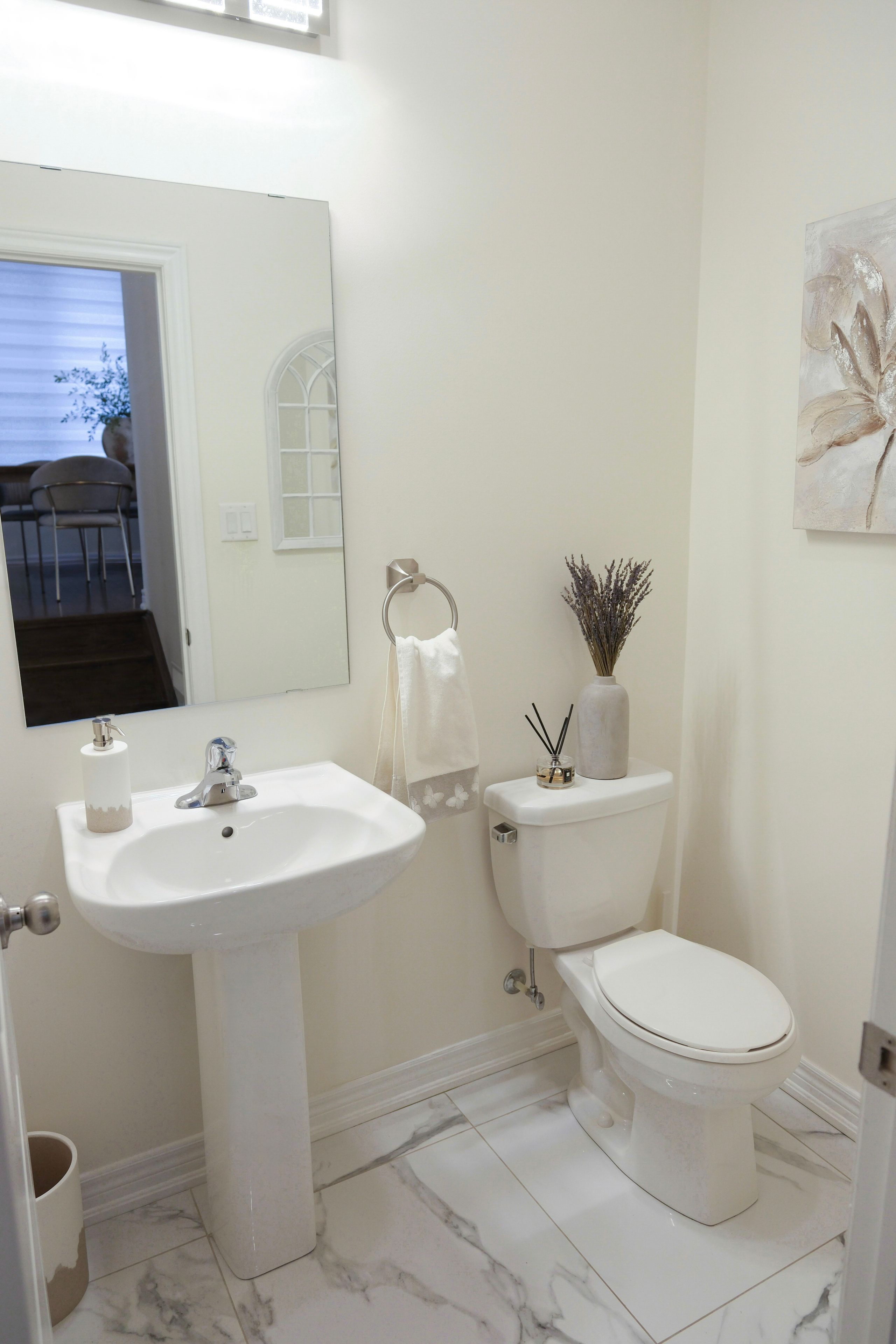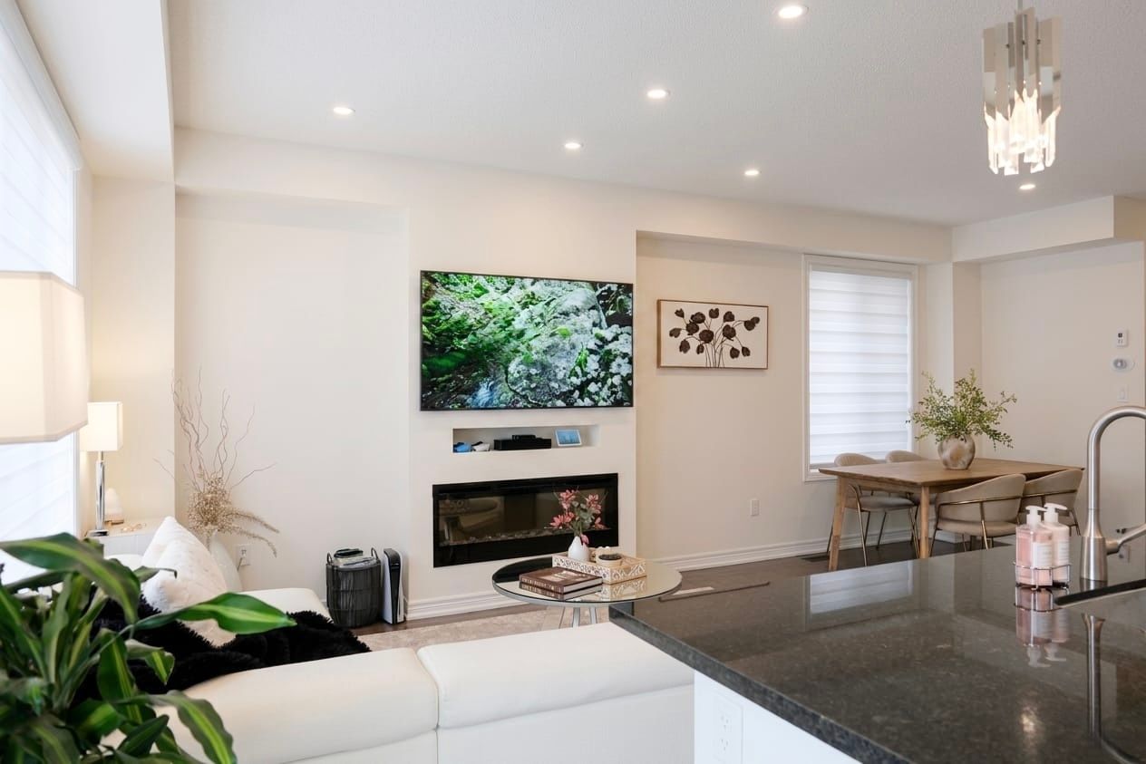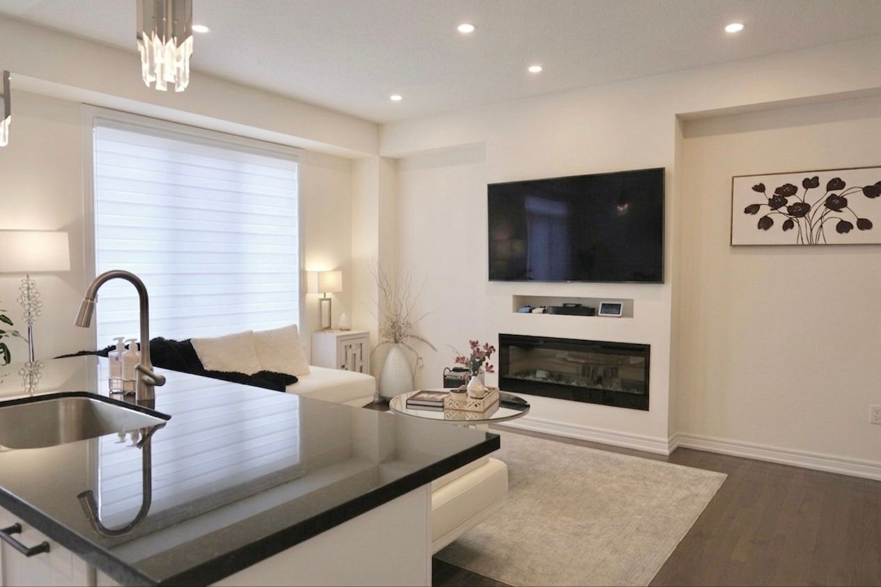 20 conarty crescent, whitby (williamsburg) stunning newer 3 bedroom, 3 bathroom semi-detached home in a highly desirable whitby community. Bright open concept main floor with spacious living and dining areas, family room, and modern kitchen featuring quartz countertops, stainless steel appliances, soft close cabinetry, and a large island. Pot lights and 9 foot ceilings on both floors enhance the modern feel, along with a smart home system. Upstairs offers 3 spacious bedrooms, including a primary suite with a large walk in closet and upgraded ensuite, plus convenient upper level laundry. Additional highlights include central air conditioning, forced air heating, private driveway with garage, fenced backyard, and a side basement entrance for added flexibility. Close to schools, parks, shopping,transit, and highways 401, 407, and 412, and minutes from thermea spa village whitby.