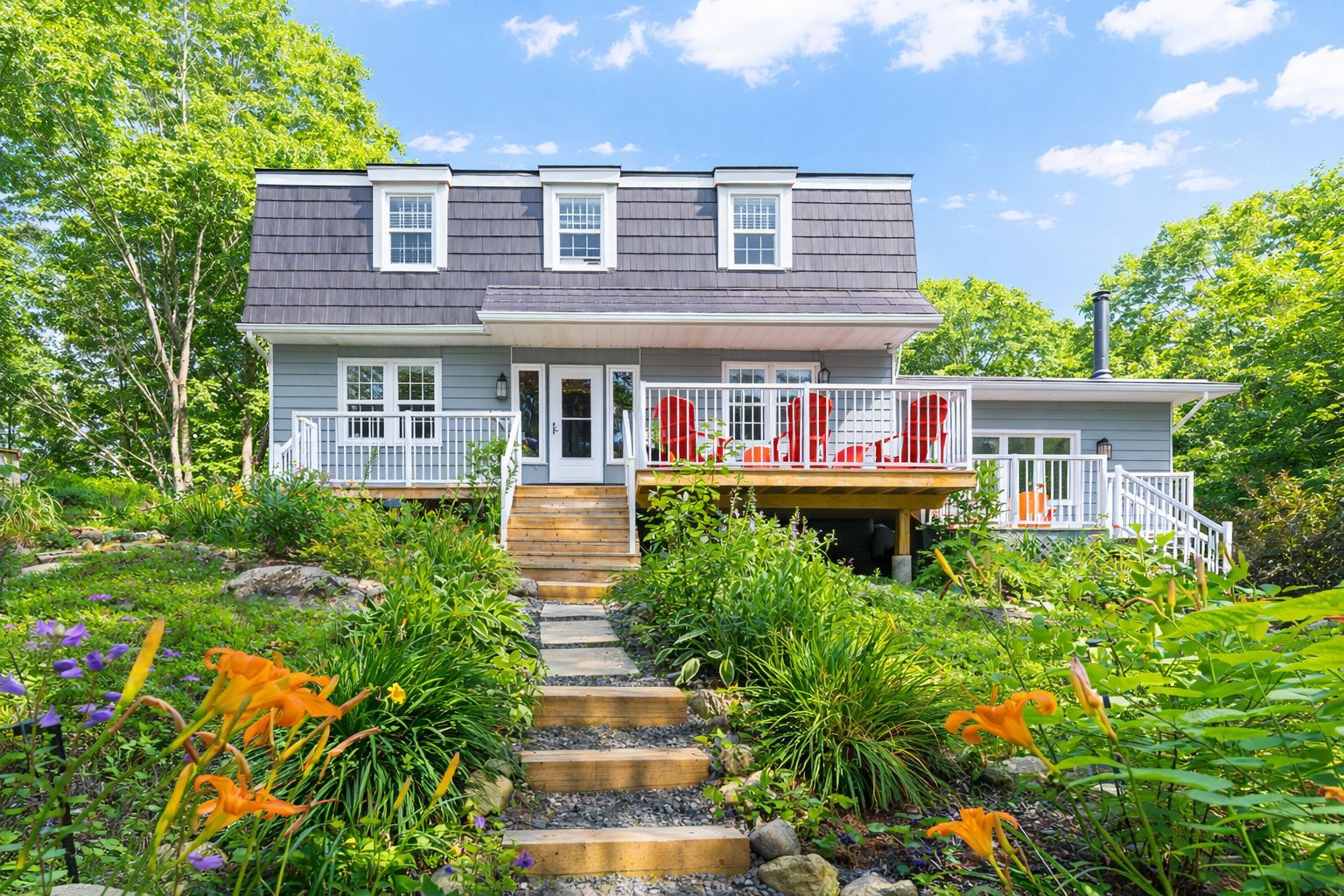 • Private, landscaped yard with a deck and gazebo for relaxation.