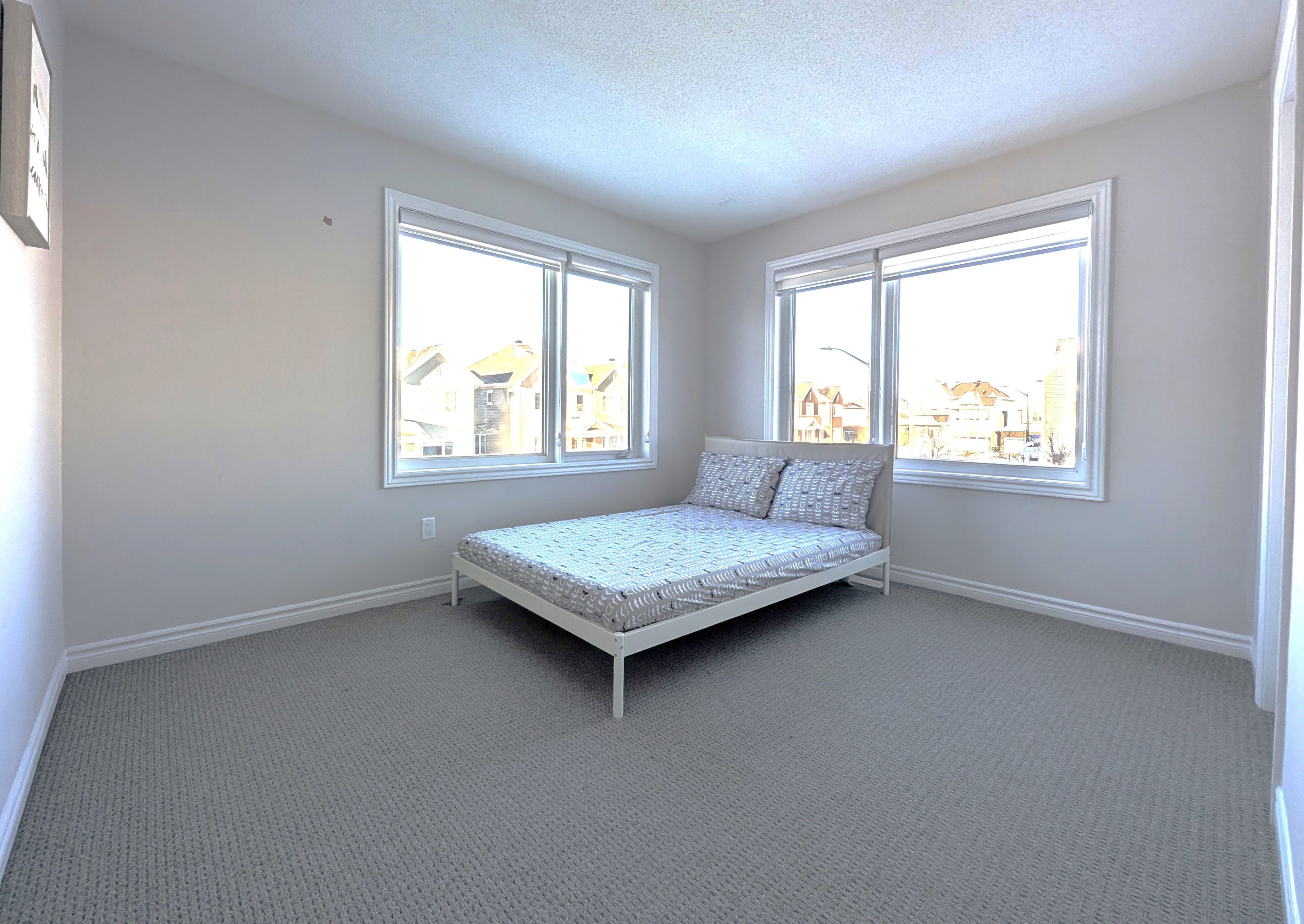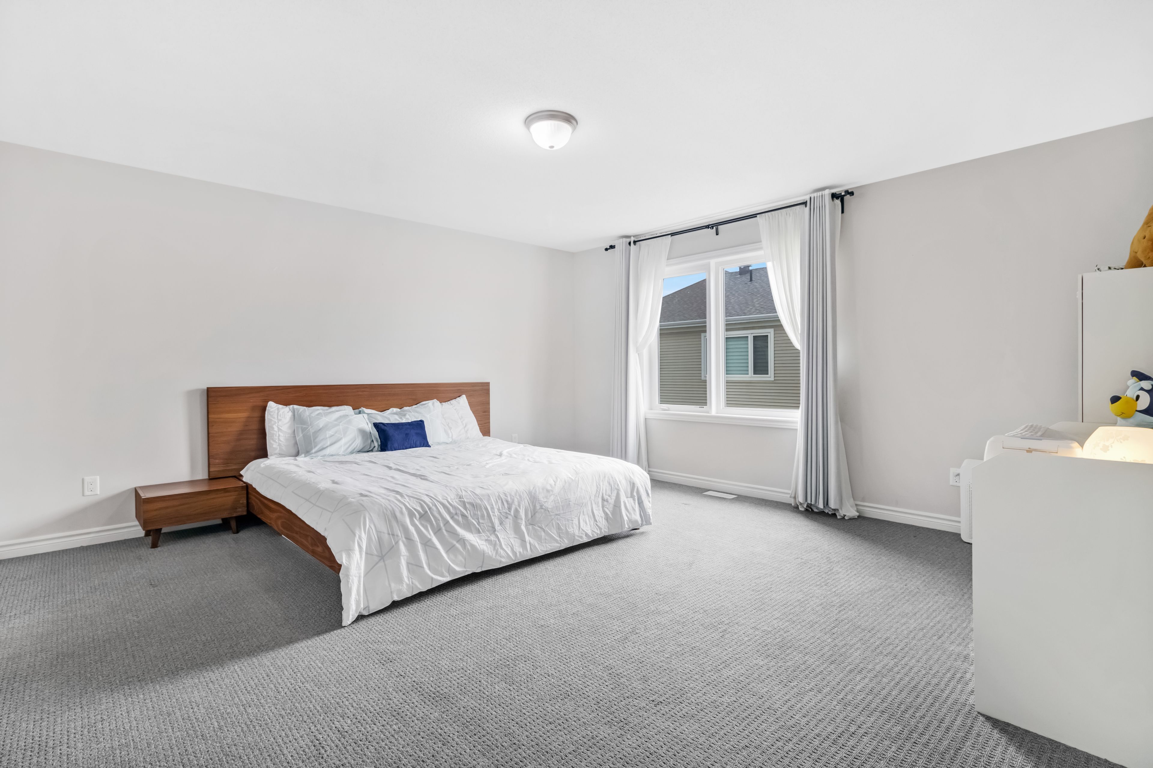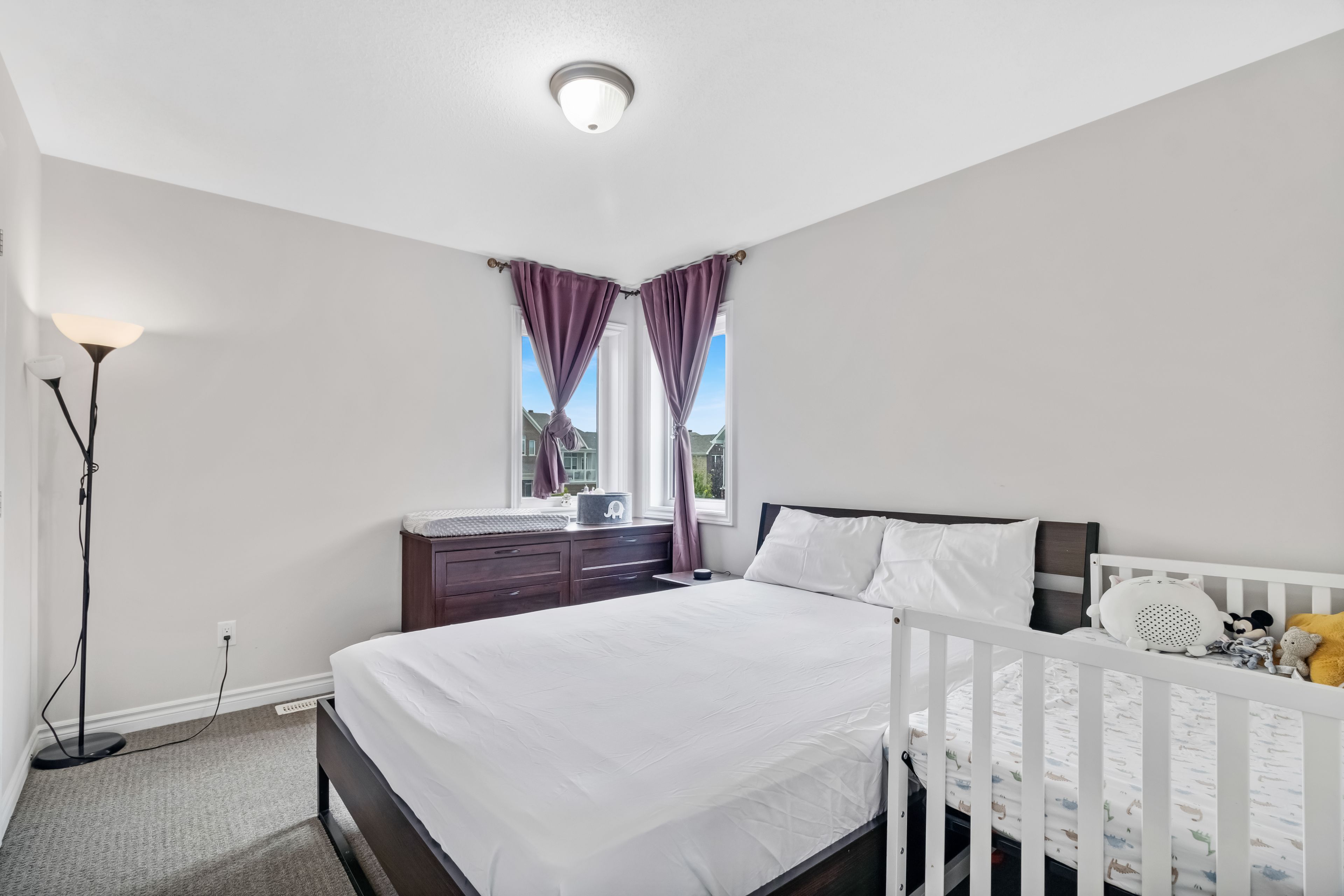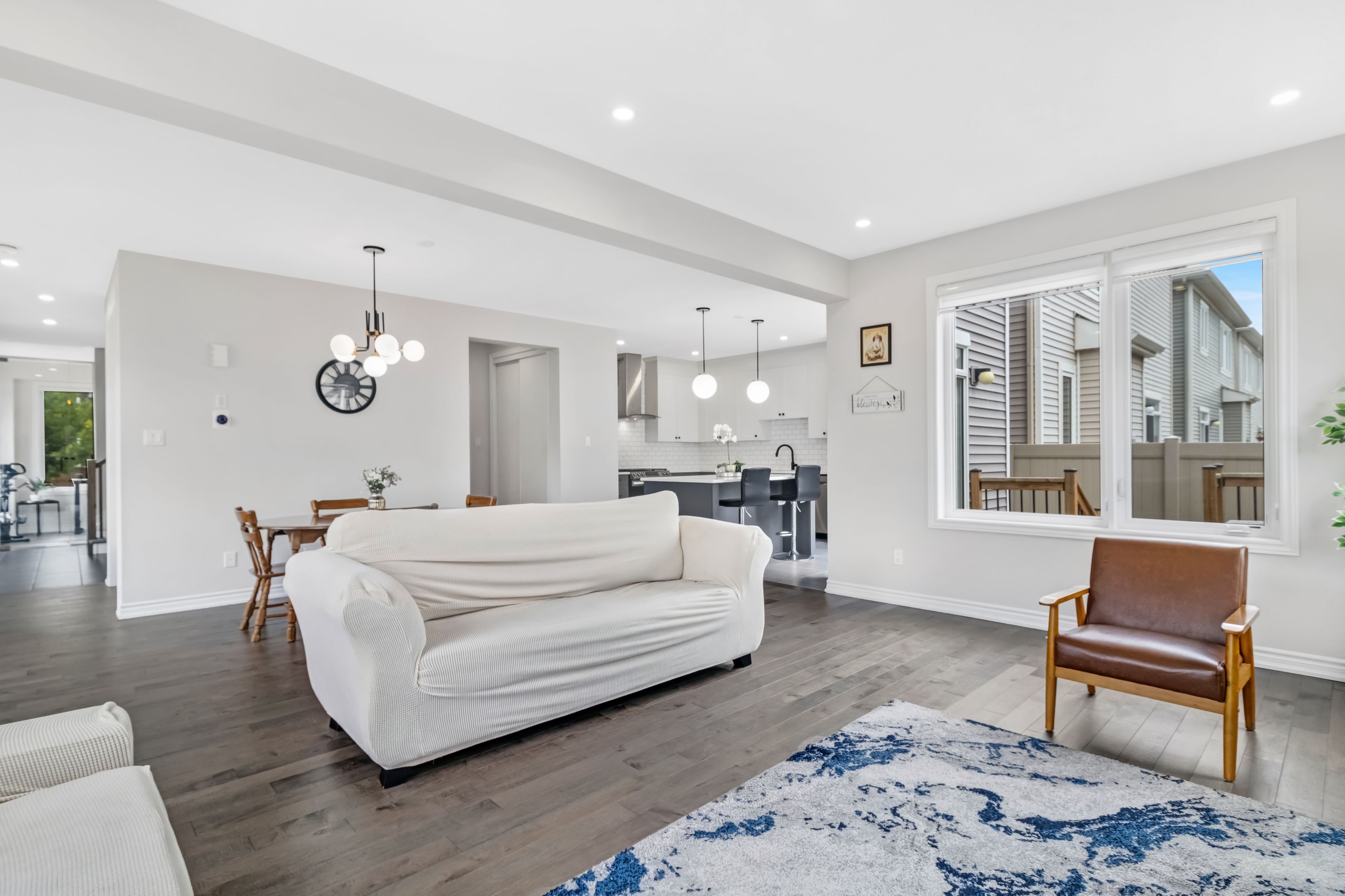 Elegant 4 beds detached home on a premium corner lot in the highly sought-after conservancy community. Built in 2020, this beautiful residence showcases extensive builder and custom upgrades designed for comfort and style. The foyer with custom seating and accent wall leads to an open-concept living and dining area with upgraded hardwood flooring, pot lights, and upgraded napoleon electric fireplace for a cozy experience. The kitchen features an upgraded chef's center layout with upgraded designer cabinets, upgraded quartz countertop, upgraded floor tiles, a matt black gooseneck faucet with double undermount sink, and upgraded cyclone stainless steel chimney hood. The space is completed with high-end stainless steel appliances for both style and function. From here, step out to the custom-built deck and fully fenced backyard, ideal for gatherings. The main level also includes a powder room with updated accent and upgraded home office/den with custom glass door entry, accent wall, large windows and a modern light fixture, offering an elegant space for work or quiet focus. Upstairs, the bright spacious primary retreat offers an upgraded spa ensuite with quartz countertop and dual rectangular undermount sinks. Three additional generously sized bedrooms and a full bathroom complete the upper level. The lower level includes a recreation room with upgraded carpeting and a rough-in for additional bathroom. Additional builder upgrades include: carpeting on the upper level and basement; blinds in the den, one bedroom and living room; a custom entryway bench; pot lights and light fixtures in the kitchen and dining area; elongated toilets in all bathrooms. Over and above the builder's upgrades, the current owner has added fencing (2022), eavestroughing (2023), converted the upstairs loft into a 4th bedroom (2025), and installed a 240v outlet in the garage for ev charging. This move-in-ready home offers modern upgrades and abundant natural light in a desirable neighbourhood.