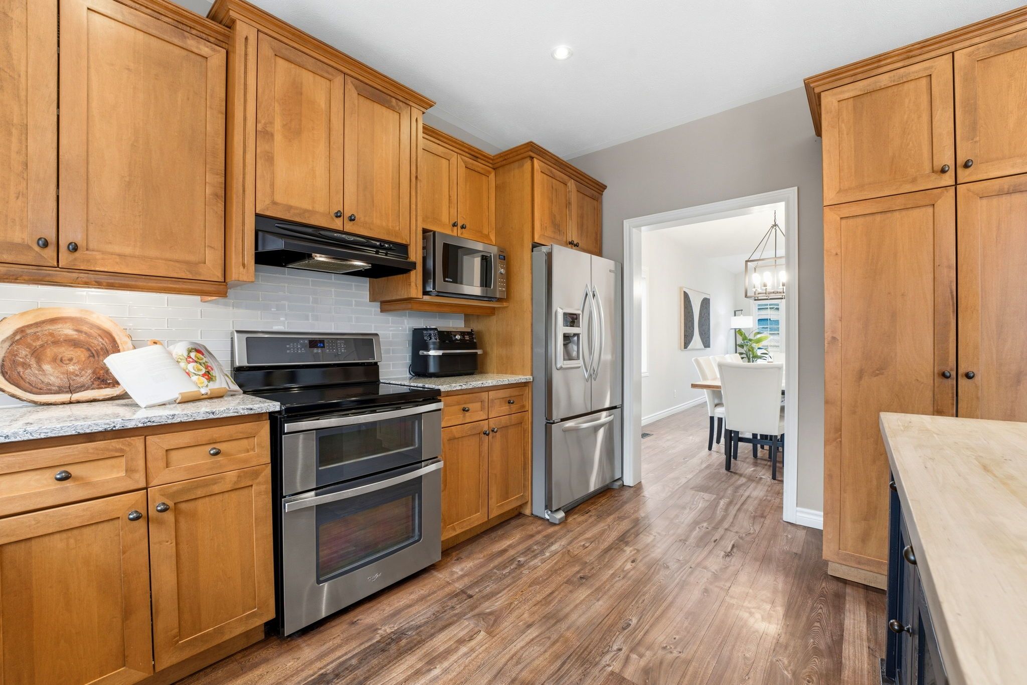 Welcome to this exquisite north galt home backing onto beautiful greenspace and located on a quiet, sought-after crescent. This spacious 5 bedroom, 4 bathroom home offers over 2,700 sq ft above grade with a fully finished walkout basement, perfect for families and entertaining. The elegant foyer features wainscoting and a stunning hardwood staircase. The bright open concept main floor offers a vaulted ceiling, skylights, large windows, and a gas fireplace, filling the home with natural light. The impressive kitchen features maple cabinetry, quartz countertops, stainless steel appliances, glass backsplash, under-mount sink, and a large island, perfect for hosting and everyday living. Upstairs you will find a large primary bedroom overlooking greenspace with a walk-in closet and a beautiful ensuite featuring double vanity, granite counters, soaker tub and glass shower. Two additional spacious bedrooms and a 4-piece bath complete the upper level. The finished walkout basement features high ceilings, two additional bedrooms, a large rec room with fireplace, a full bathroom, and access to a stamped concrete patio and private backyard. Located close to schools, parks, walking trails, shopping and public transit, this is the perfect executive family home in a fantastic neighbourhood.