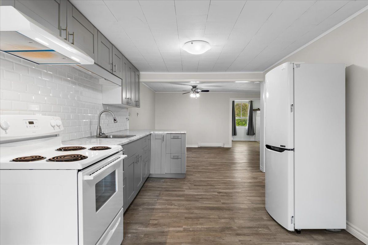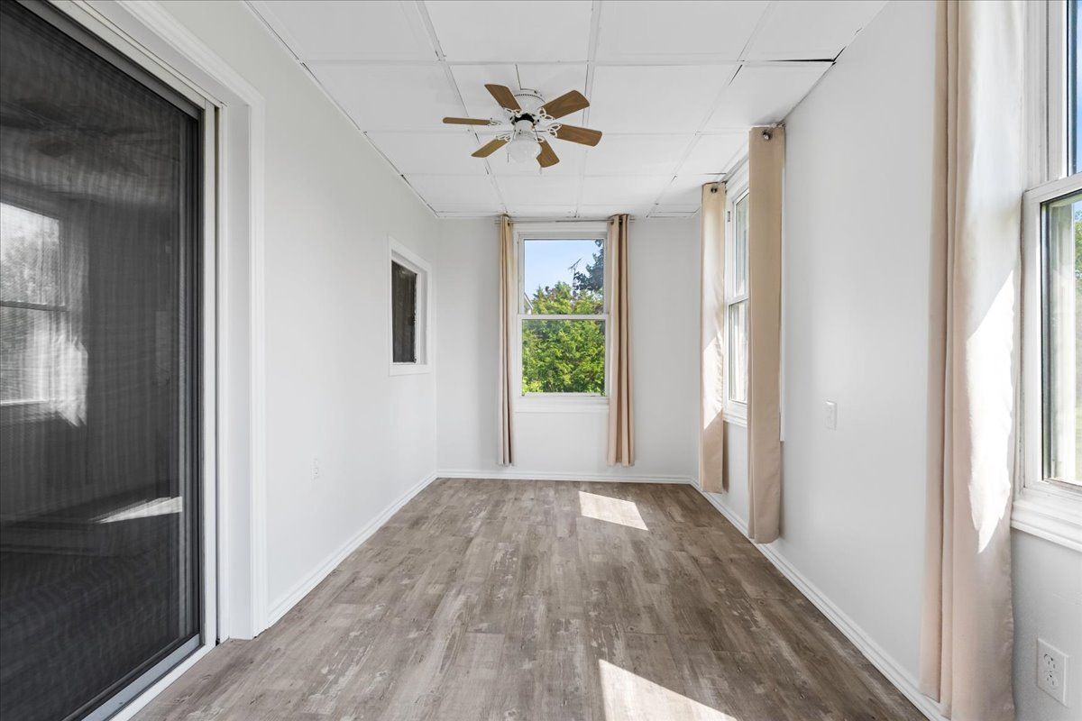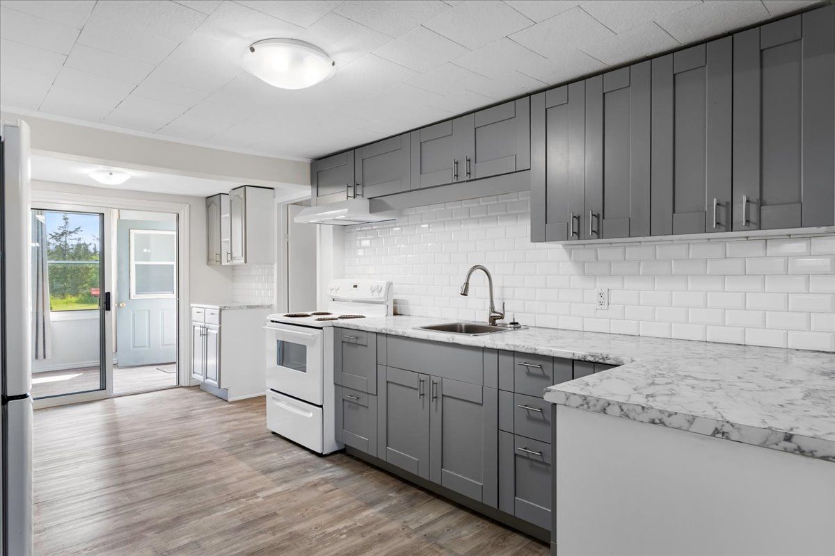 • Updated kitchen with a walkout to a sunroom and backyard views.