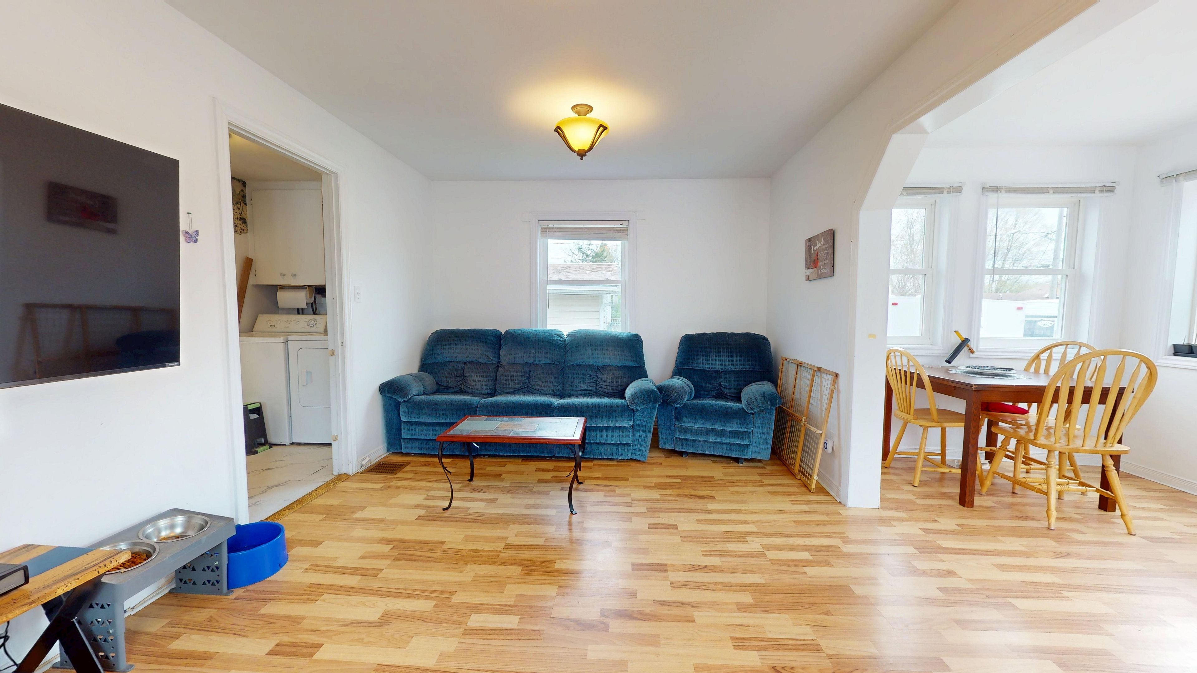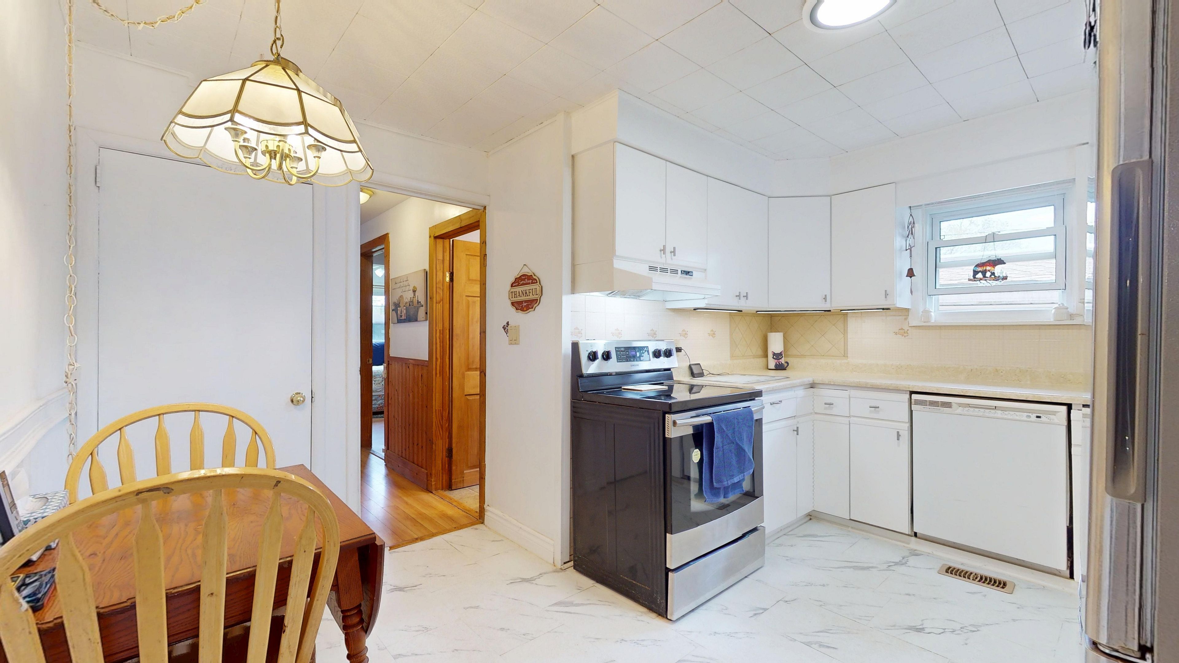 • Bright living room and functional eat-in kitchen with ample workspace.