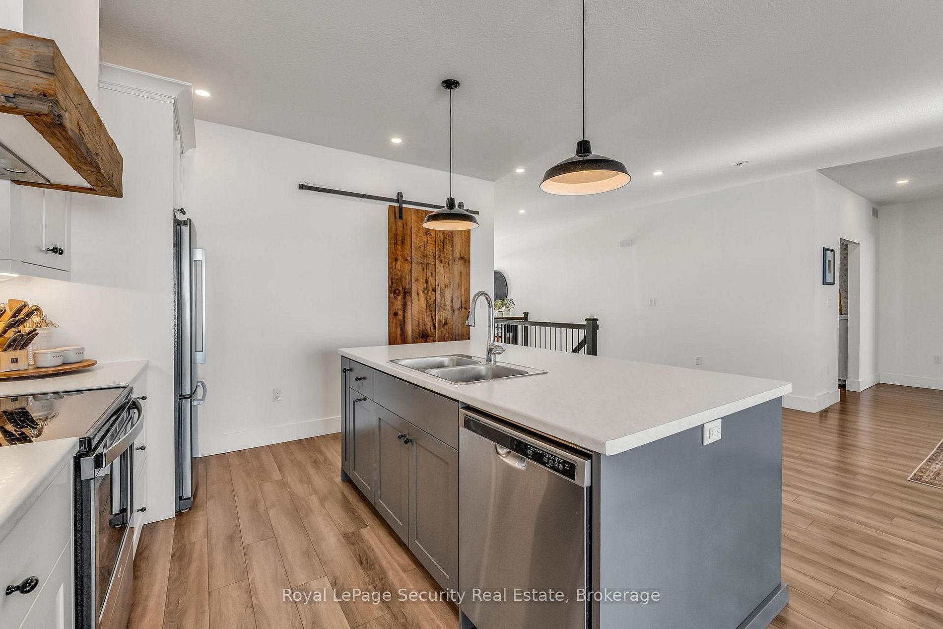 A must see. Welcome to this beautifully appointed detached bungalow, gracefully situated inthe sought-after southridge community, just steps from parks and schools. This 2+2 bedroomresidence showcases a bright, open-concept main level with 9-foot ceilings and an effortlessflow between the living, dining, and kitchen spaces-perfectly suited for both refinedentertaining and everyday comfort. The kitchen is thoughtfully designed with stainless steelappliances, a spacious centre island, and abundant pantry storage. The primary bedroom offers awalk-in closet and a private 3-piece ensuite retreat. Main-floor laundry with direct access tothe double-car garage adds everyday convenience. The finished lower level extends the livingspace with a generous family room and two additional bedrooms, ideal for guests or growingfamilies. Outdoors, enjoy a covered deck and an elegantly designed patio featuring a customconcrete gas fireplace-an inviting setting for quiet evenings or stylish gatherings. Backingonto open fields, this exceptional home offers rare, uninterrupted views and a serene sense ofprivacy. A truly refined bungalow in a welcoming, family-friendly neighborhood-an offering notto be missed.