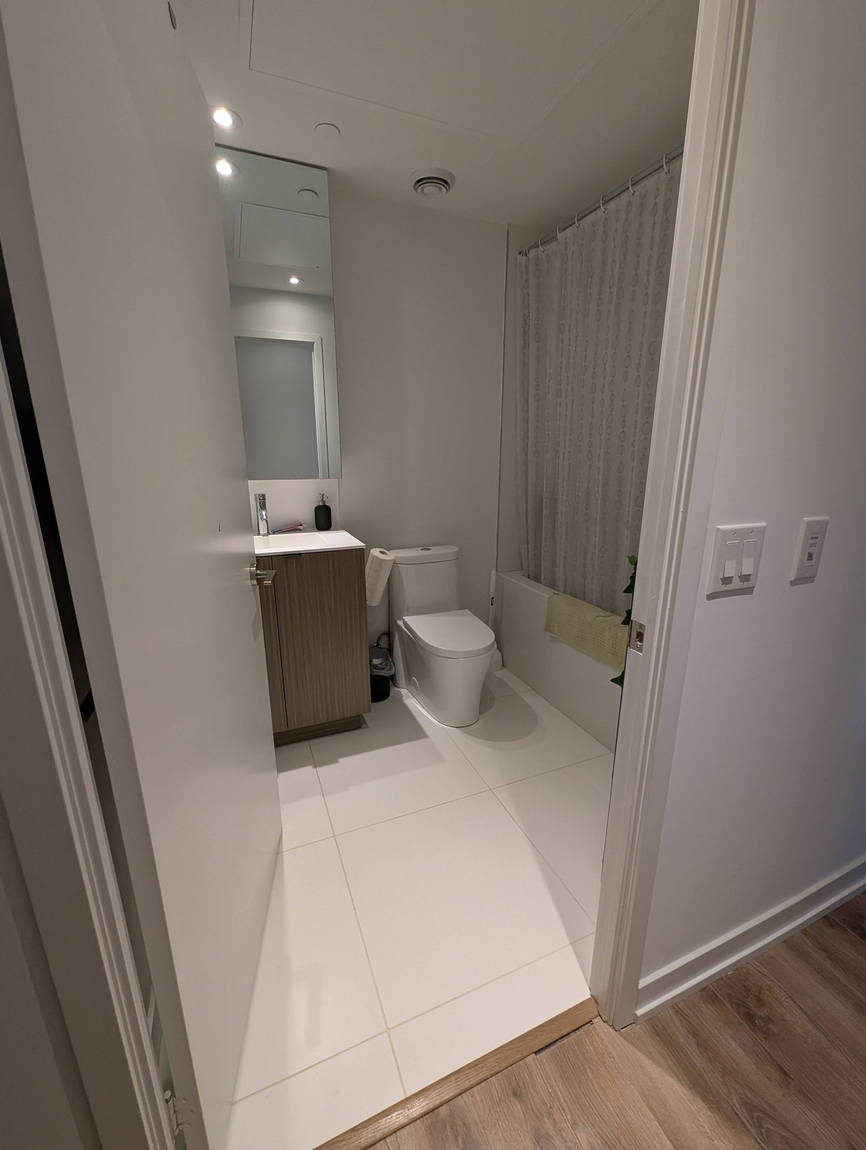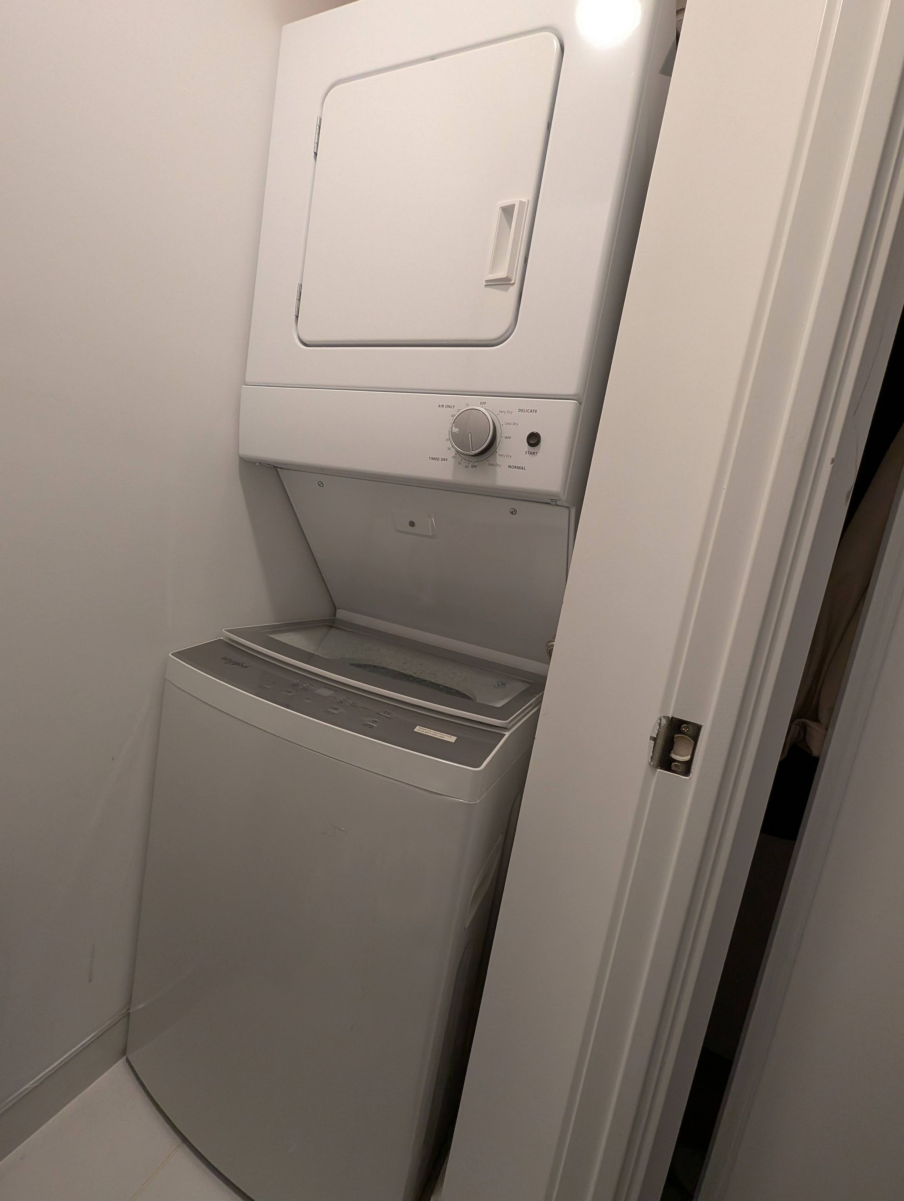 Premium junior one-bedroom condo available for lease at panda condos in downtown toronto. This modern condo features a sleek kitchen with integrated appliances, light wood flooring, and a private bedroom area. The unit includes a large in-suite washer and dryer, as well as a balcony offering exceptional views of the city. Residents have access to a variety of building amenities, including a fitness centre, rooftop terrace, party room, and 24-hour concierge service. The building is centrally located steps from the eaton centre, ttc subway stations, and numerous dining and grocery options. It is also within walking distance of toronto metropolitan university and in close proximity to the university of toronto.