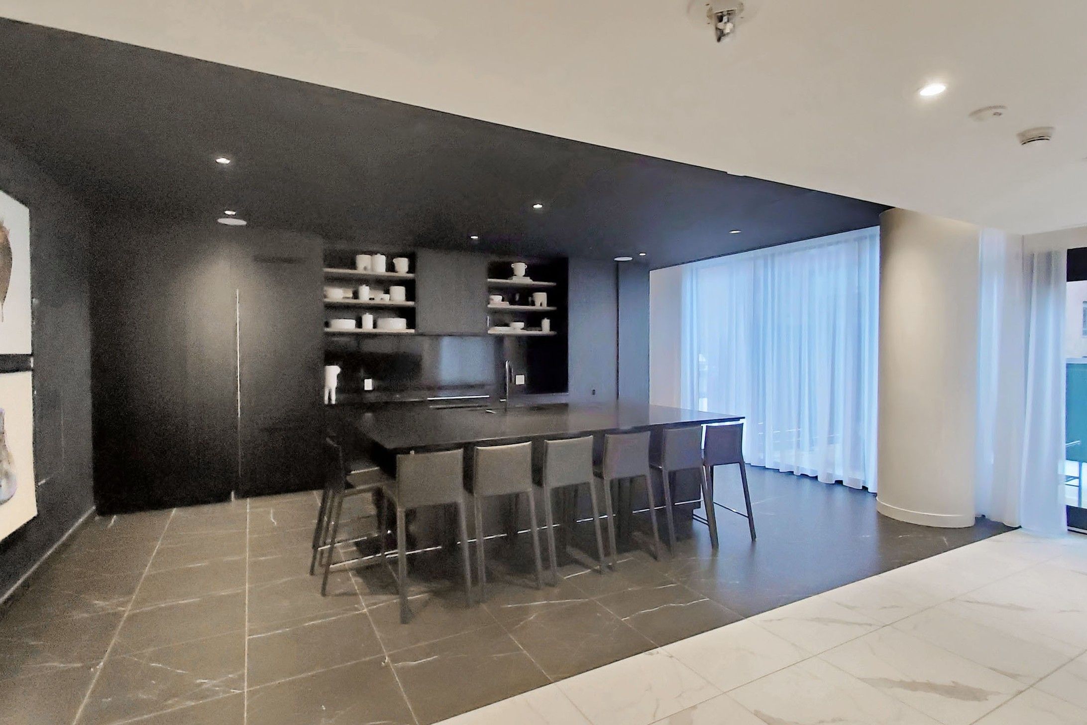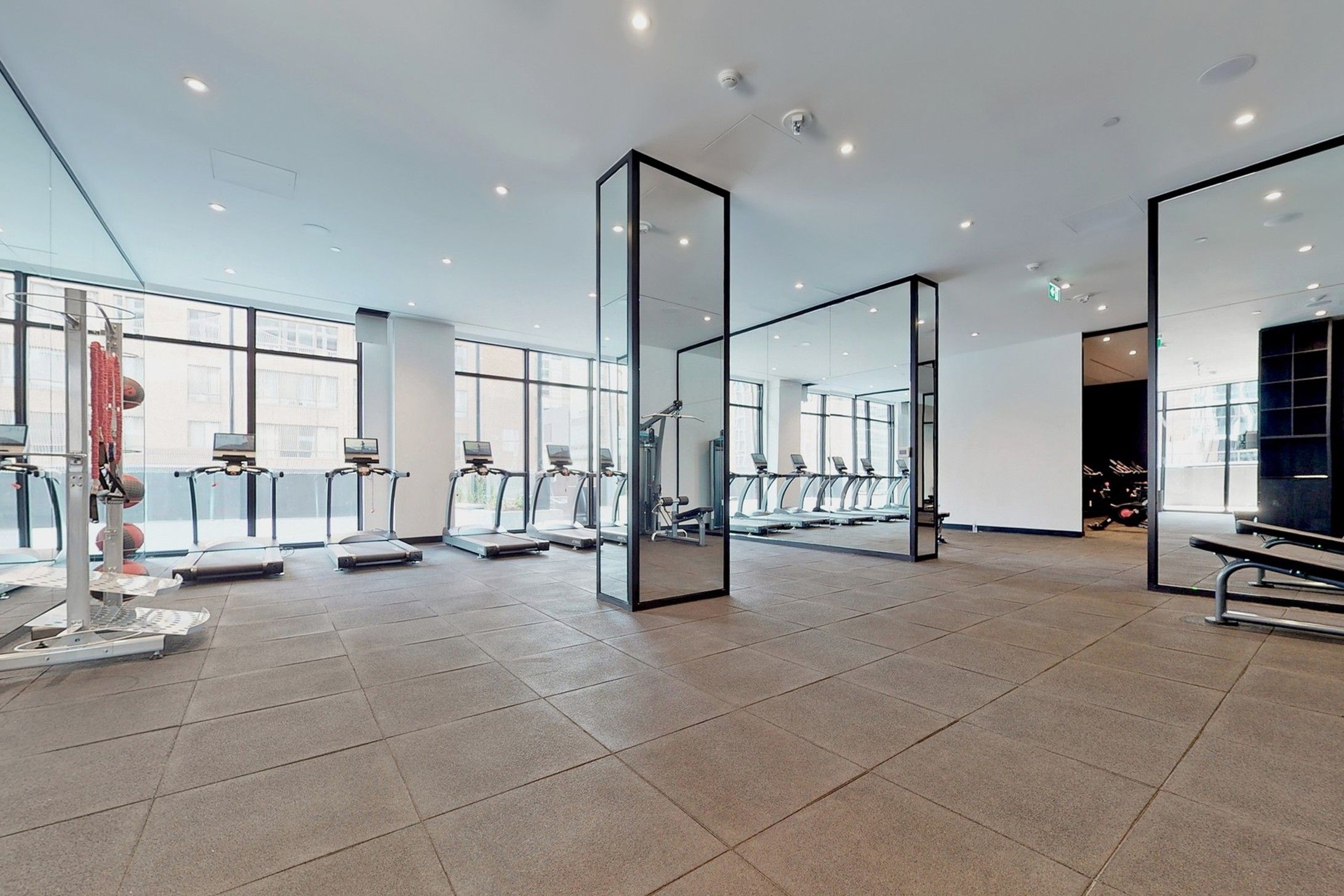 • Floor-to-ceiling windows provide great city views and natural light.