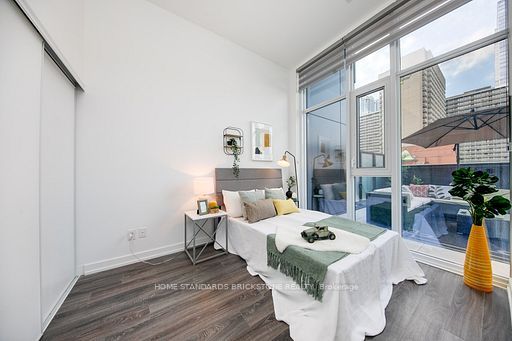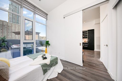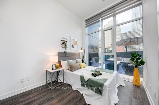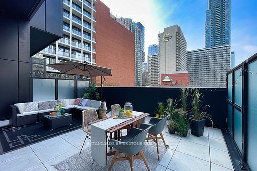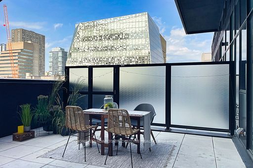 Luxurious 1 bedroom + study with 1 bath, this soft loft style unit with 11-ft ceiling features 528 sf interior paired with an additional 400 sf of private terrace. Open concept, functional layout w/ no wasted space and floor-to-ceiling windows all around provide an abundance of natural light. The oversized terrace, equipped with bbq gas connection is perfect for summer evenings; enjoy your own private oasis with your guests right in the heart of downtown toronto, surrounded by city lights at night. Walking distance to ttc subway, yonge/dundas square, eaton center, tmu, u of t and major hospitals. 100 walk & transit score (not furnished - pictures taken previously)