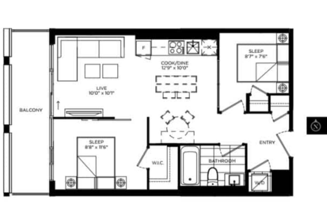• Bright, floor-to-ceiling windows and spacious balcony for plenty of natural light.