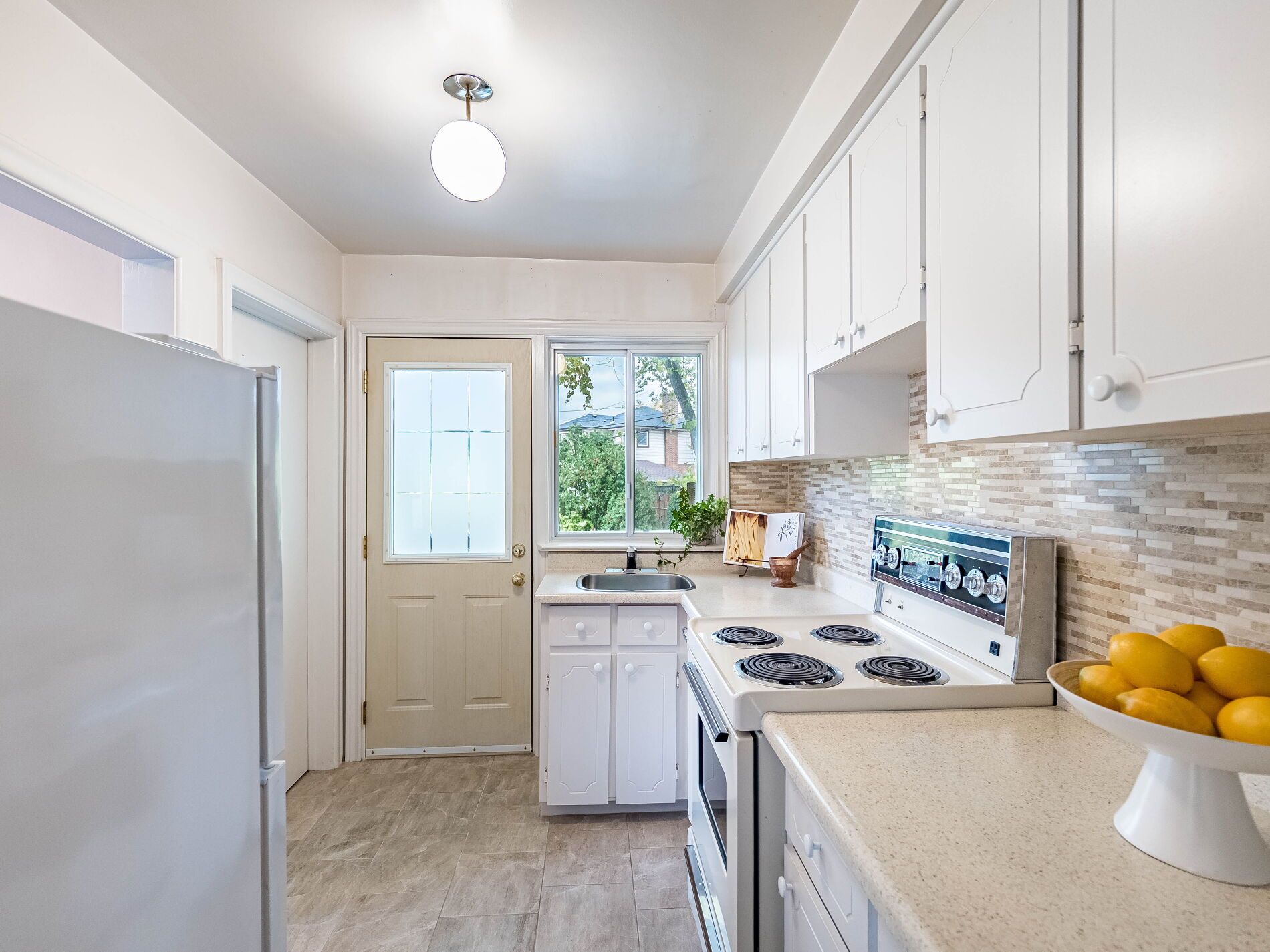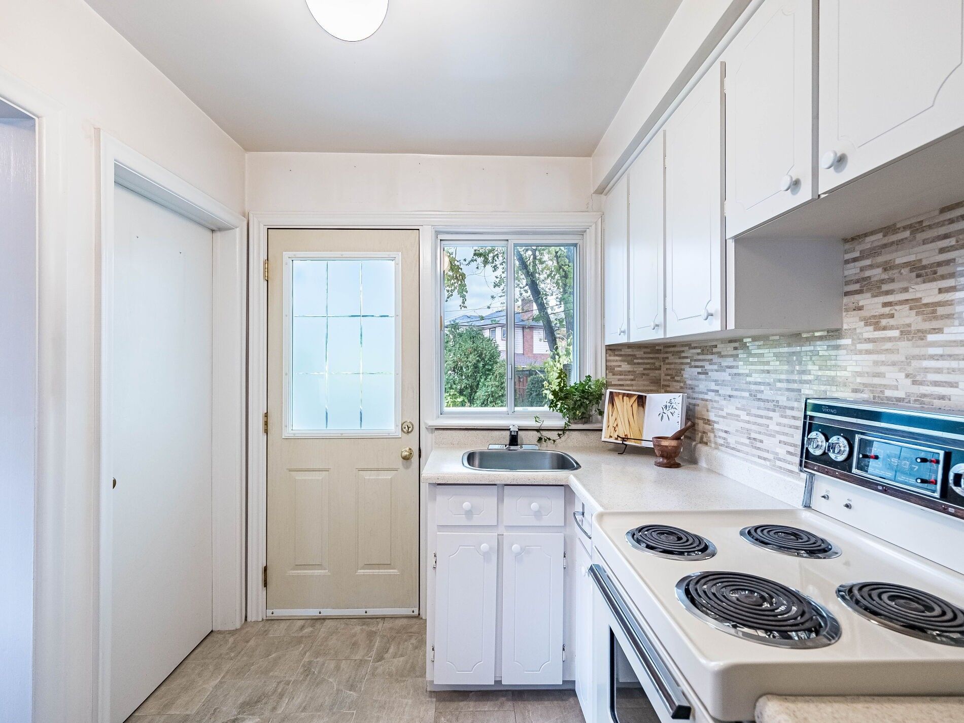 • Bright kitchen with newer backsplash and access to a two-tier deck.