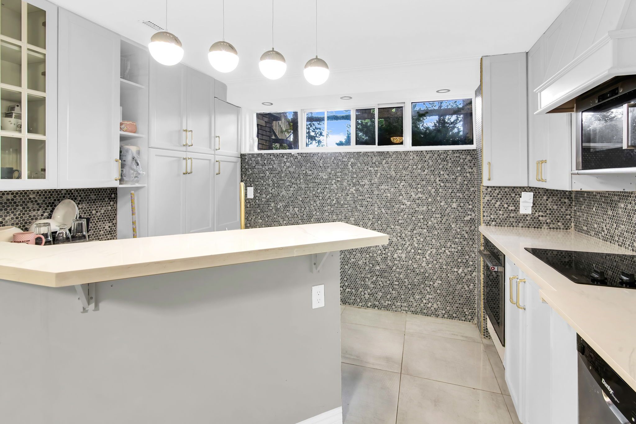 • Spacious lower-level apartment with three large bedrooms and versatile fourth room.