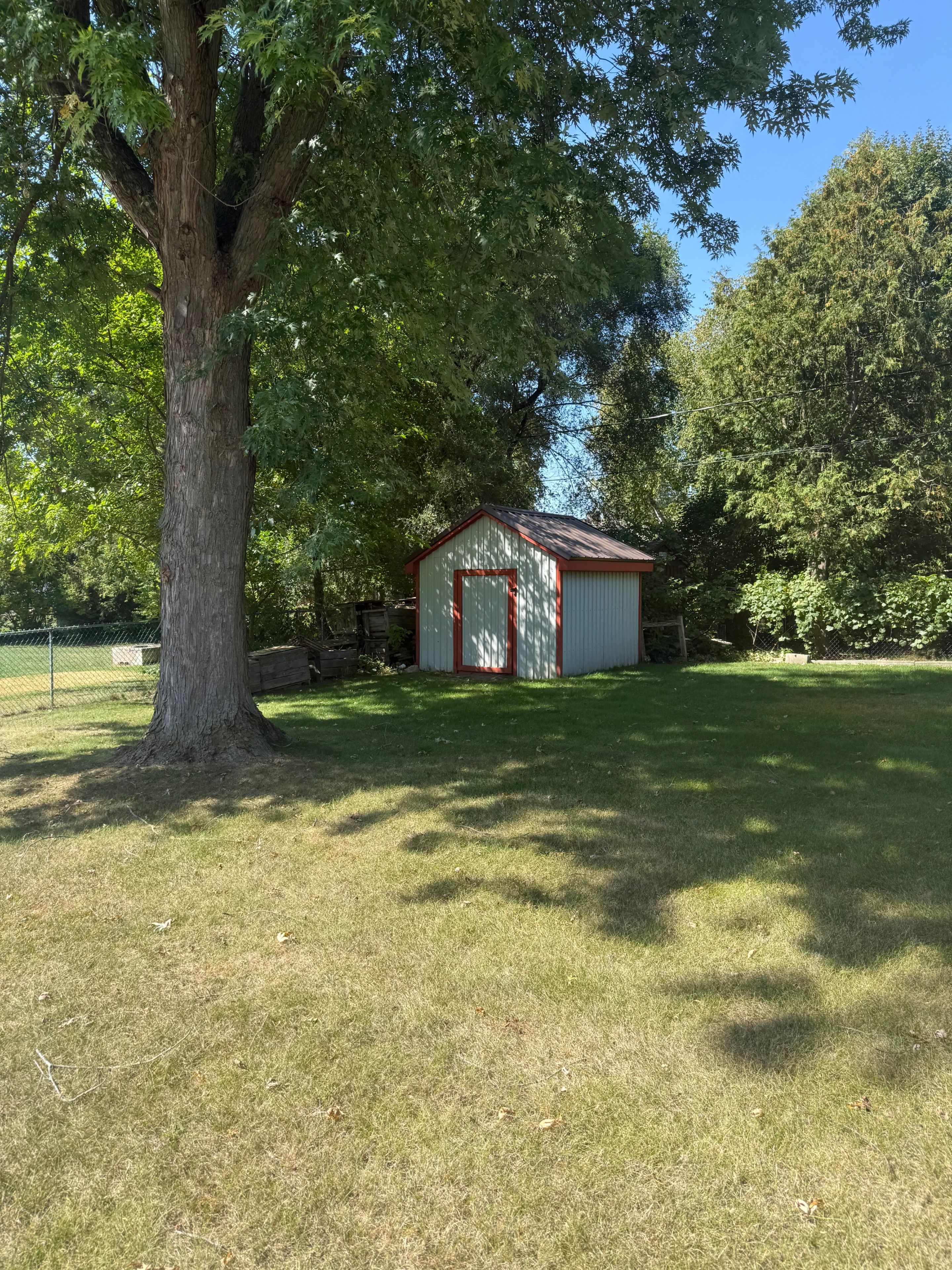 • Spacious backyard with a cement patio, great for gardens and play.