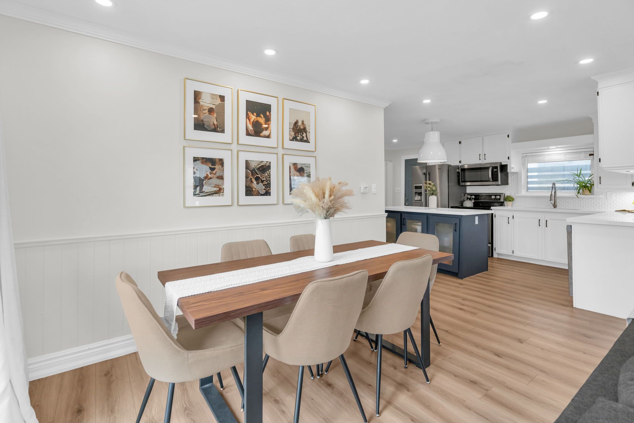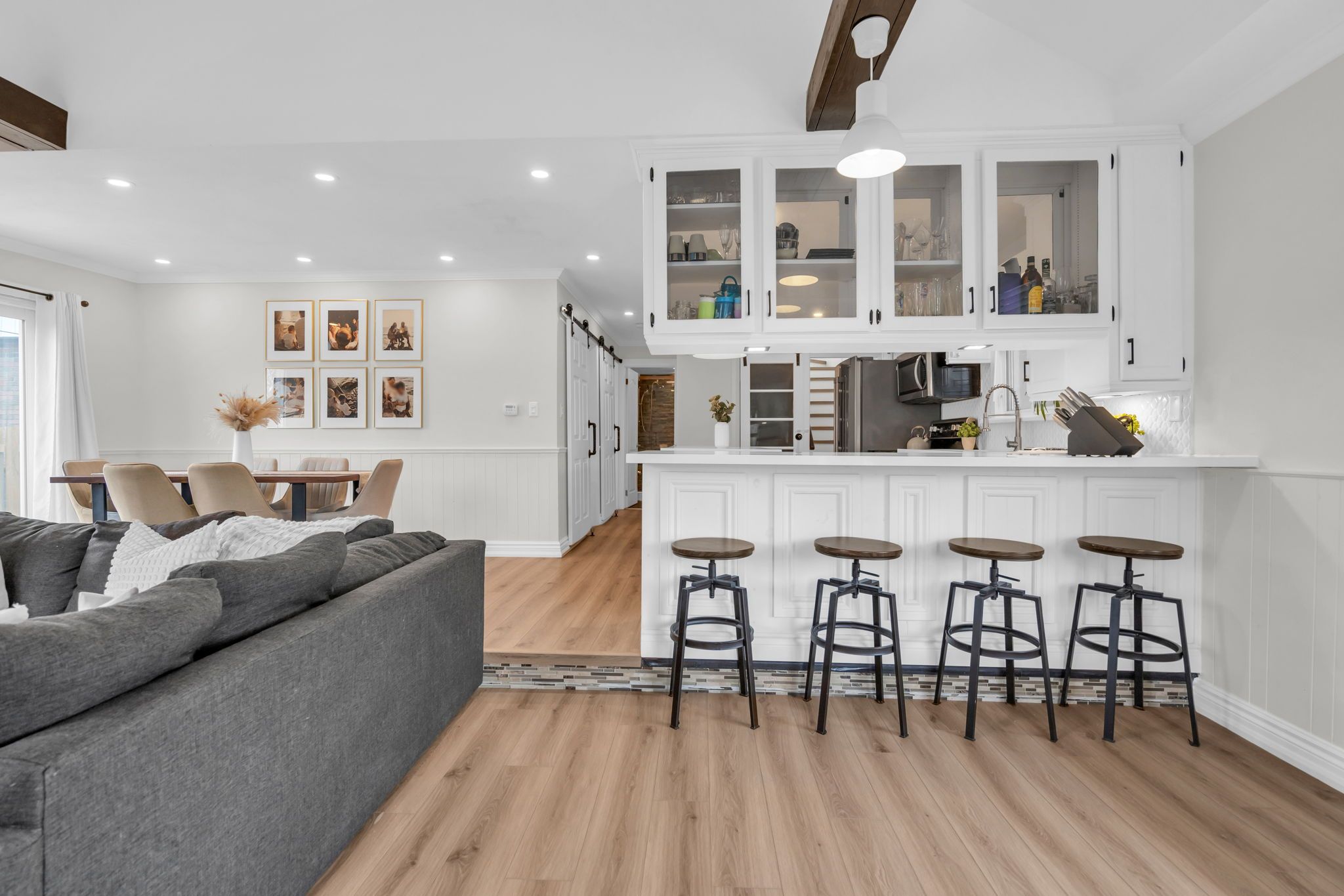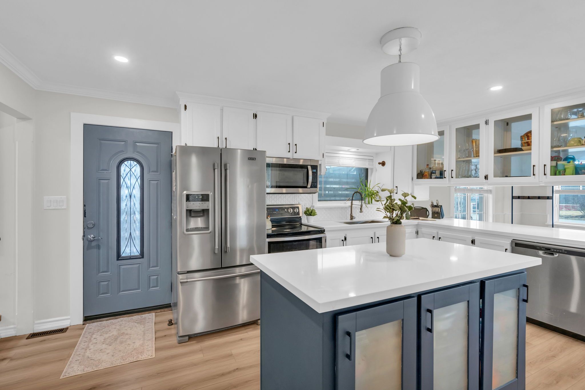 • Bright updated kitchen with quartz countertops and new flooring.