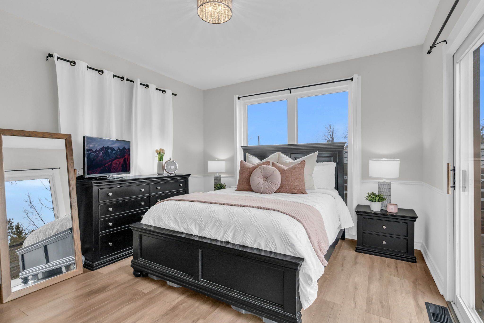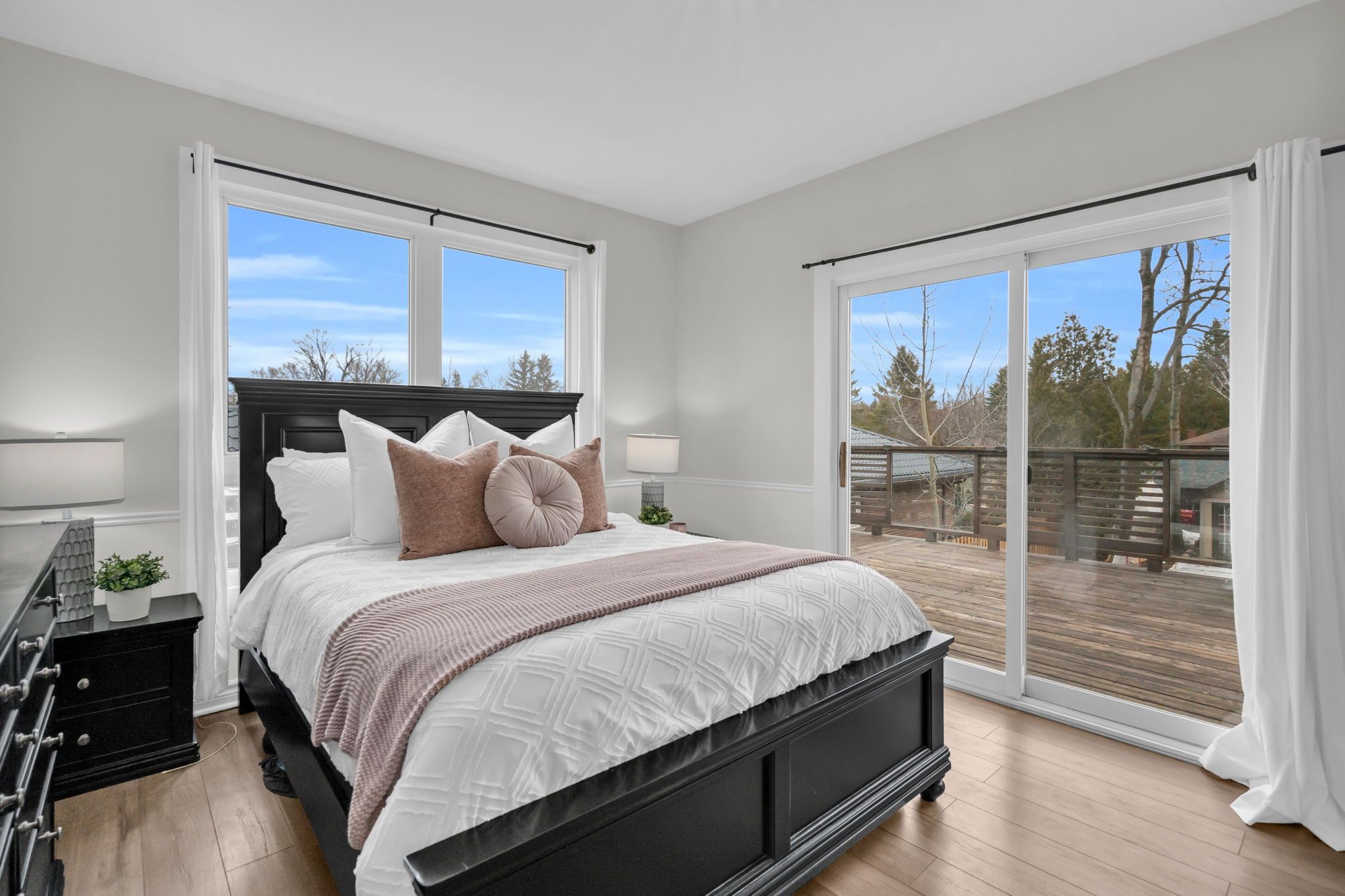 • Spacious primary suite with private ensuite and balcony access.