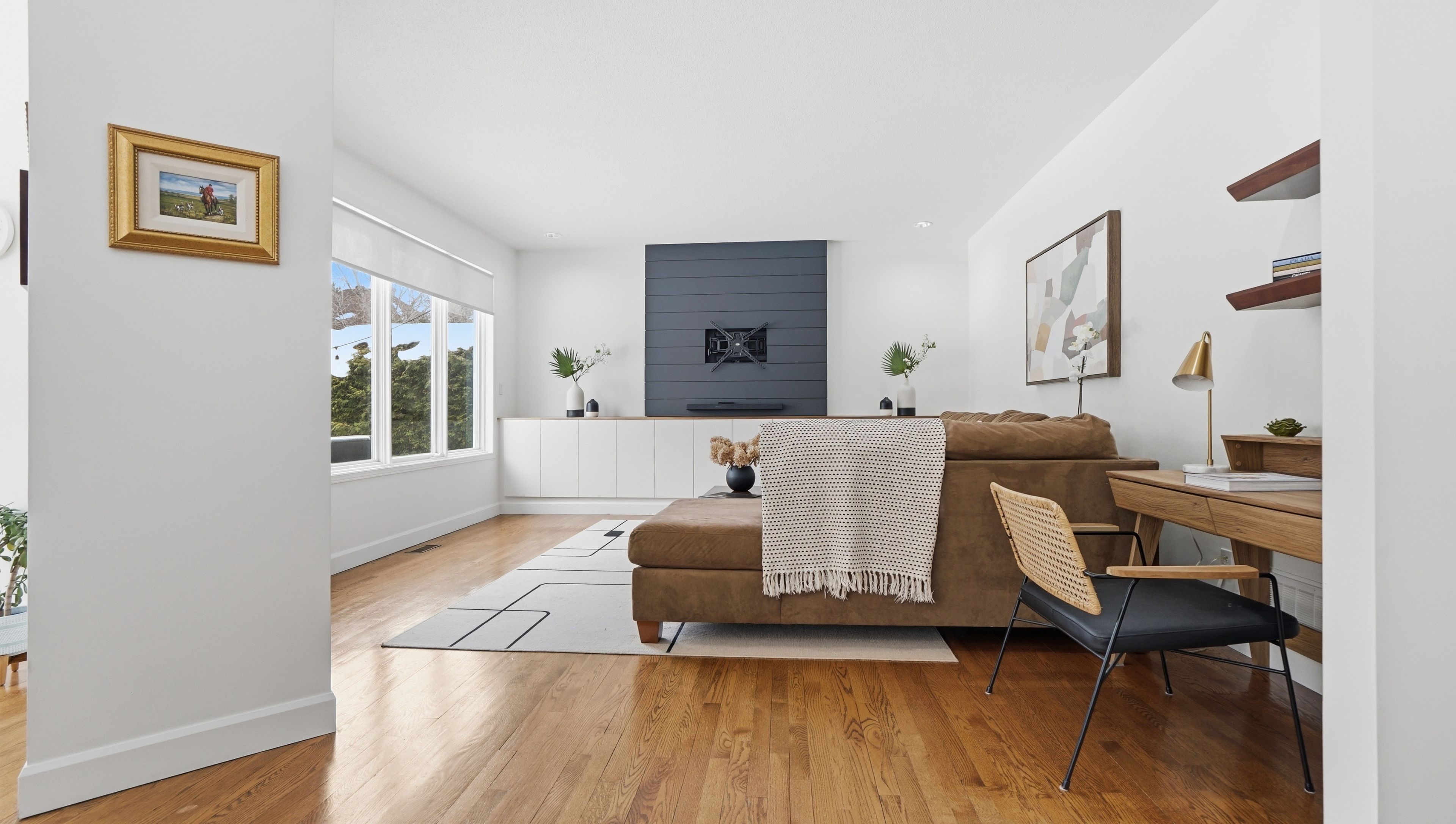 • Open-concept layout with site-finished hardwood floors throughout.