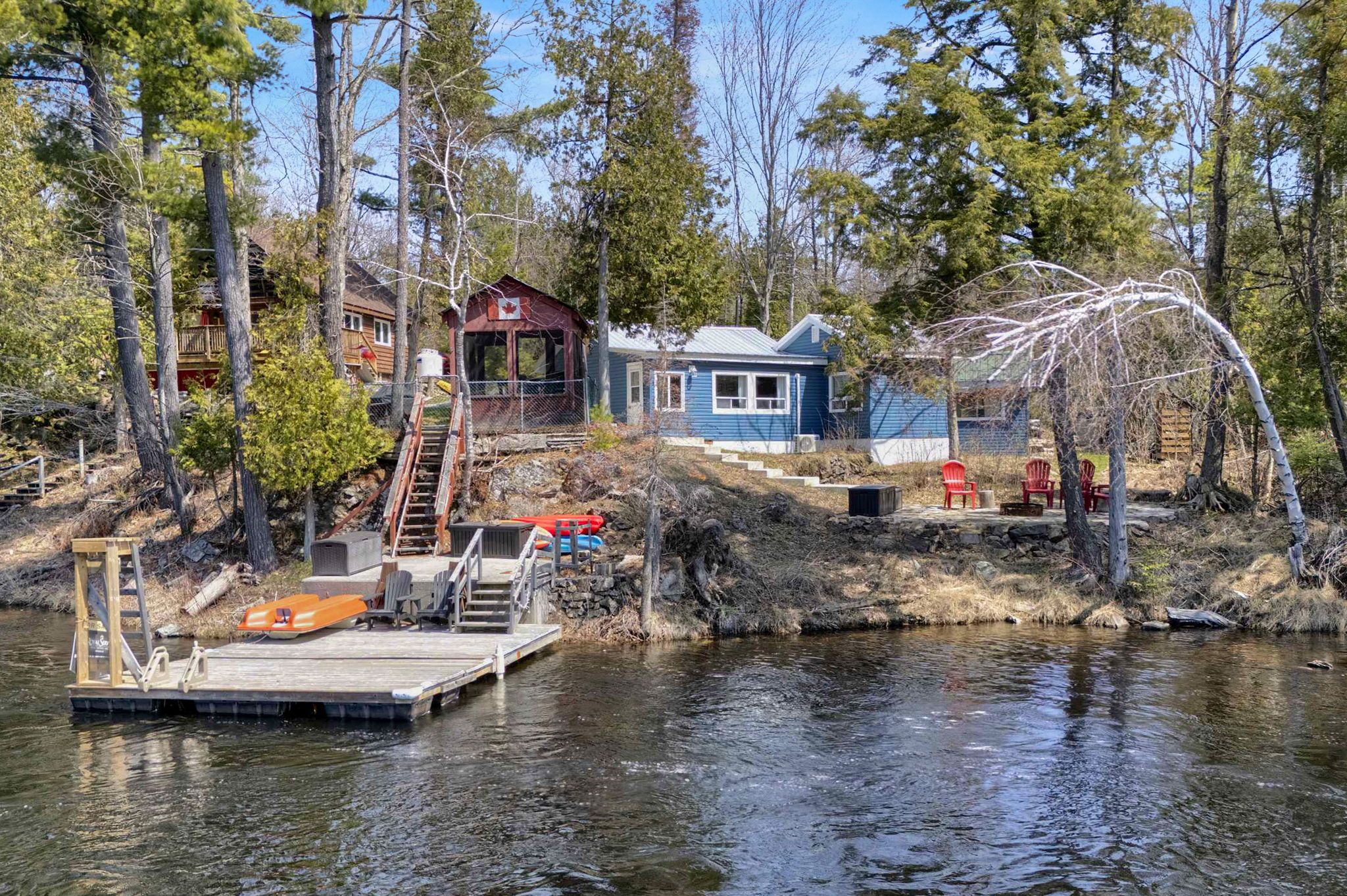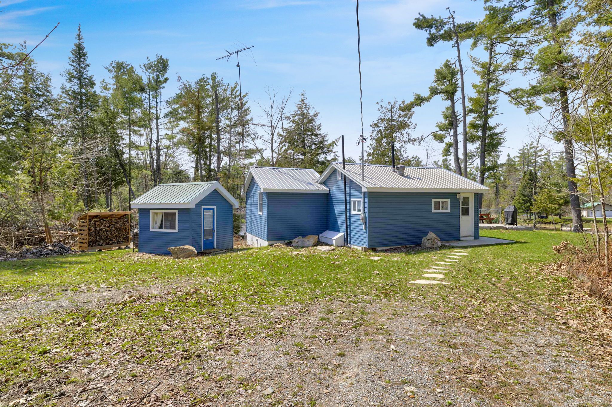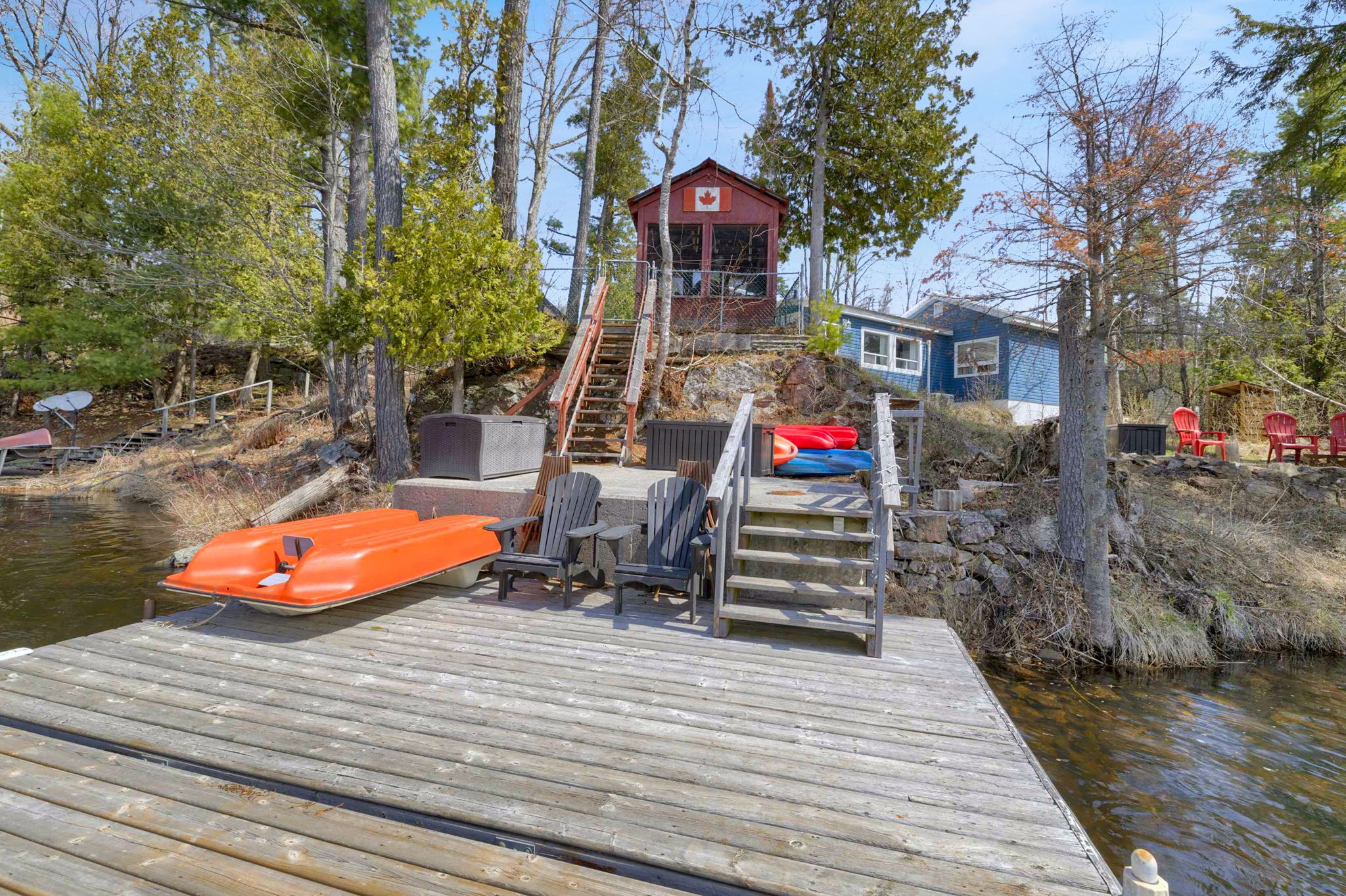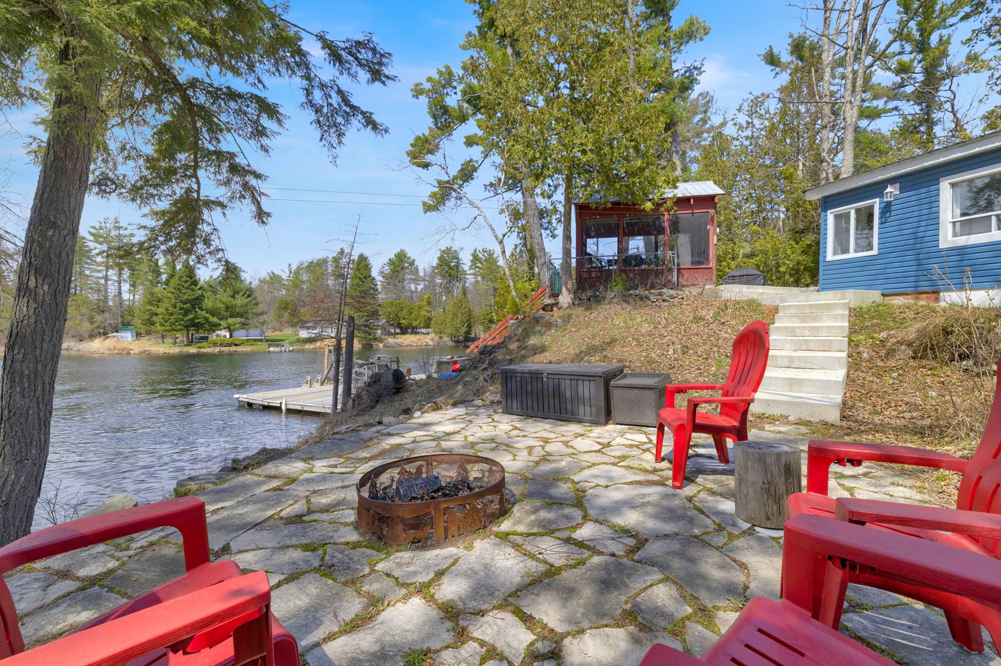 Looking for a place to create unforgettable memories? This charming two-bedroom, one-bath cottage on the north river offers clean, deep waterfront and a peaceful setting on a privately maintained, year-round road. Inside, you'll find an open-concept kitchen featuring a large ceramic sink, seamlessly flowing into the dining and living areas, all with a gently elevated view over the water-perfect for quiet morning coffees. The cottage includes two bedrooms, plus a recently added bunkie for extra sleeping space. Outdoors, enjoy a level backyard, a screened-in gazebo, and beautifully landscaped grounds. Concrete steps lead to a cozy fire pit area-ideal for evenings filled with campfires and conversation. Whether it's fishing, boating, or simply relaxing, this property offers countless ways to enjoy cottage life. Recent upgrades include new siding (2024), a bunkie addition, and extensive landscaping with poured concrete and fire pit steps (2024). Additional improvements feature a new heat pump (2024), water shed (2024), and water pump (2025). Approximately 5 minute boat ride to round lake.