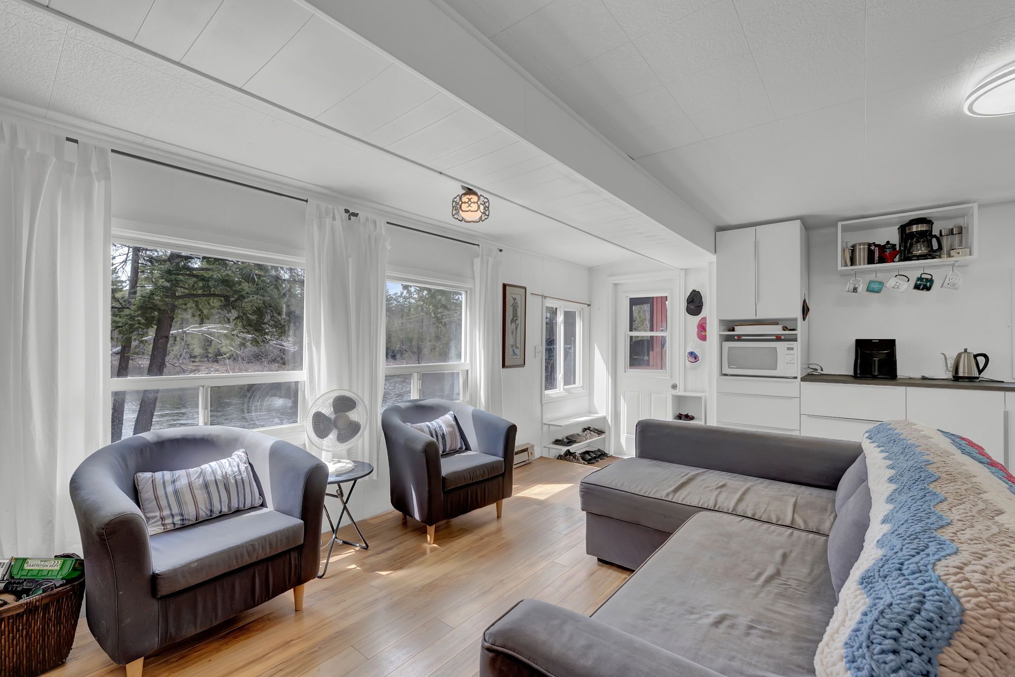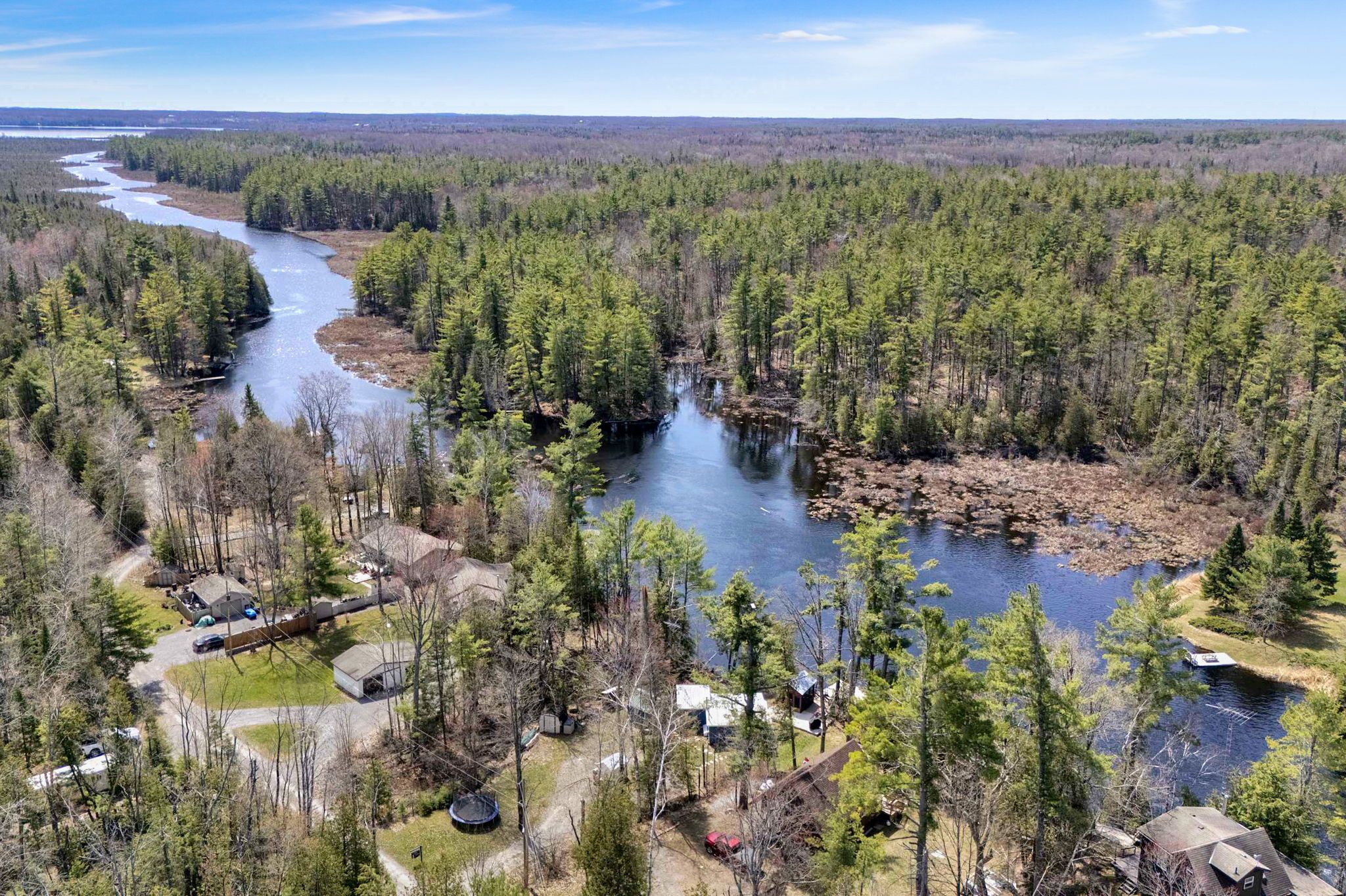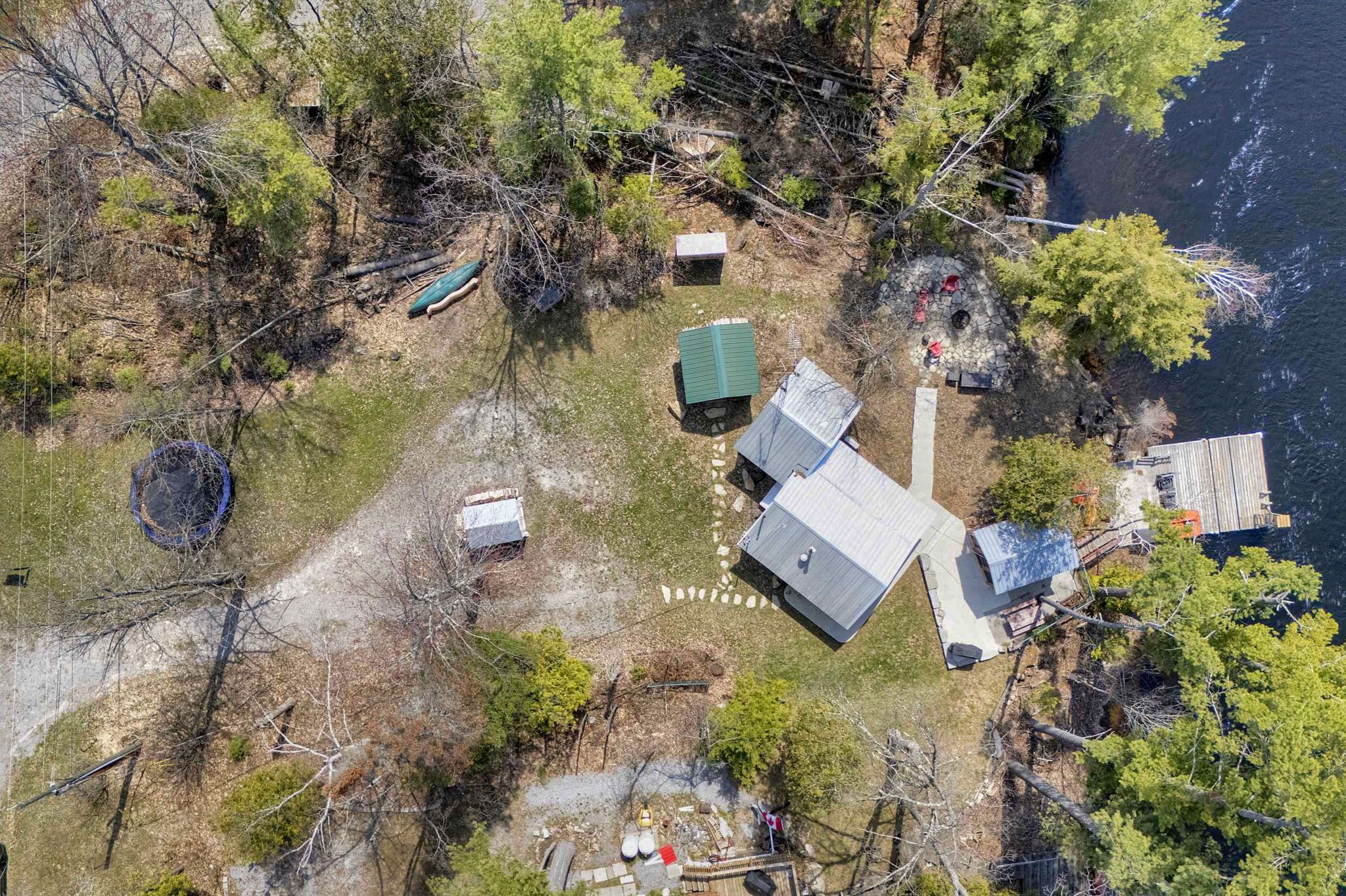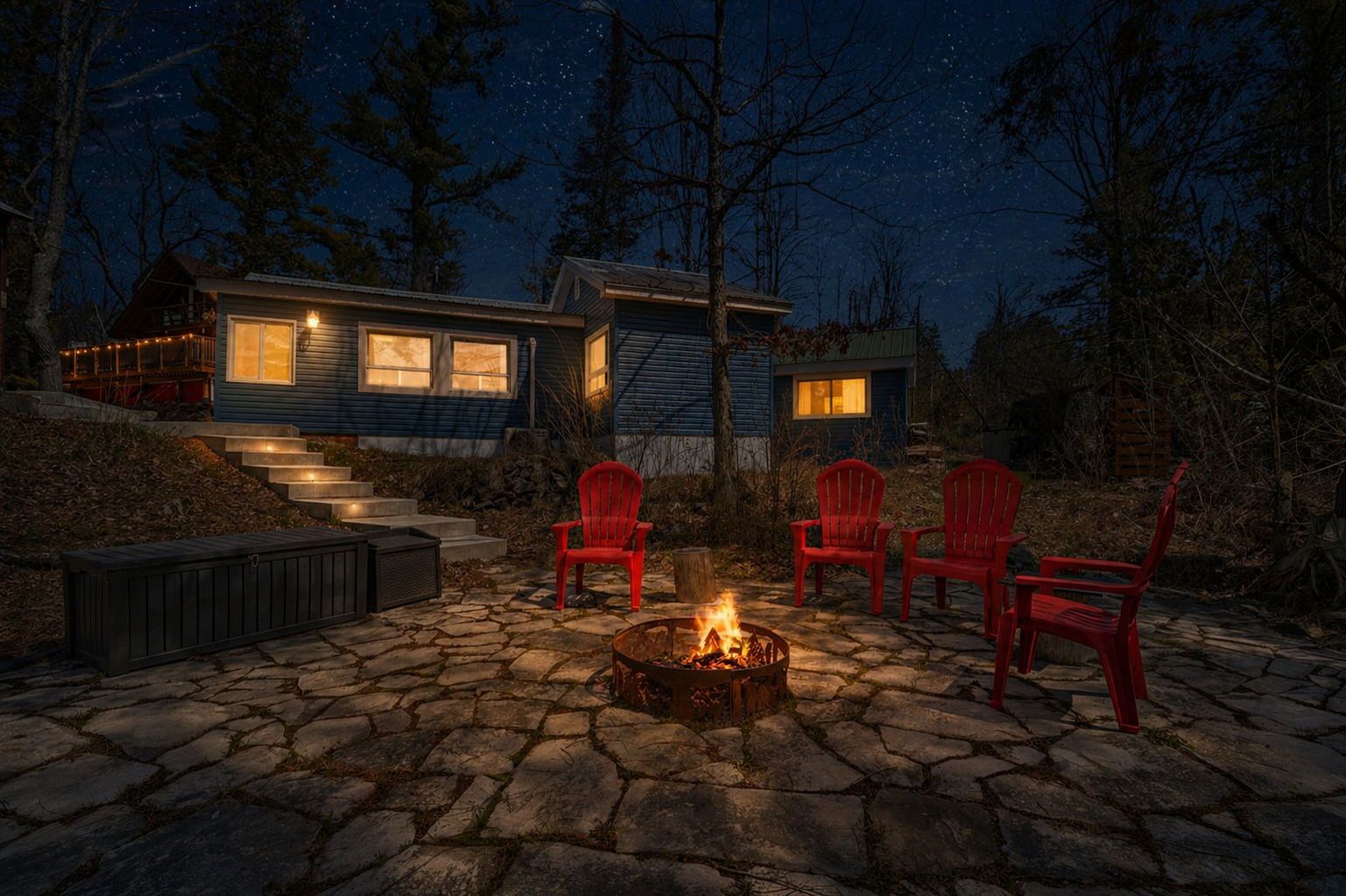Looking for a place to create unforgettable memories? This charming two-bedroom, one-bath cottage on the north river offers clean, deep waterfront and a peaceful setting on a privately maintained, year-round road. Inside, you'll find an open-concept kitchen featuring a large ceramic sink, seamlessly flowing into the dining and living areas, all with a gently elevated view over the water-perfect for quiet morning coffees. The cottage includes two bedrooms, plus a recently added bunkie for extra sleeping space. Outdoors, enjoy a level backyard, a screened-in gazebo, and beautifully landscaped grounds. Concrete steps lead to a cozy fire pit area-ideal for evenings filled with campfires and conversation. Whether it's fishing, boating, or simply relaxing, this property offers countless ways to enjoy cottage life. Recent upgrades include new siding (2024), a bunkie addition, and extensive landscaping with poured concrete and fire pit steps (2024). Additional improvements feature a new heat pump (2024), water shed (2024), and water pump (2025). Approximately 5 minute boat ride to round lake.