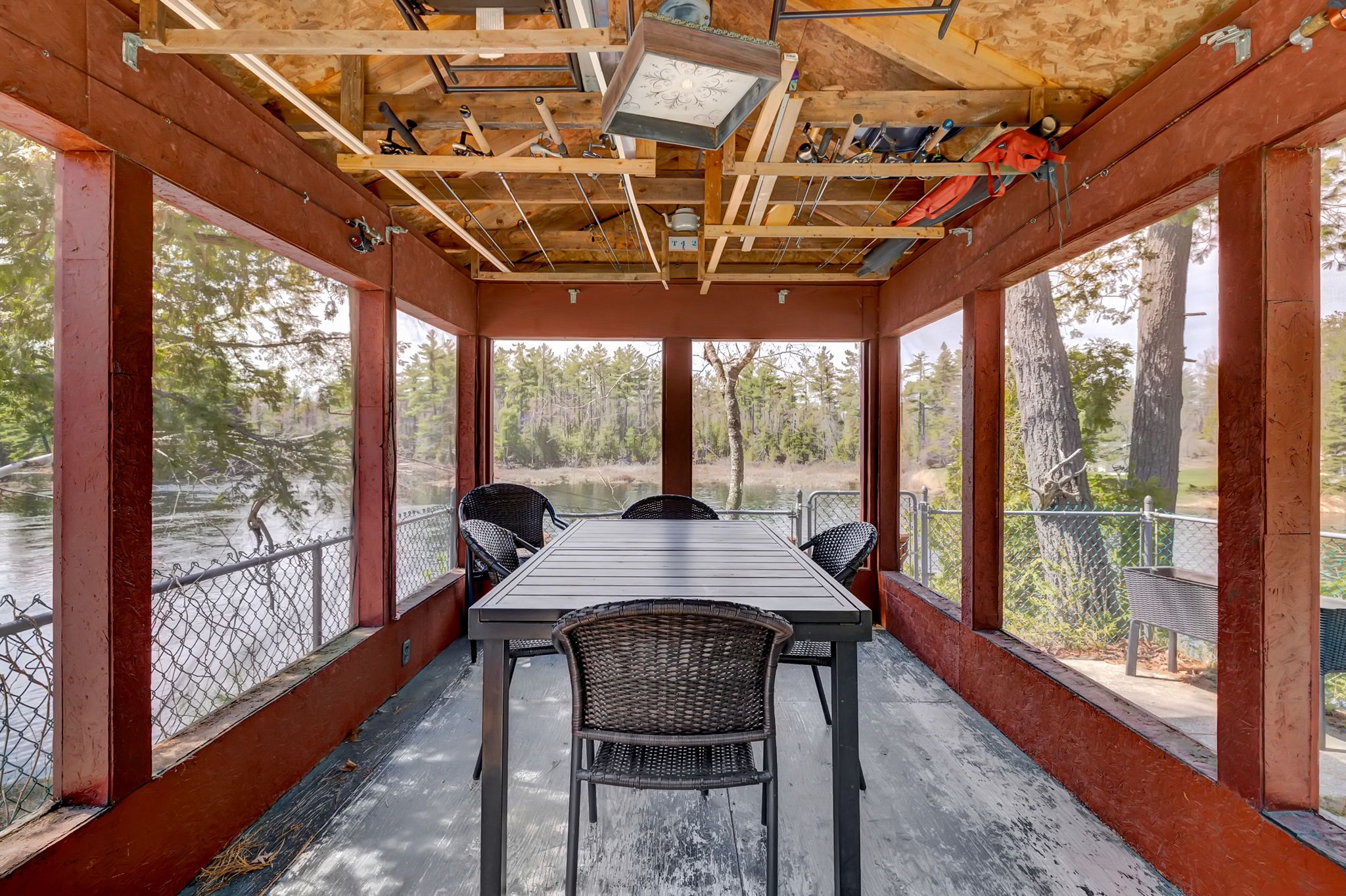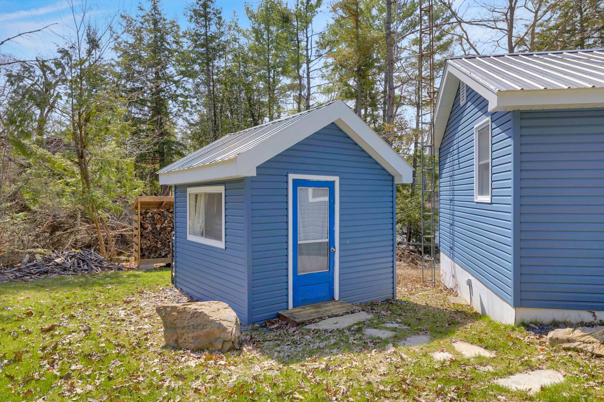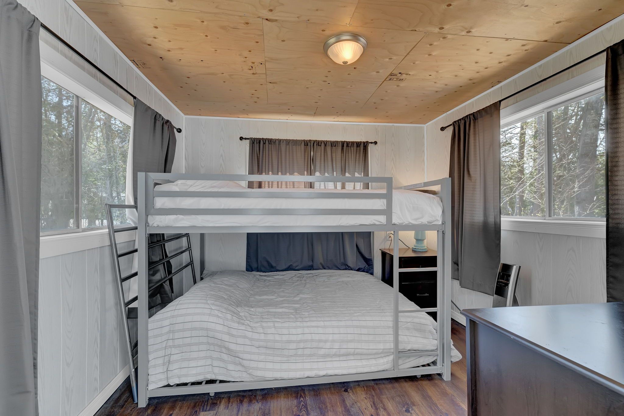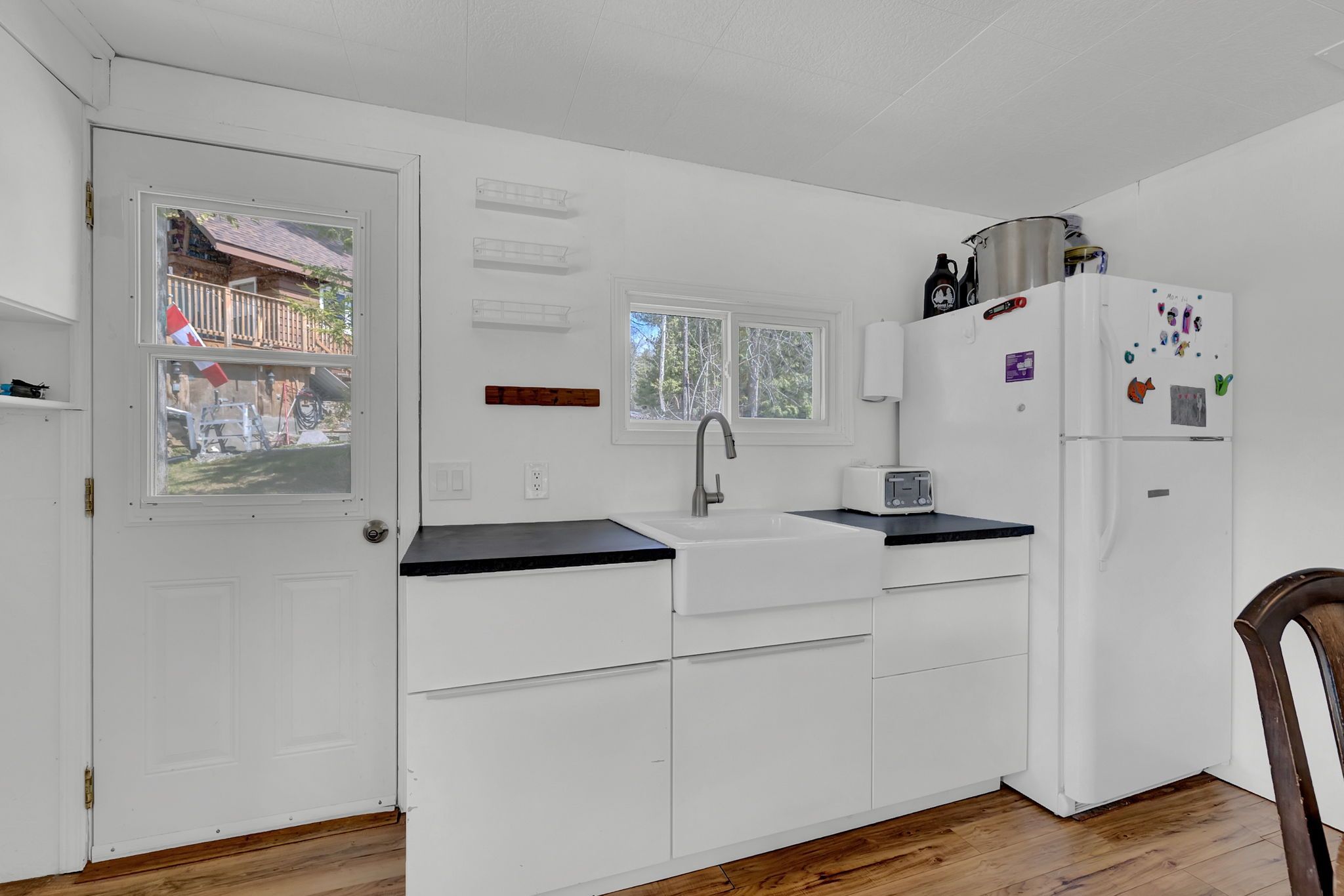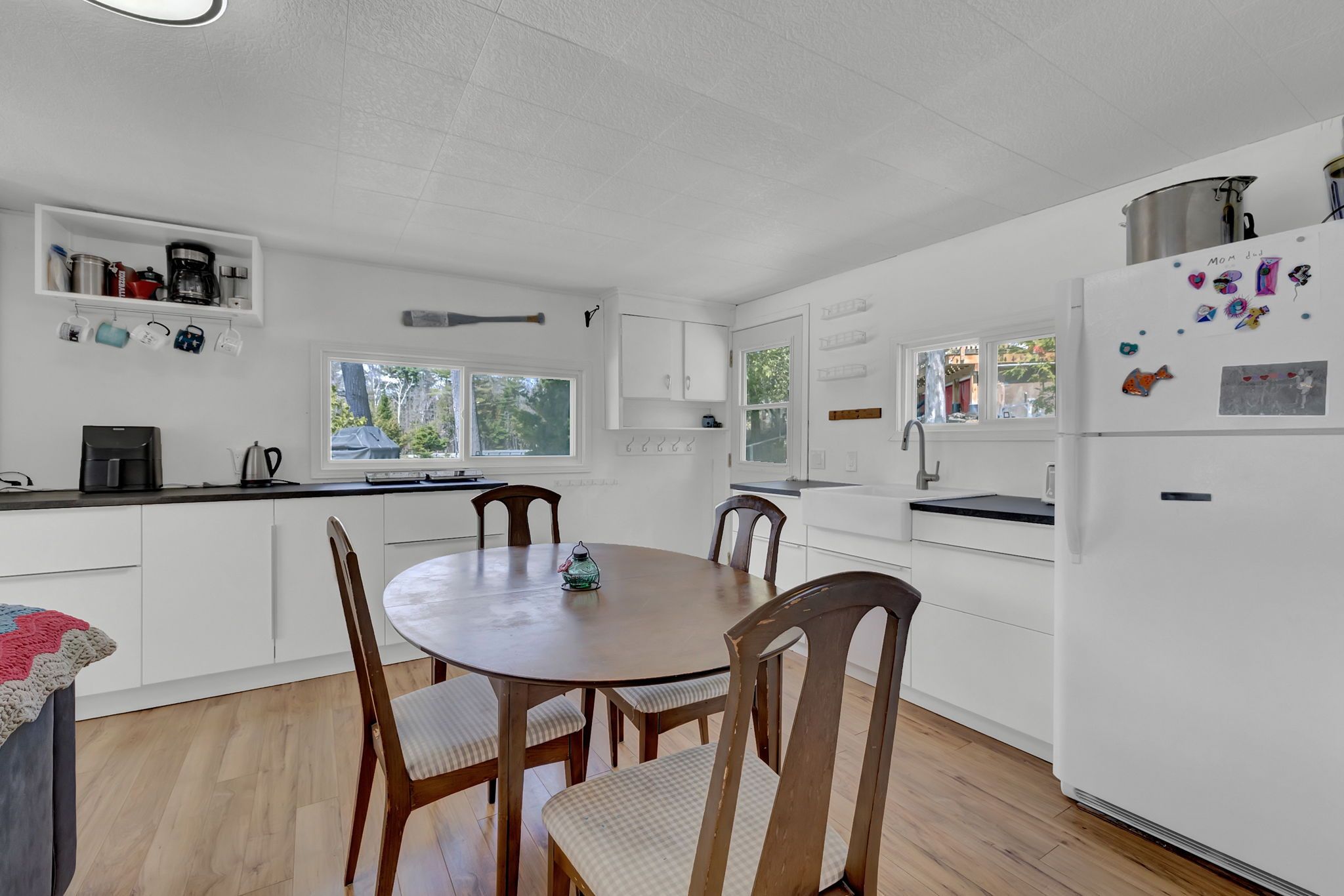 Looking for a place to create unforgettable memories? This charming two-bedroom, one-bath cottage on the north river offers clean, deep waterfront and a peaceful setting on a privately maintained, year-round road. Inside, you'll find an open-concept kitchen featuring a large ceramic sink, seamlessly flowing into the dining and living areas, all with a gently elevated view over the water-perfect for quiet morning coffees. The cottage includes two bedrooms, plus a recently added bunkie for extra sleeping space. Outdoors, enjoy a level backyard, a screened-in gazebo, and beautifully landscaped grounds. Concrete steps lead to a cozy fire pit area-ideal for evenings filled with campfires and conversation. Whether it's fishing, boating, or simply relaxing, this property offers countless ways to enjoy cottage life. Recent upgrades include new siding (2024), a bunkie addition, and extensive landscaping with poured concrete and fire pit steps (2024). Additional improvements feature a new heat pump (2024), water shed (2024), and water pump (2025). Approximately 5 minute boat ride to round lake.