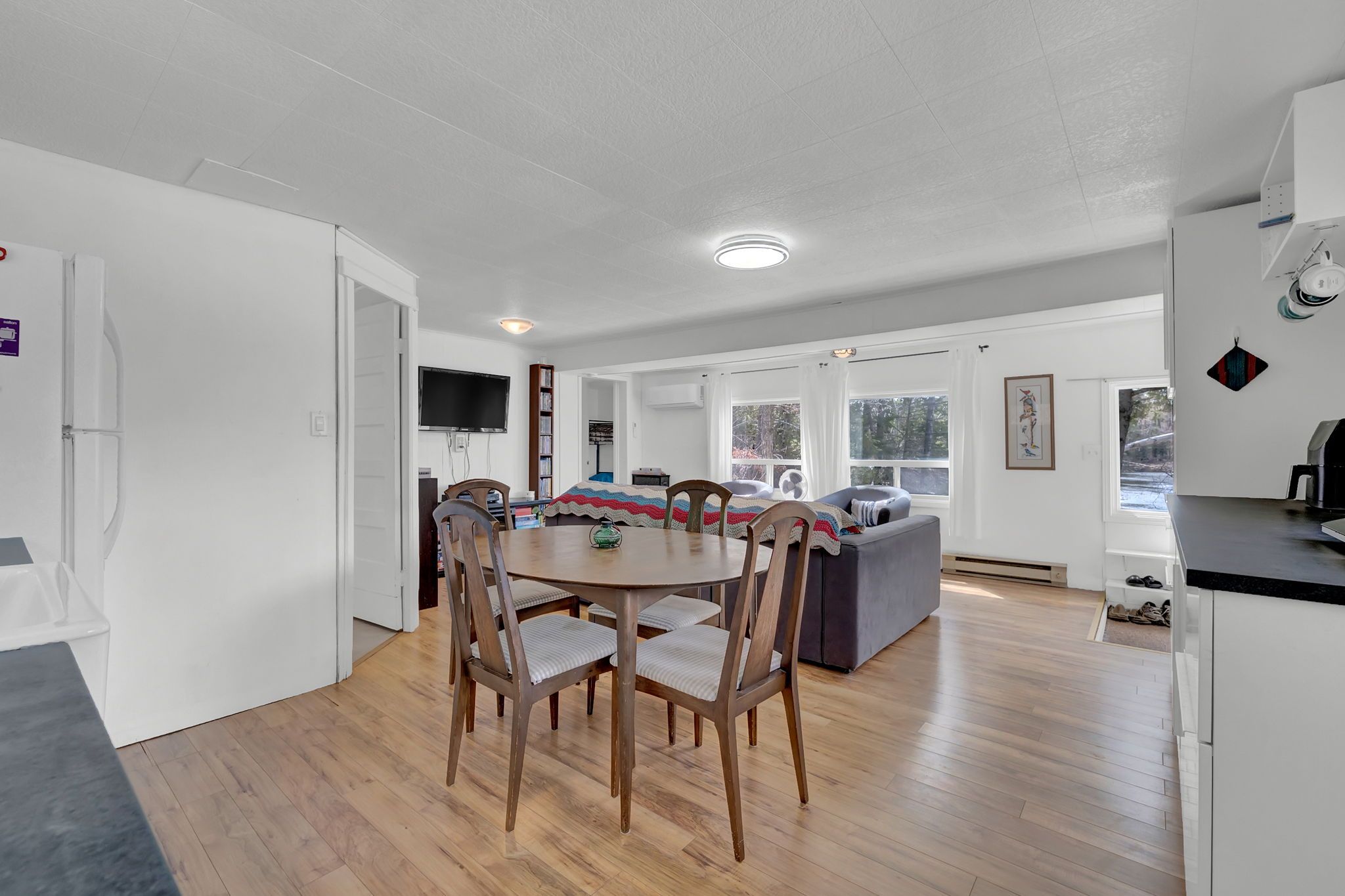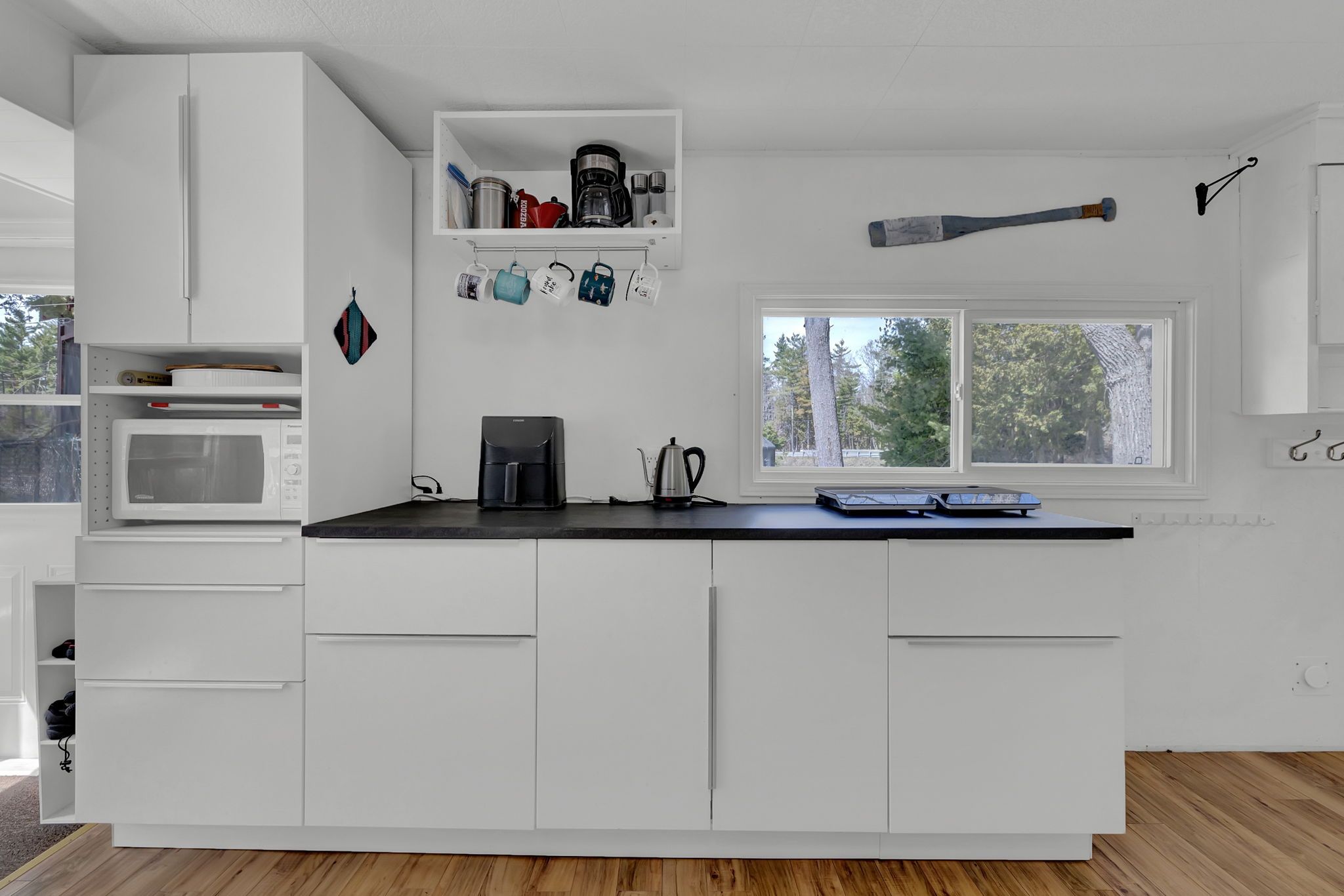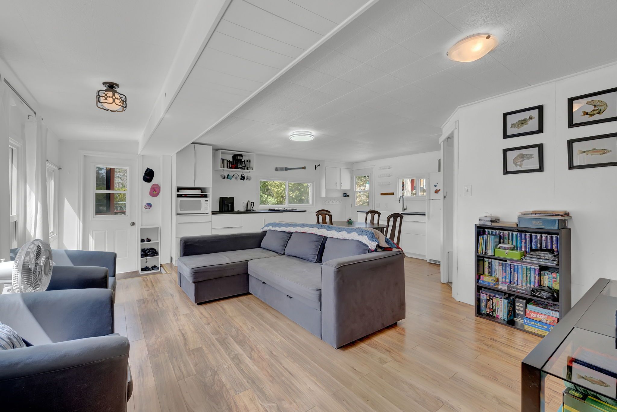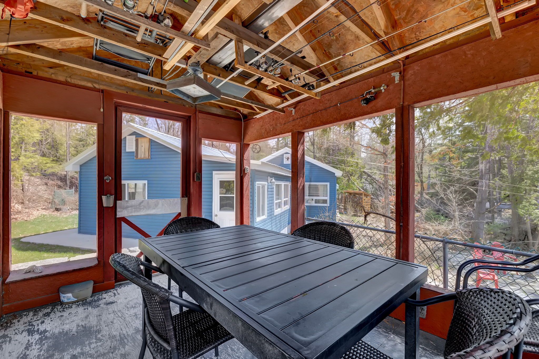 Looking for a place to create unforgettable memories? This charming two-bedroom, one-bath cottage on the north river offers clean, deep waterfront and a peaceful setting on a privately maintained, year-round road. Inside, you'll find an open-concept kitchen featuring a large ceramic sink, seamlessly flowing into the dining and living areas, all with a gently elevated view over the water-perfect for quiet morning coffees. The cottage includes two bedrooms, plus a recently added bunkie for extra sleeping space. Outdoors, enjoy a level backyard, a screened-in gazebo, and beautifully landscaped grounds. Concrete steps lead to a cozy fire pit area-ideal for evenings filled with campfires and conversation. Whether it's fishing, boating, or simply relaxing, this property offers countless ways to enjoy cottage life. Recent upgrades include new siding (2024), a bunkie addition, and extensive landscaping with poured concrete and fire pit steps (2024). Additional improvements feature a new heat pump (2024), water shed (2024), and water pump (2025). Approximately 5 minute boat ride to round lake.