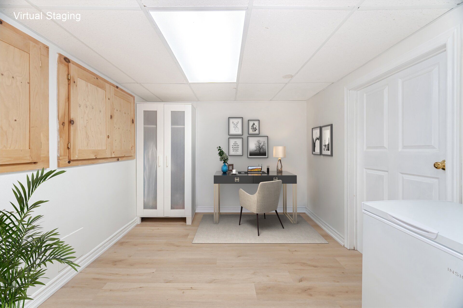 Nestled in a cul de sac - fantastic curb appeal and unique layout invite you to this well loved home located on this quiet street & neighborhood backs onto walking trails-previous railroad tracks no longer in use. Built on a premium pie-shaped lot with lots of natural day light enveloping the home. Open concept wide living room with large windows, open concept updated kitchen with stainless steel appliances & extended tall cabinets, full size dining area w/out to backyard new deck with garden shed to enjoy those gardening summer days and long summer nights. Family room with cozy fireplace for those long winter evenings. Hardwood stairs leads to generous size bedrooms with capacious primary bedroom and 5pcs ensuite, loft space can be used as office. Finished basement with open concept rec room, full washroom & workshop. Quiet street and wonderful neighbourhood to raise your family. Private treed backyard no homes behind parking for 3 width wise not tandem. Walking distance to go station, gage park and all the amenities. Virtually staged photos.