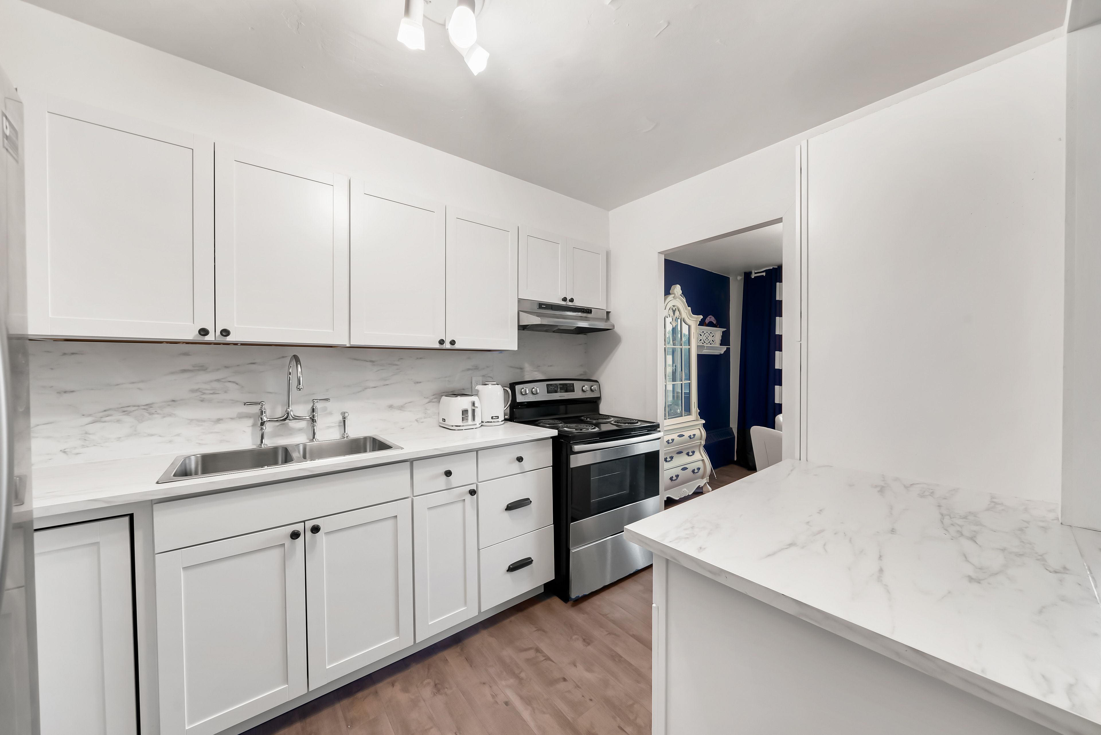 • Functional kitchen features stainless steel appliances and breakfast bar for convenience.
